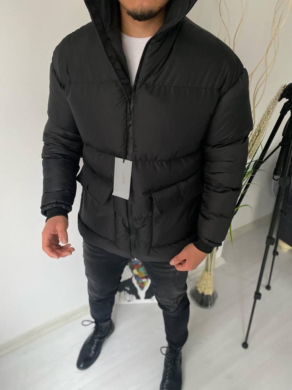 Мужская Куртка Зимняя Черного Цвета – Стеганая с Большими Карманами