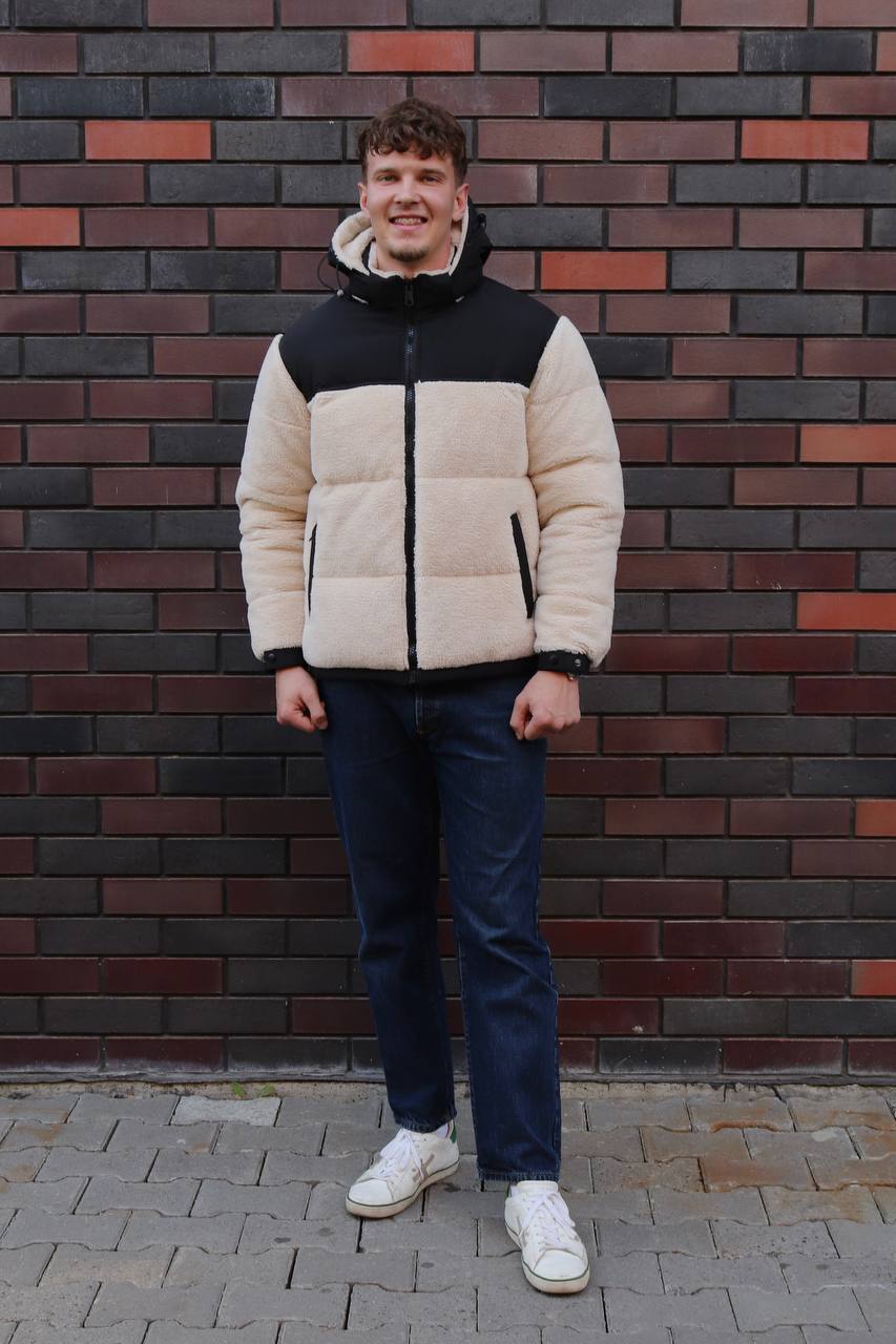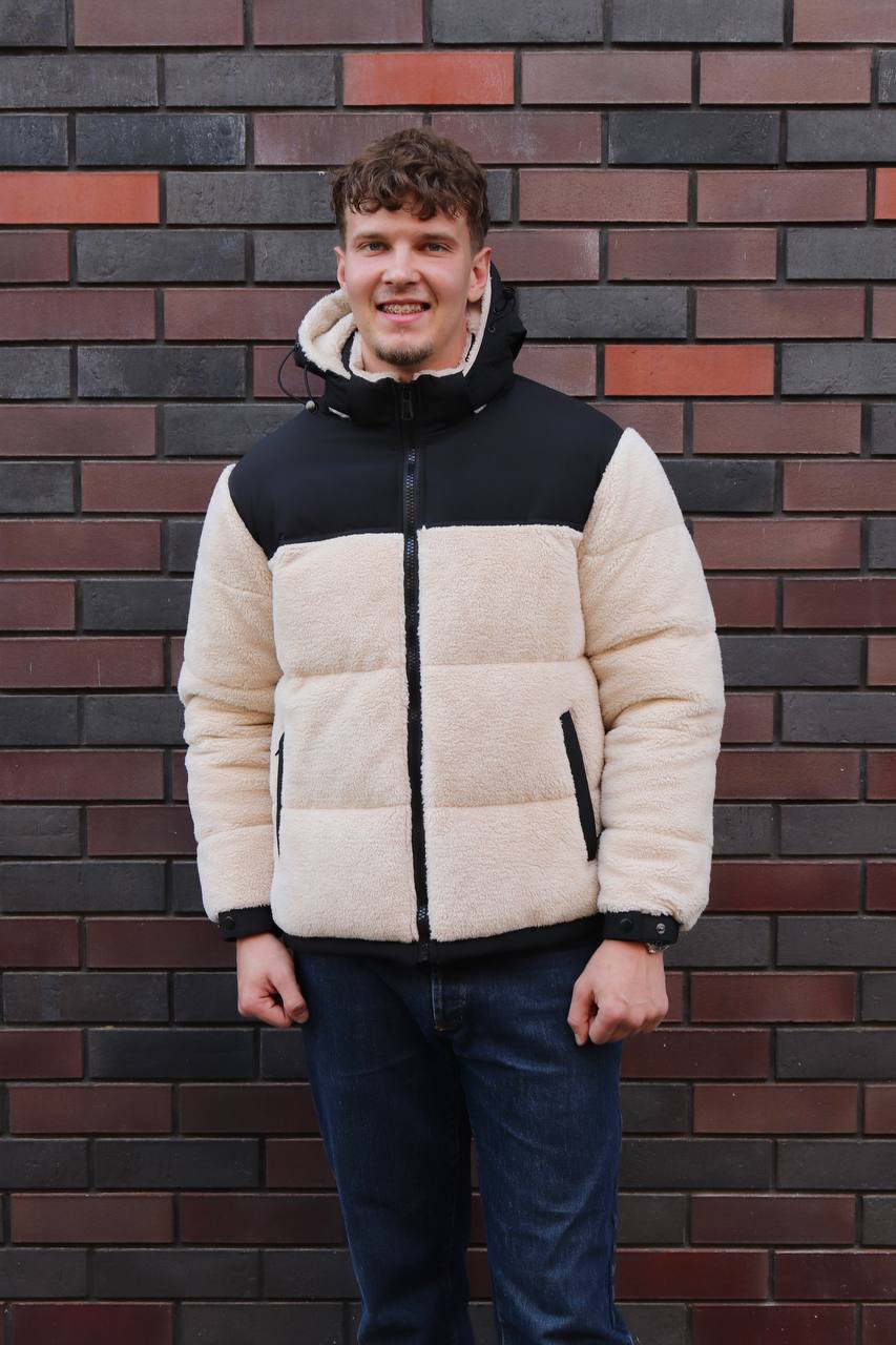 Мужская Зимняя Бежевая Куртка Барашек с Капюшоном и Фиксаторами