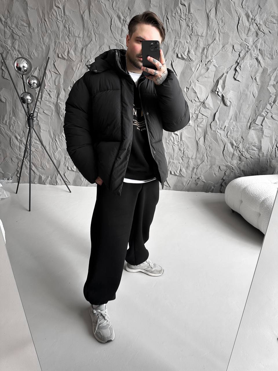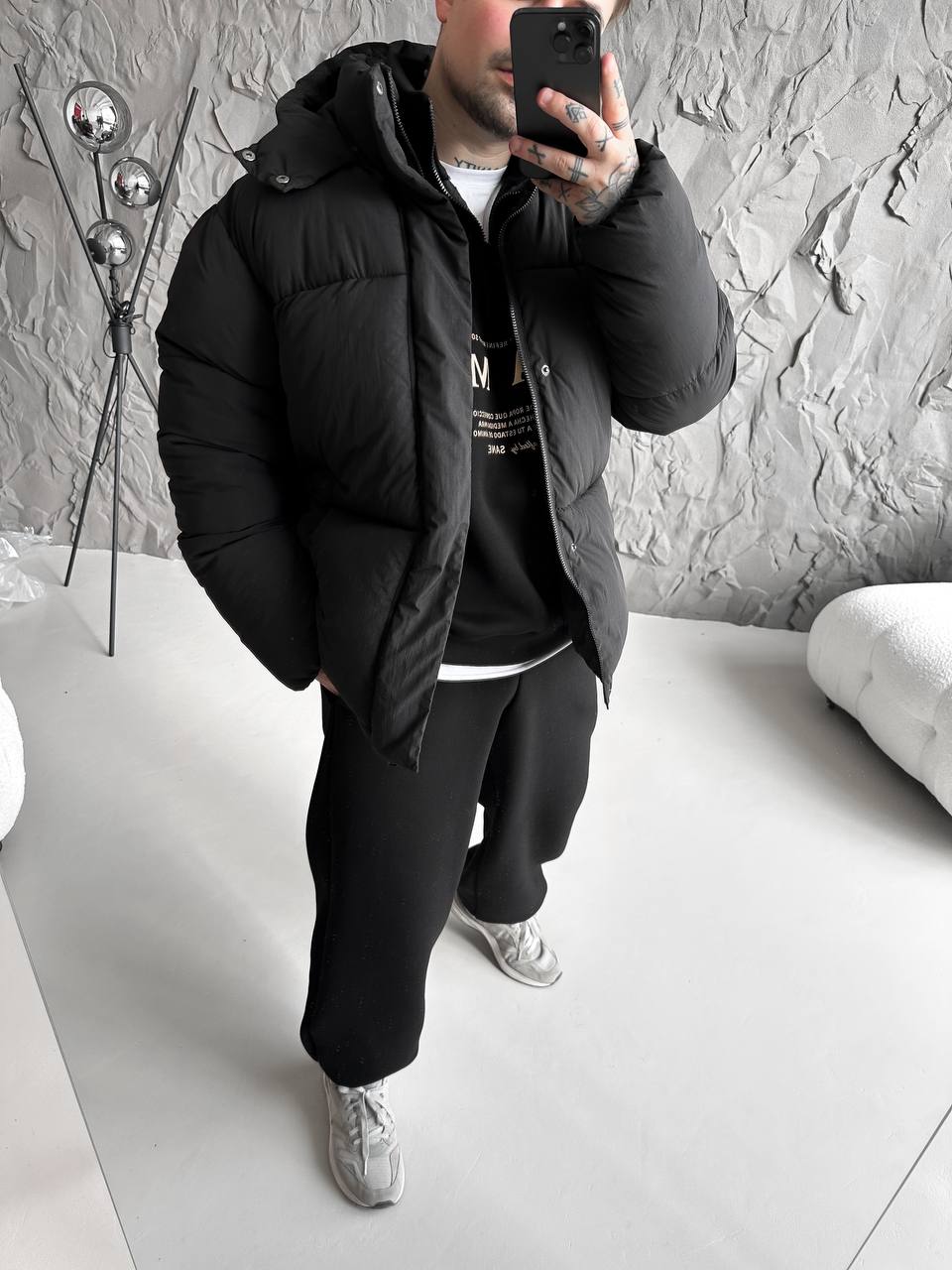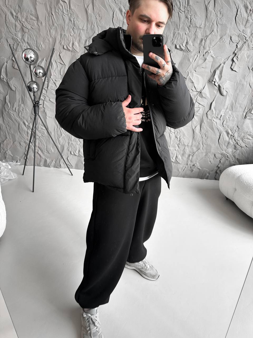 Мужская Зимняя Черная Куртка Пуфер – Стеганая Дутик с Капюшоном