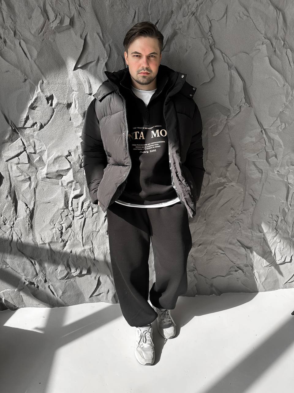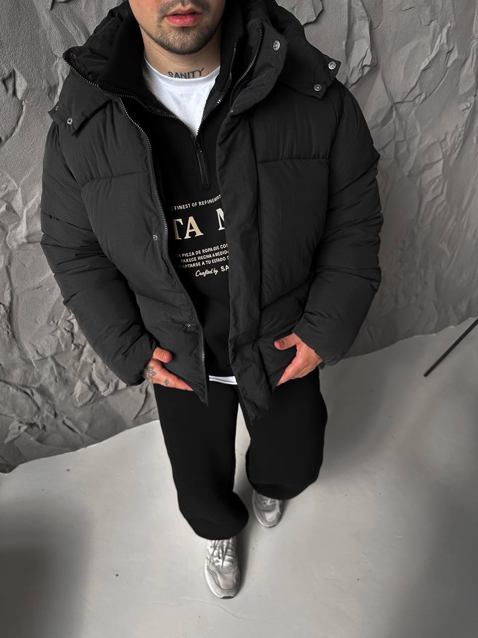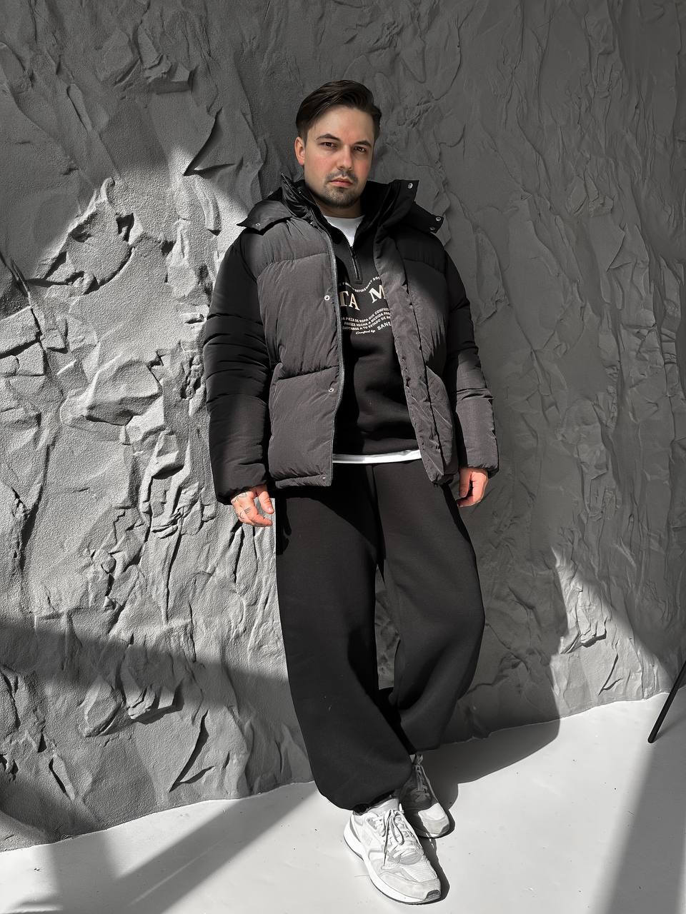 Мужская Зимняя Черная Куртка Пуфер – Стеганая Дутик с Капюшоном