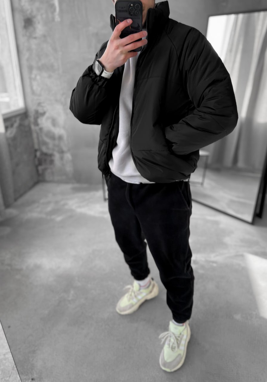 Мужская Зимняя Черная Куртка Пуховик – Легкая с Воротником под Горло и Карманами на Молниях