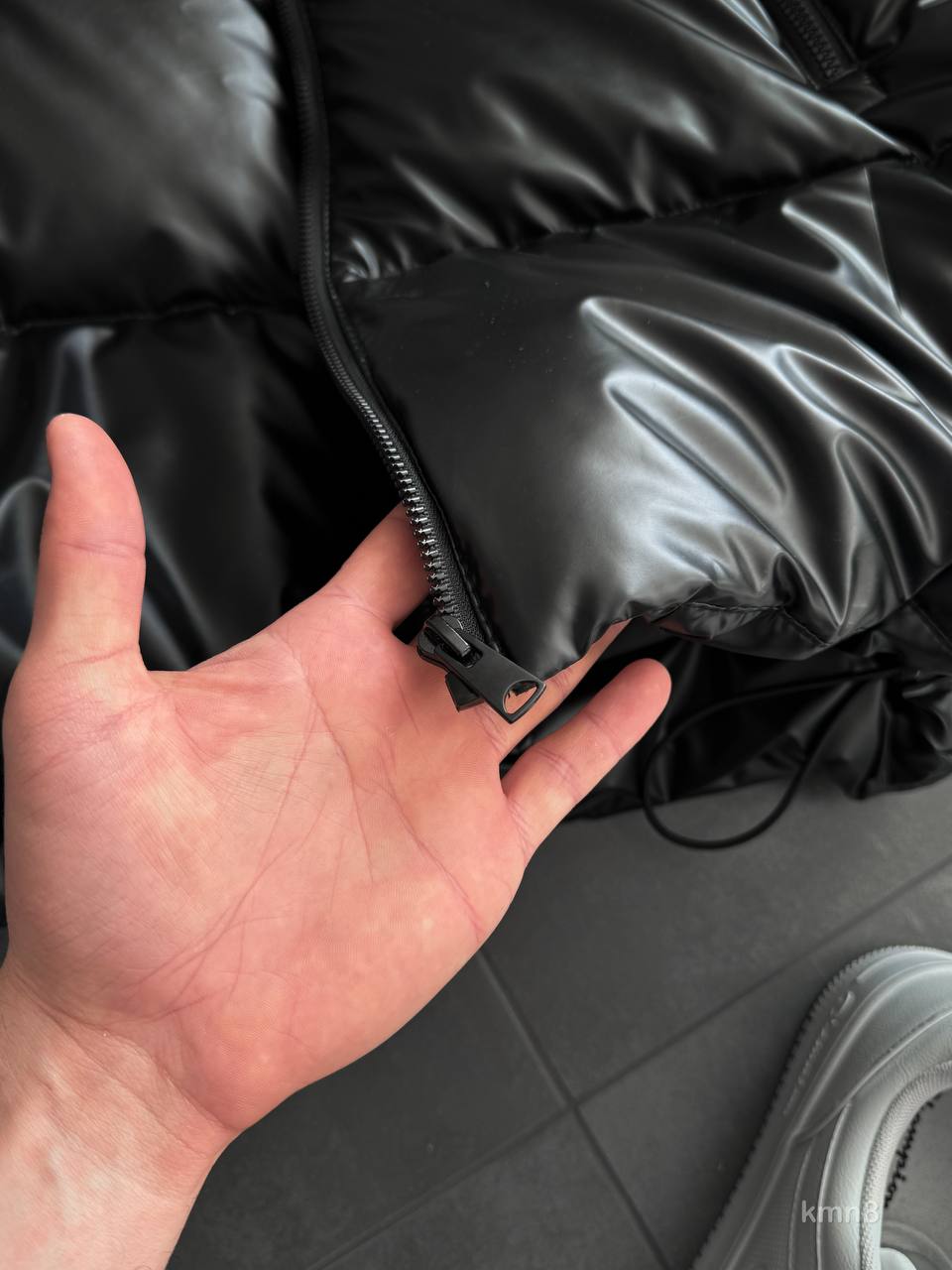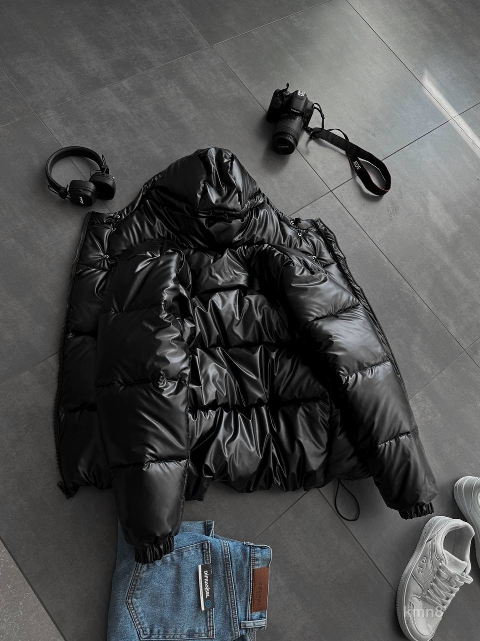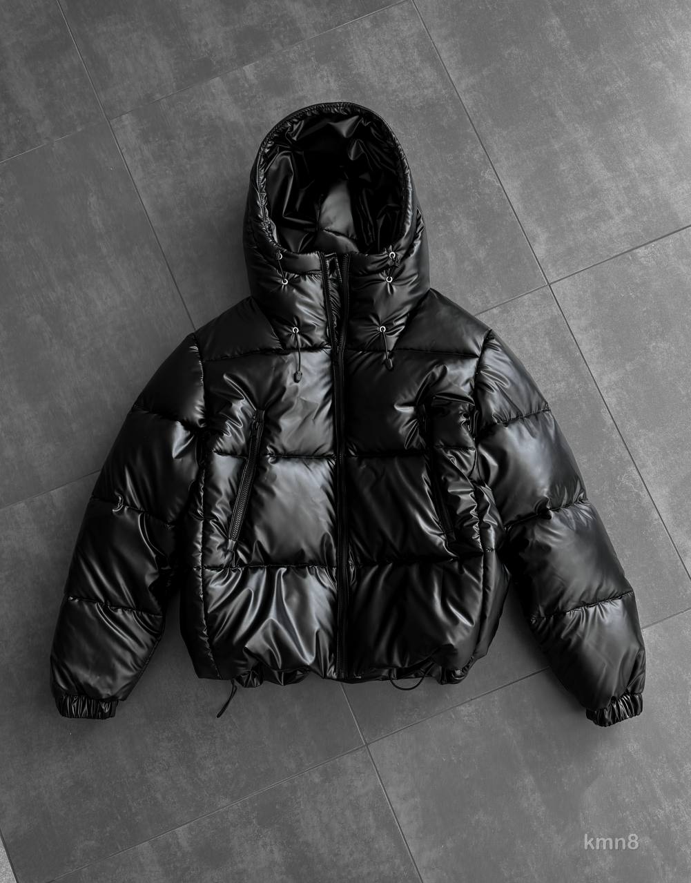 Мужская Зимняя Черная Куртка Пуховик под Кожу – Стеганая на Затяжках