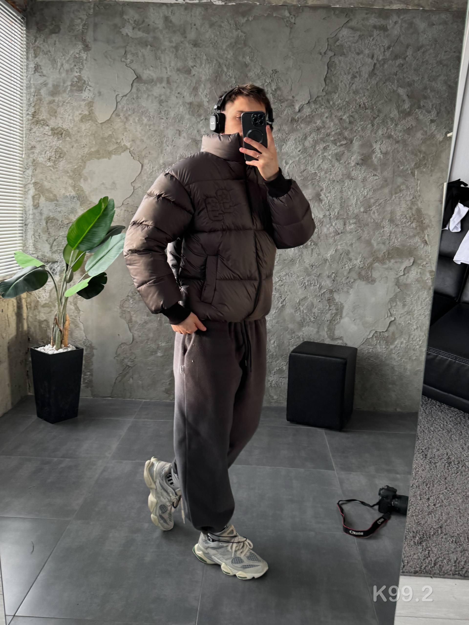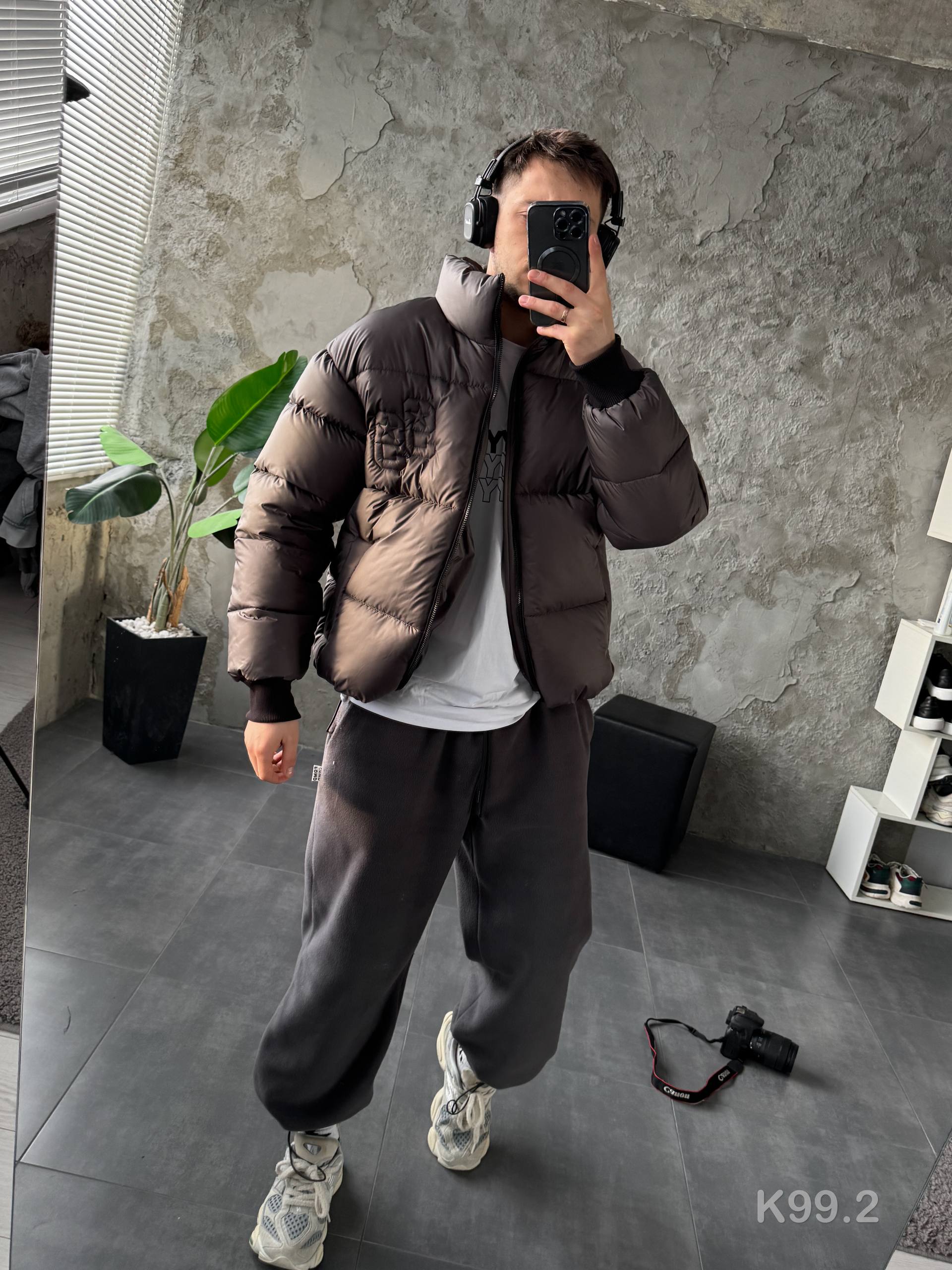 Мужская Зимняя Графитовая Куртка Пуховик – Стеганая Дутик с Высокой Горловиной и Номером на Спине