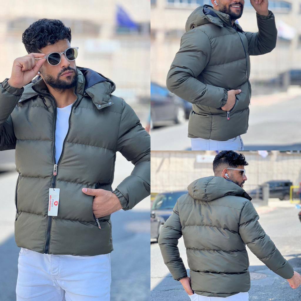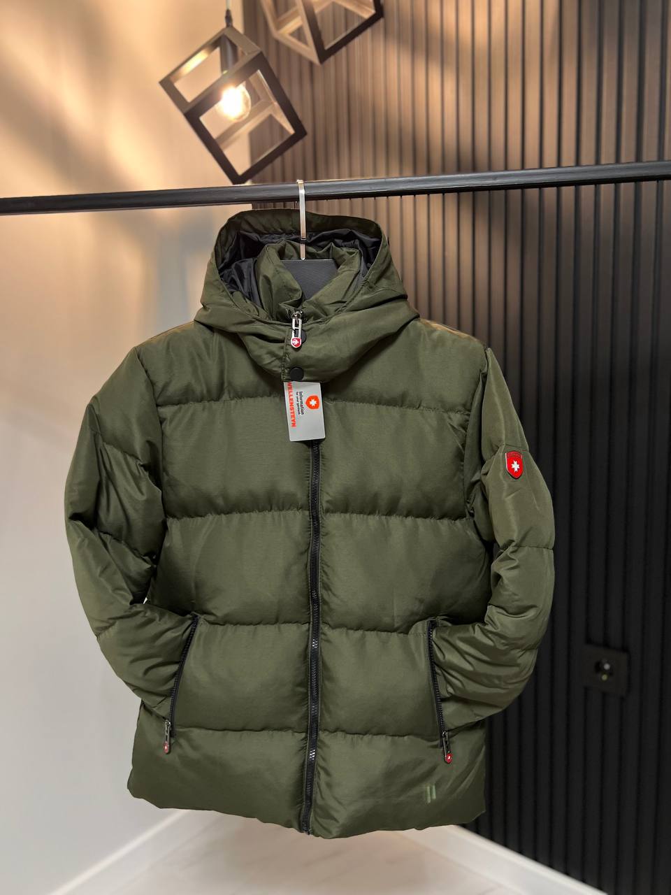 Мужская Зимняя Куртка Хаки – Стеганая Дутик под Горло с Капюшоном