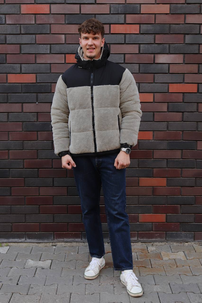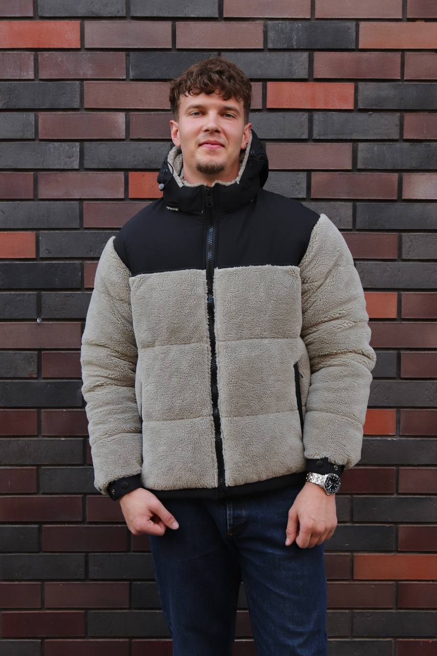 Мужская Зимняя Серая Куртка Барашек с Капюшоном и Фиксаторами