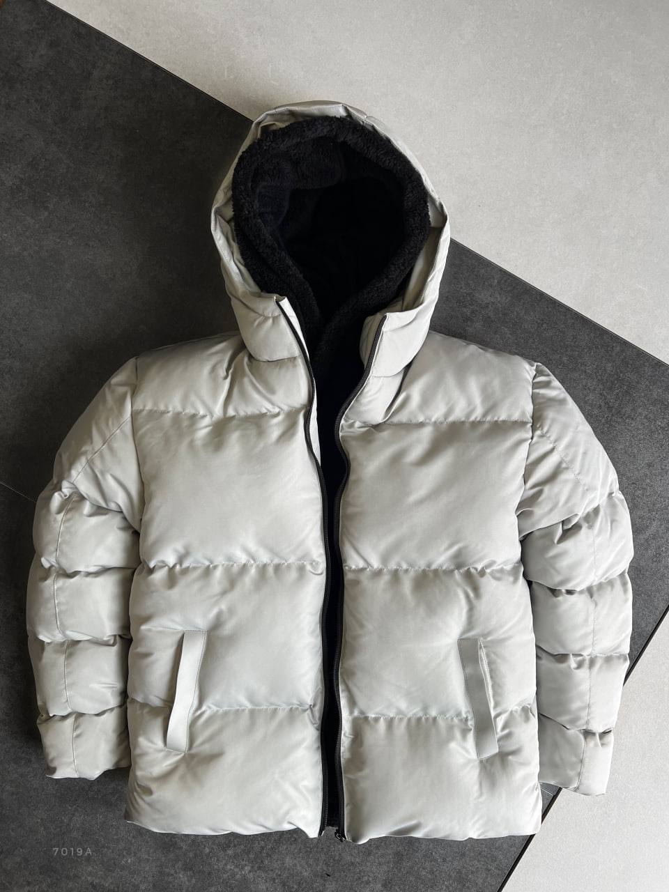 Мужская Зимняя Серая Куртка Дутик – Стеганая с Капюшоном
