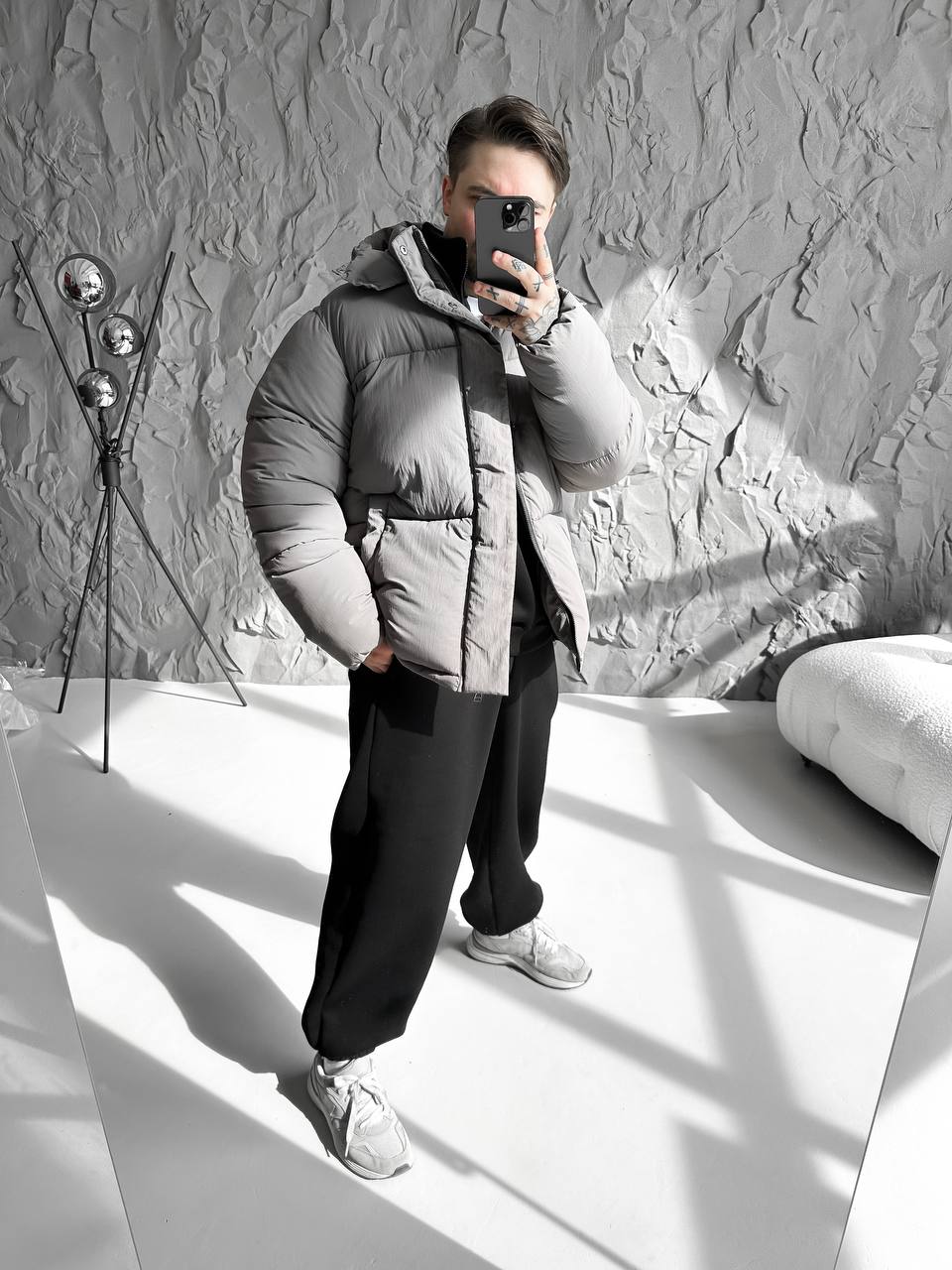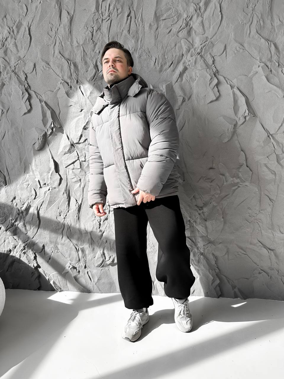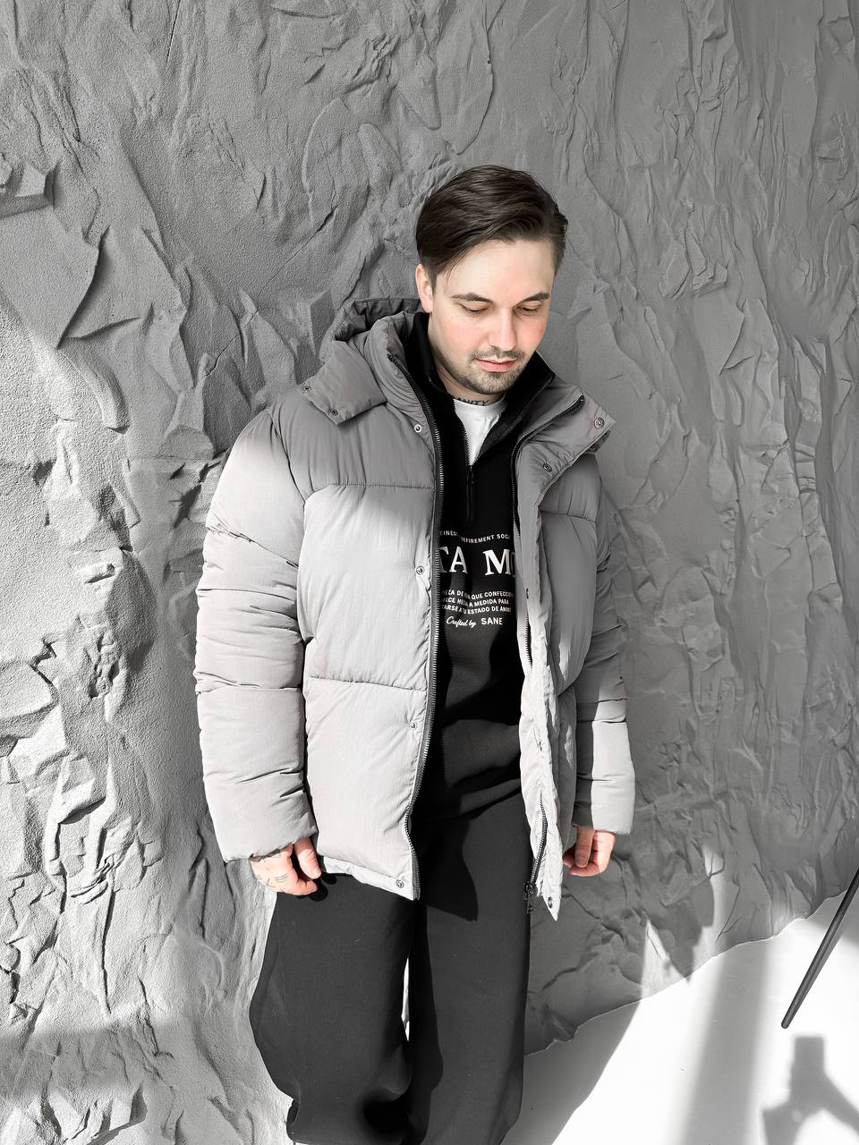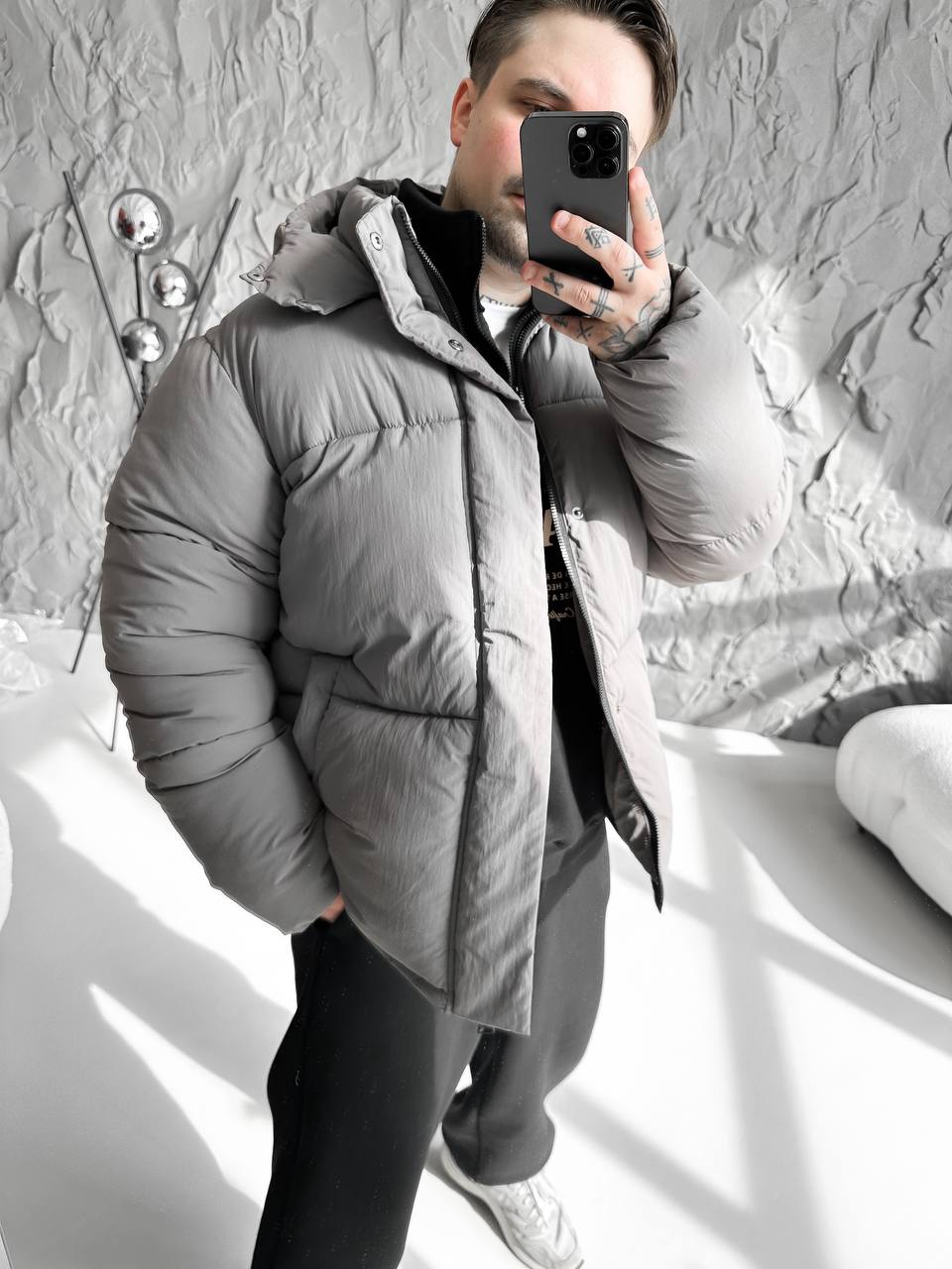 Мужская Зимняя Серая Куртка Пуфер – Стеганая Дутик с Капюшоном