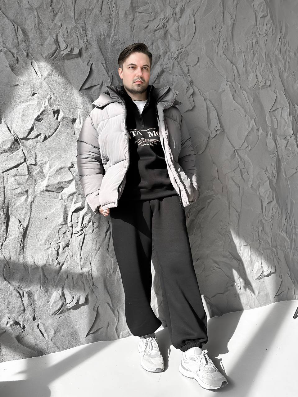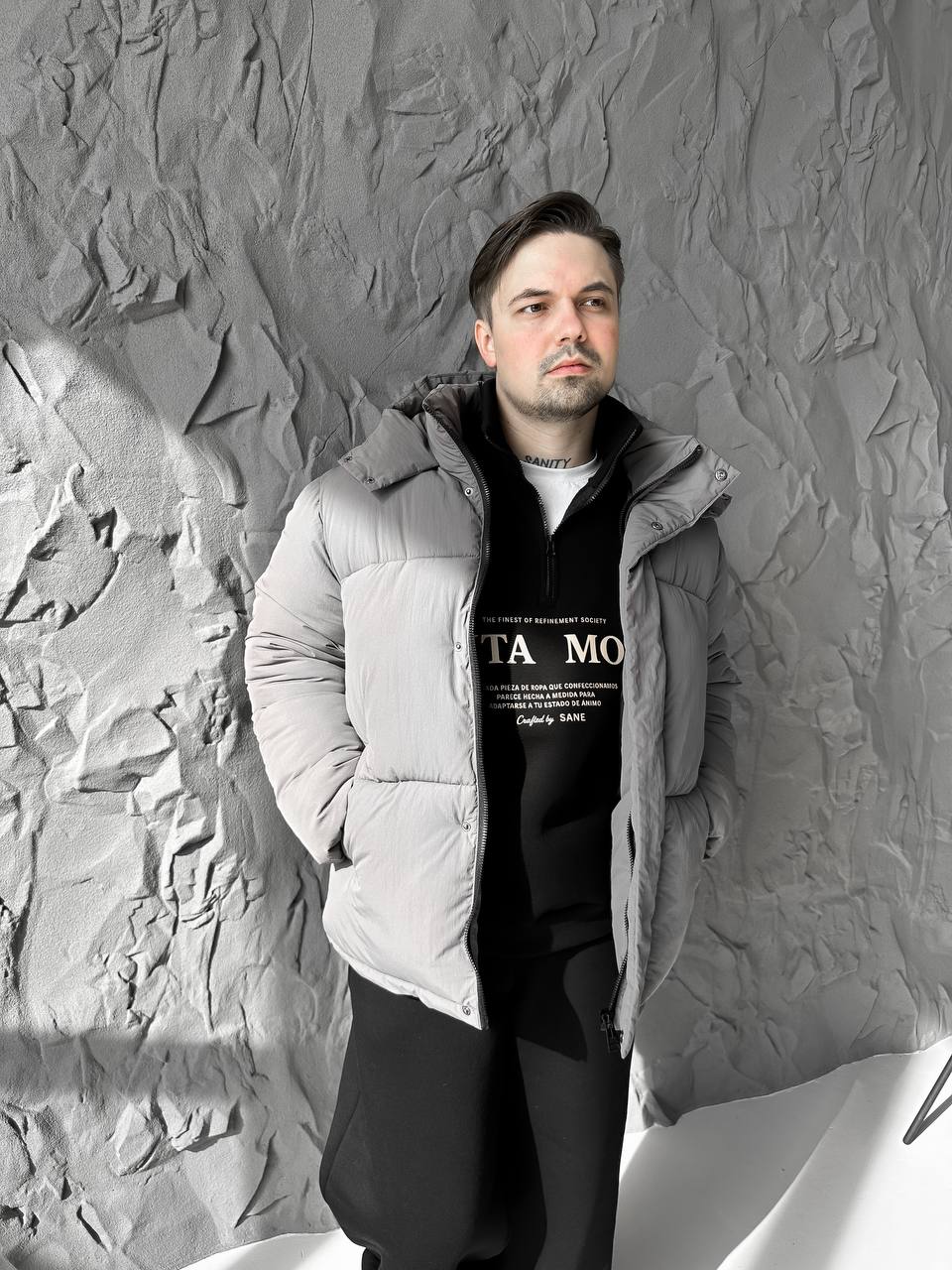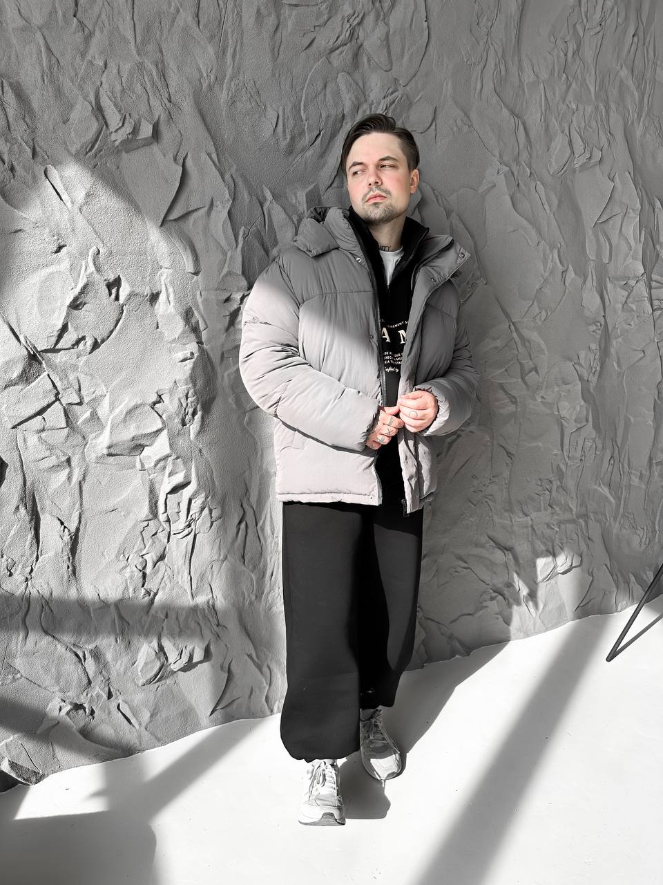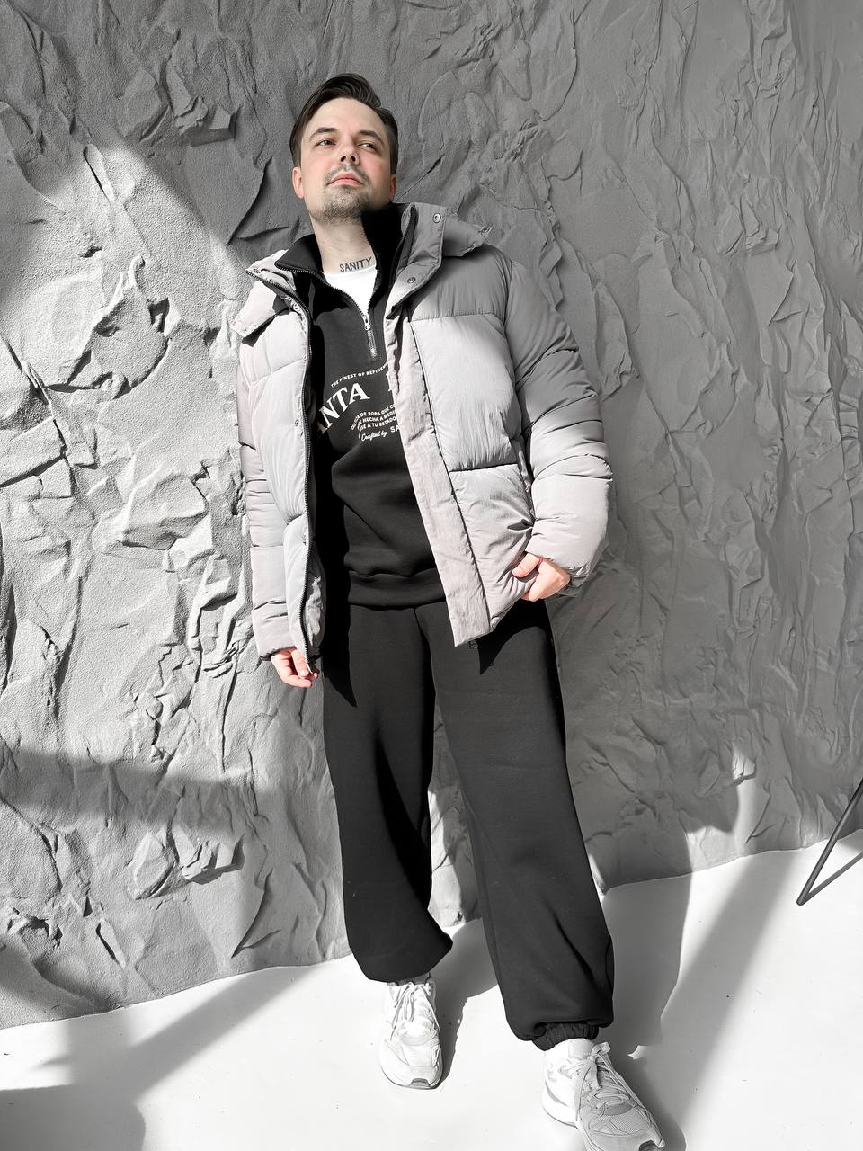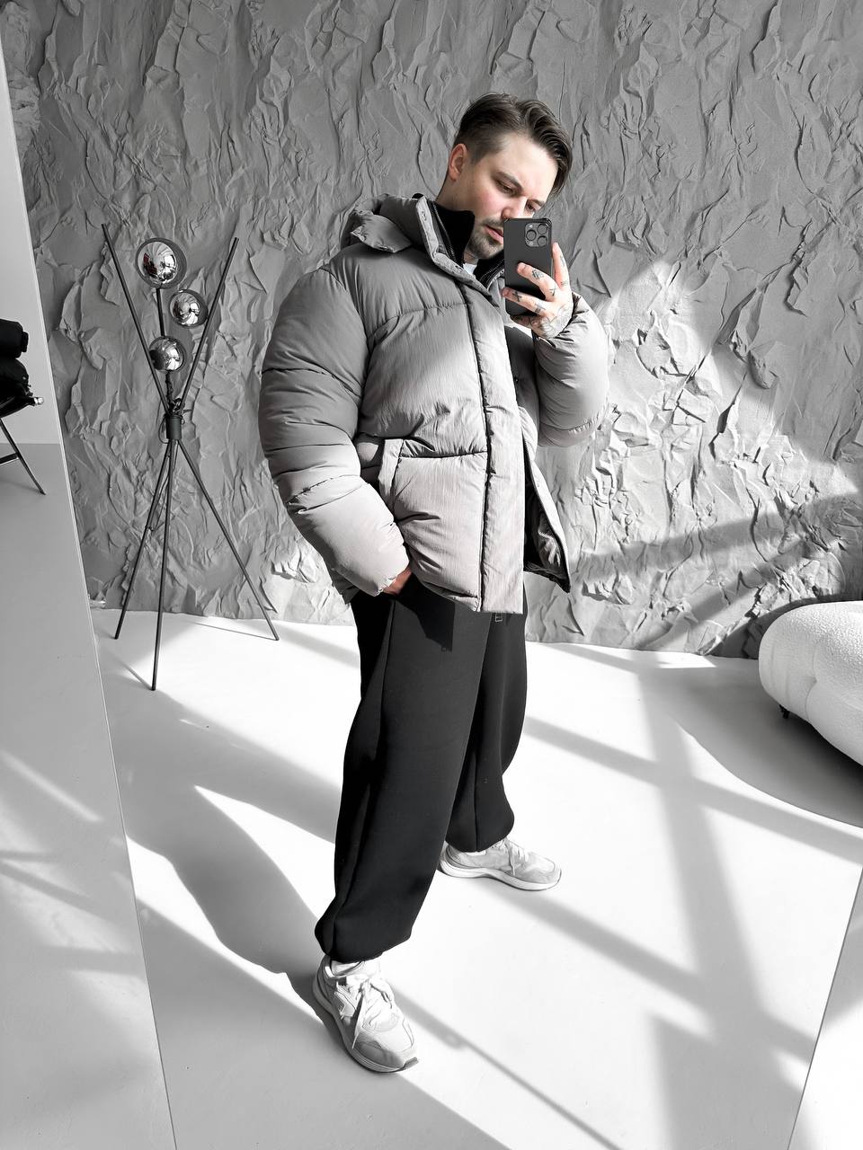 Мужская Зимняя Серая Куртка Пуфер – Стеганая Дутик с Капюшоном