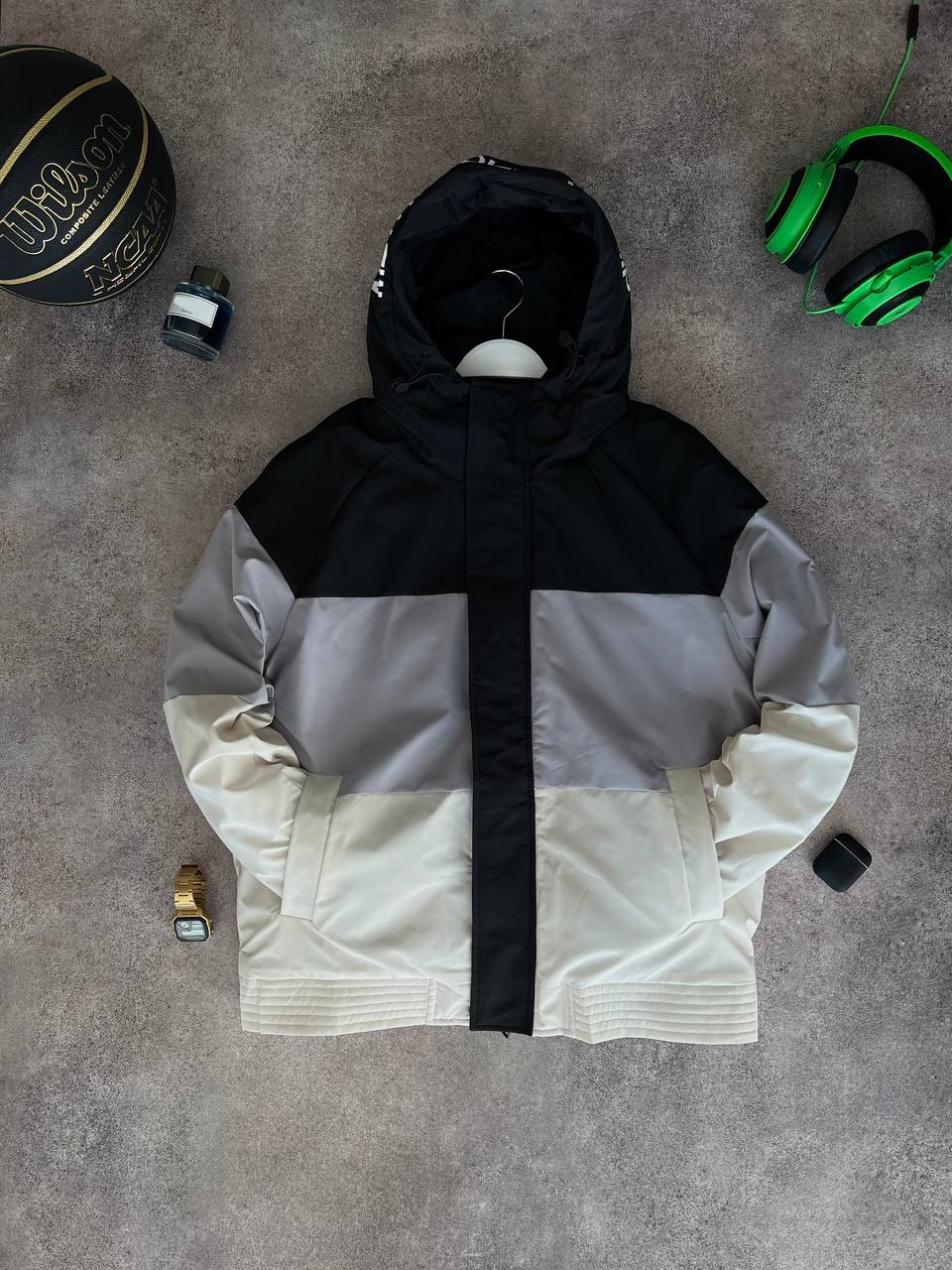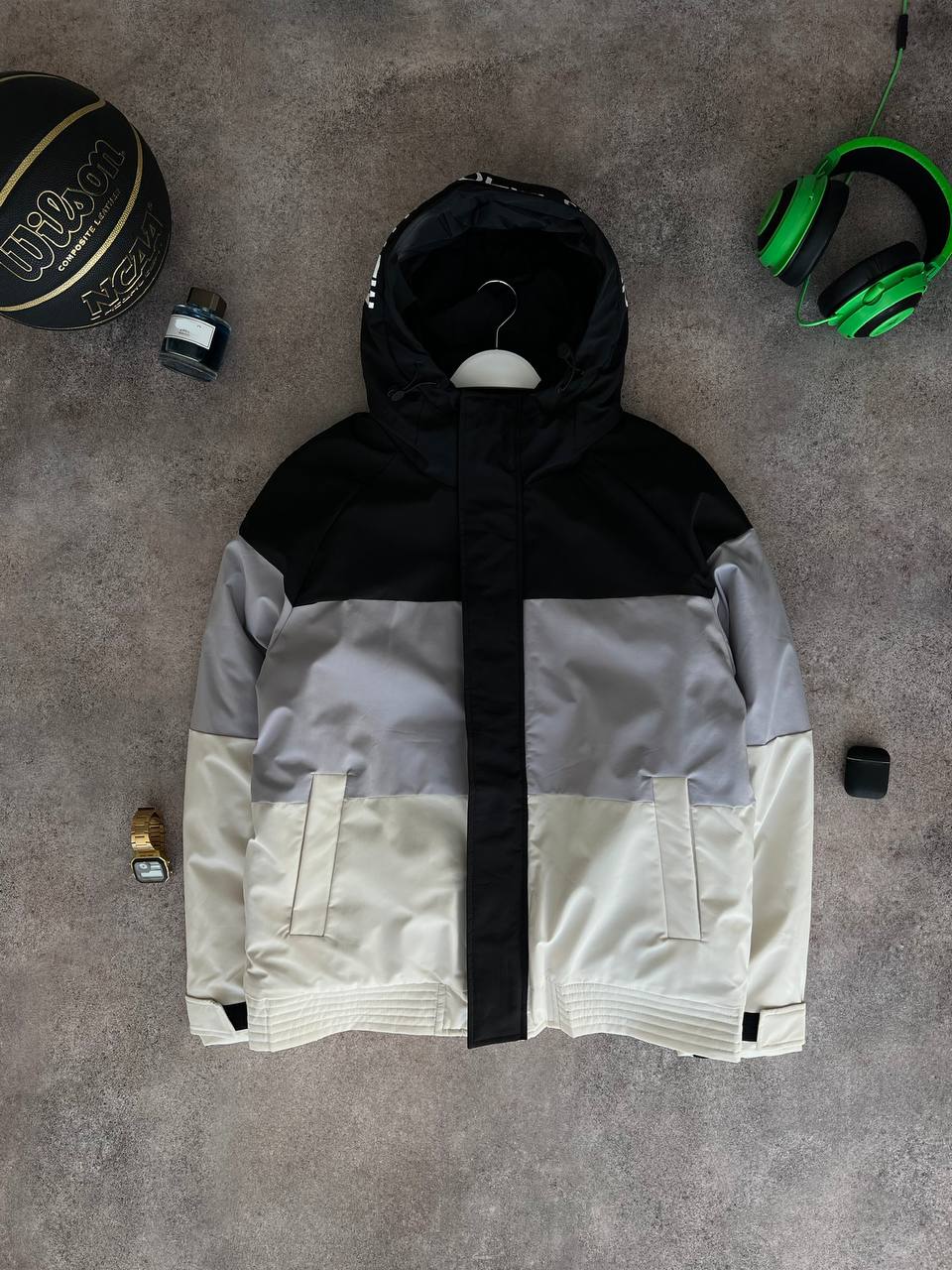 Мужская Зимняя Трехцветна Куртка – Водоотталкивающая на Флисовой Подкладке с Капюшоном