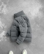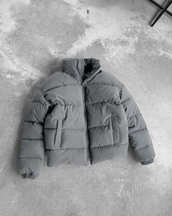 Мужская Зимняя Вельветовая Серая Куртка с Высокой Горловиной