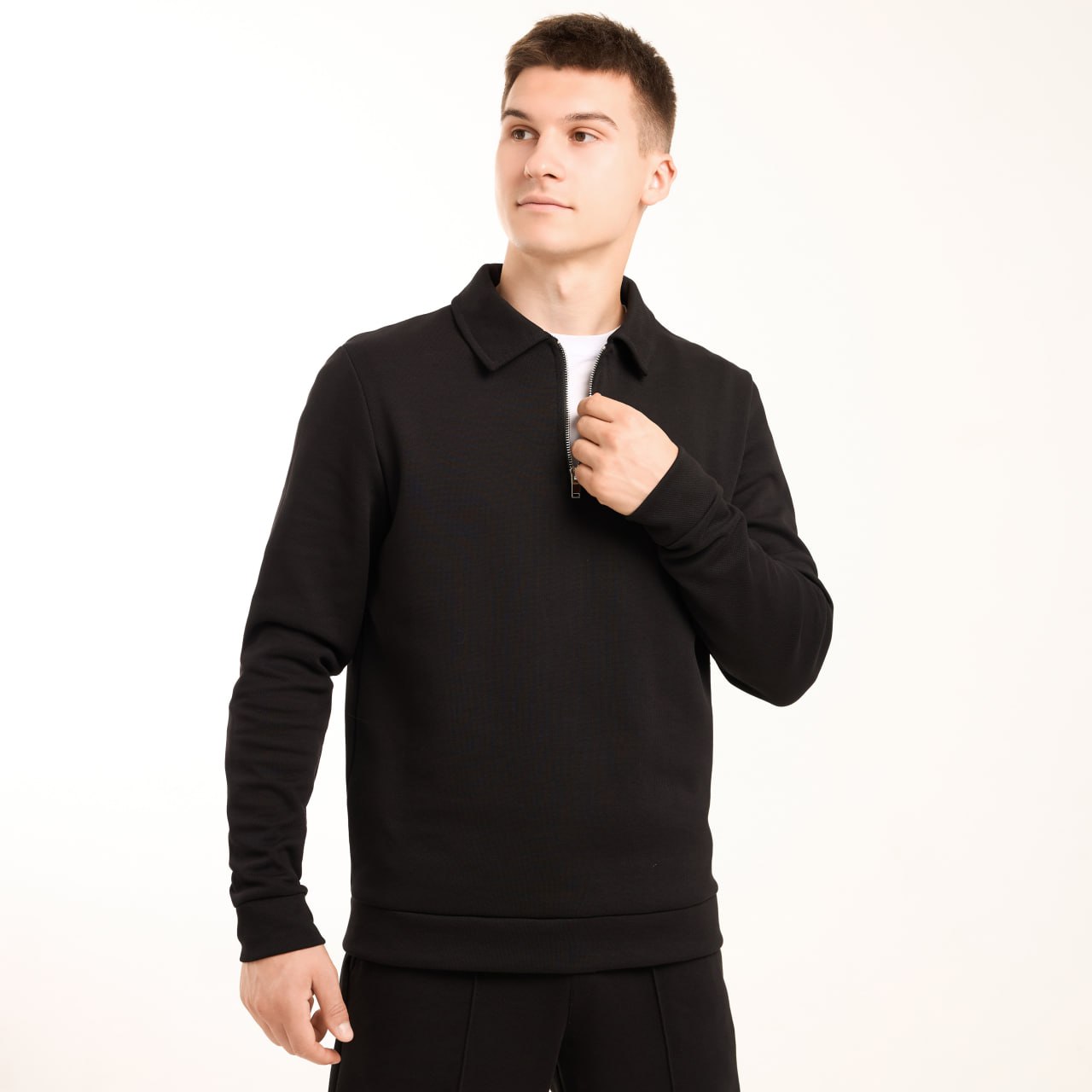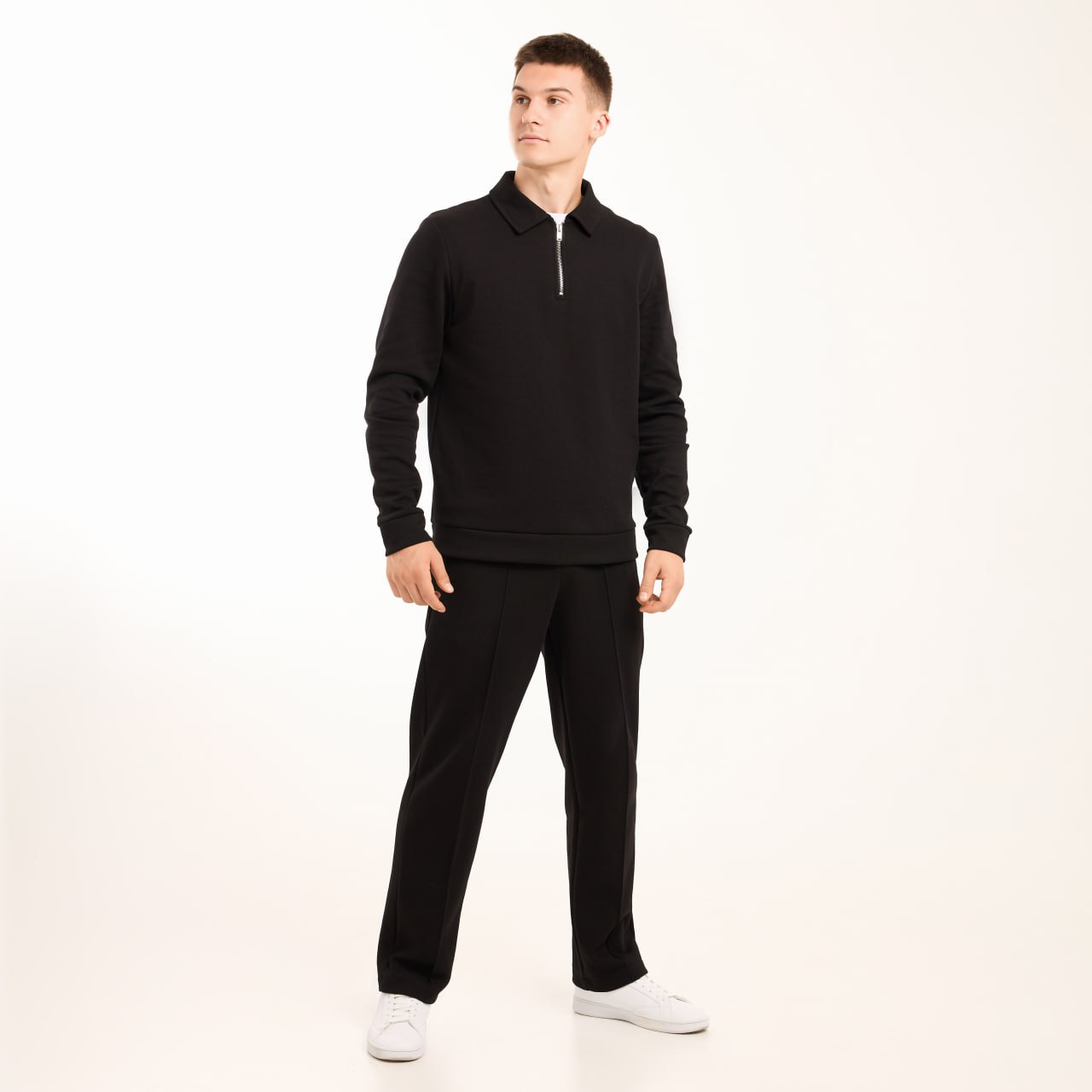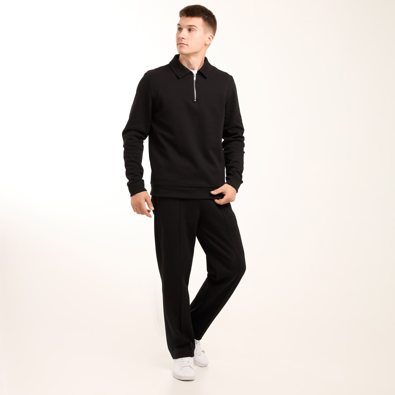 Мужской Базовый Черный Костюм – Кофта Поло + Штаны со Стрелками
