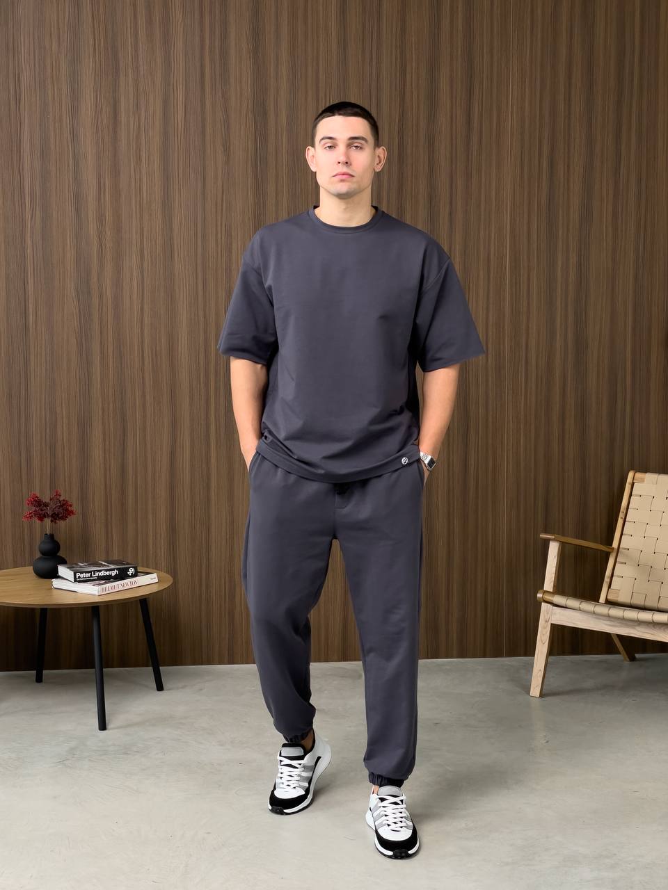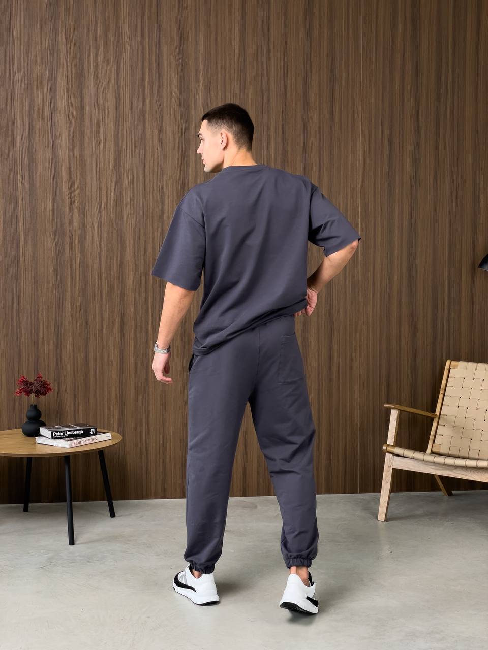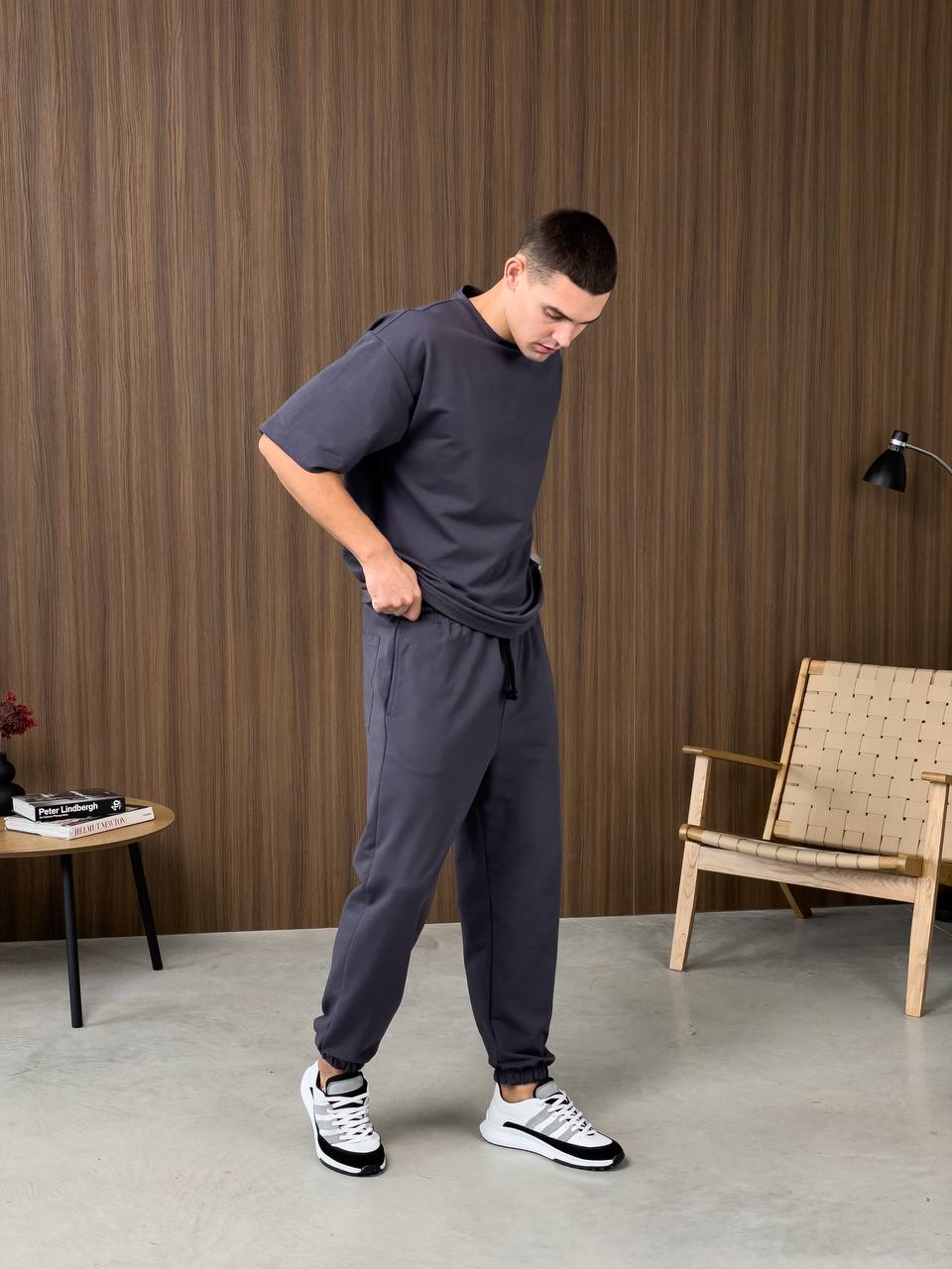 Мужской Базовый Летний Хлопковый Графитовый Костюм Оверсайз (Футболка + Джоггеры)
