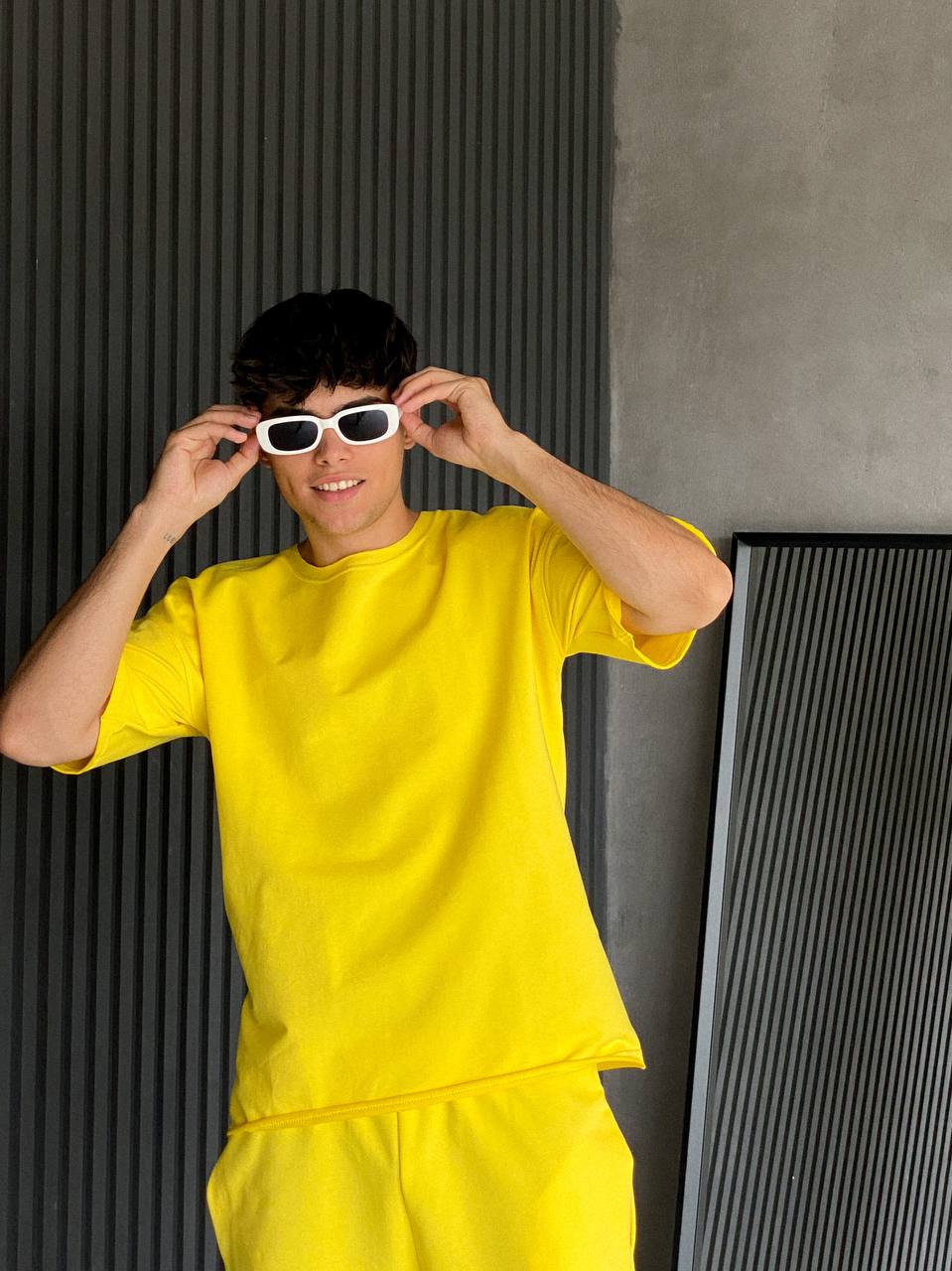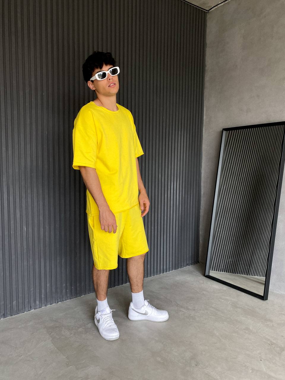 Мужской Базовый Летний Желтый Комплект Двунитка Оверсайз – Футболка и Шорты