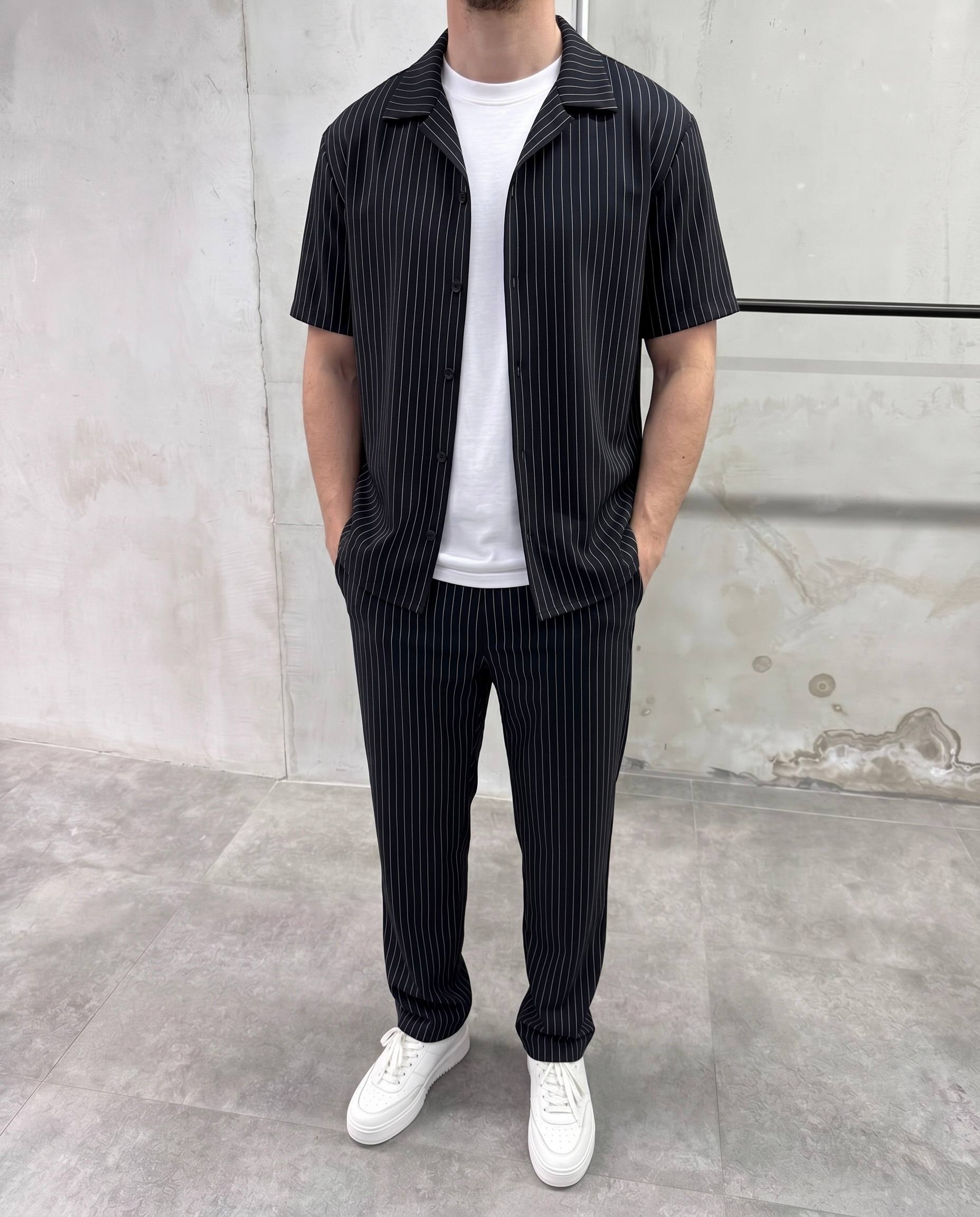 Мужской Черный Костюм Комплект Двойка – Рубашка с Коротким Рукавом + Штаны Брюки