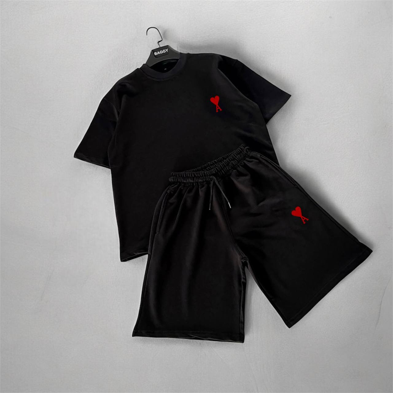 Мужской Черный Летний Костюм Туз – Футболка Шорты Свободного Кроя