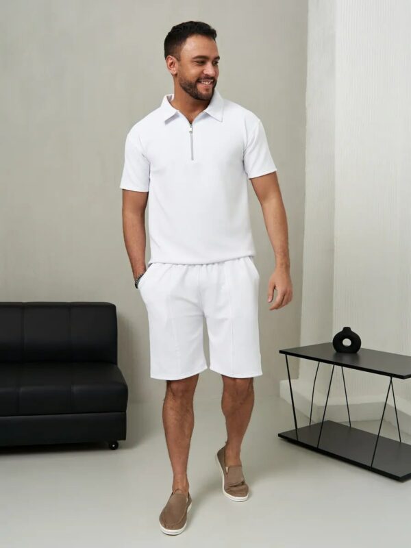 Мужской Дышащий Летний Белый Костюм – Футболка Поло + Шорты