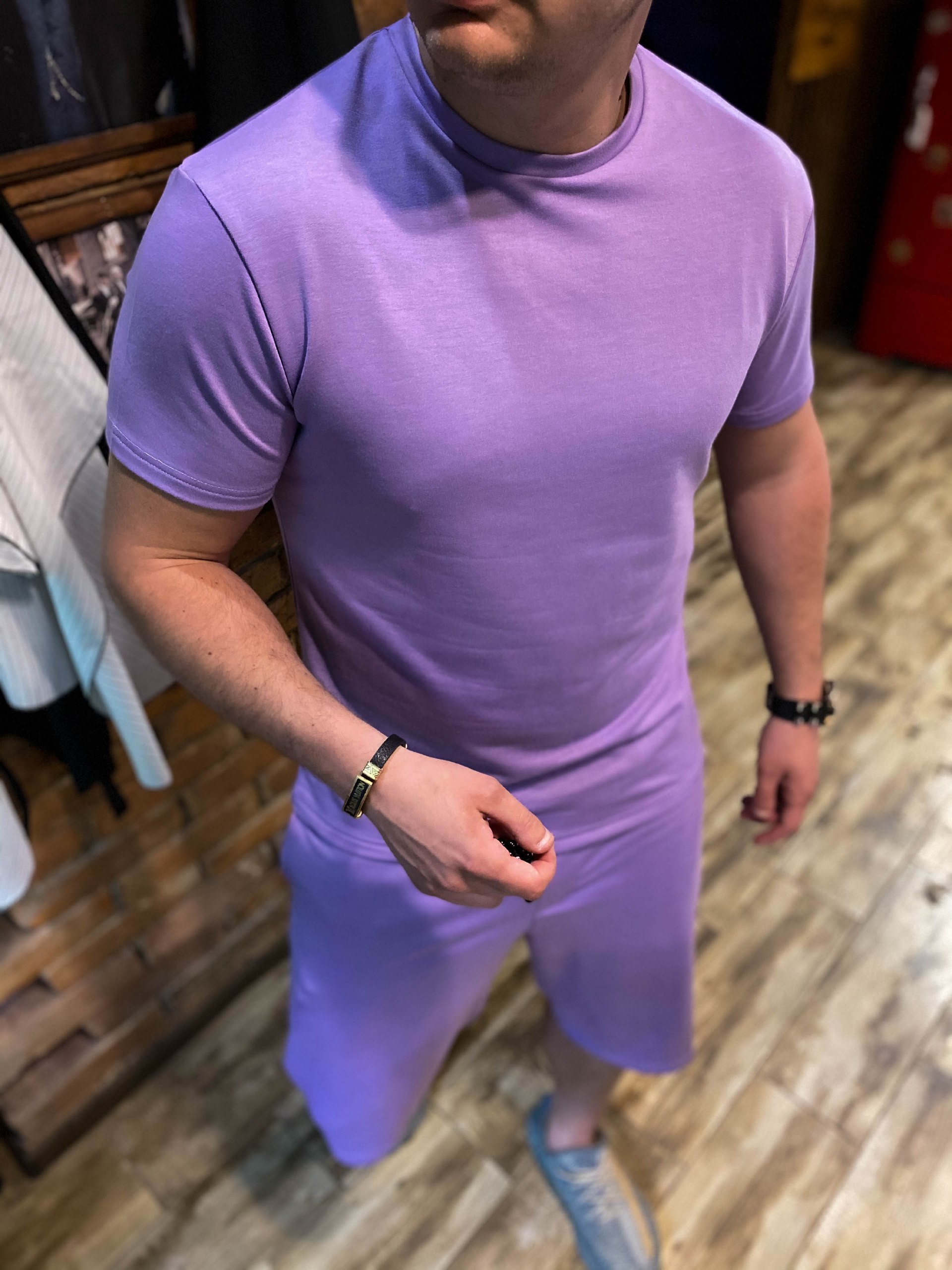 Мужской Костюм Двойка Сиреневый – Легкий Летний Оверсайз Шорты+Футболка Однотонный