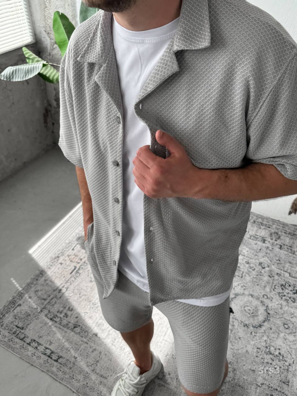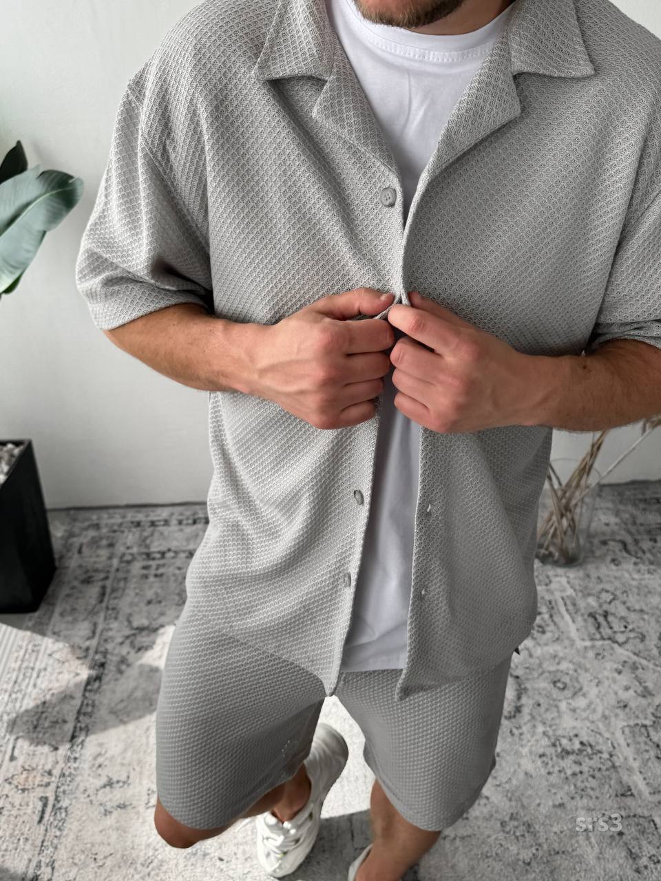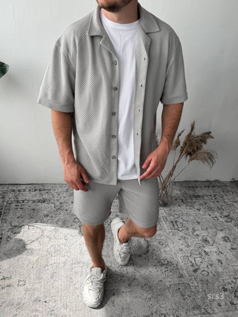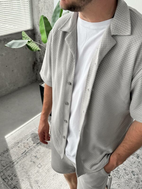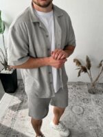Мужской Легкий Летний Серый Костюм Рубашка Шорты
