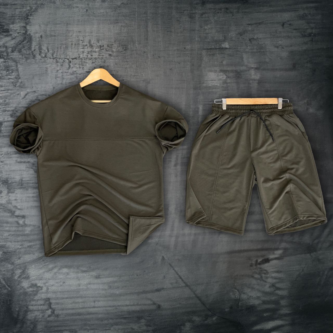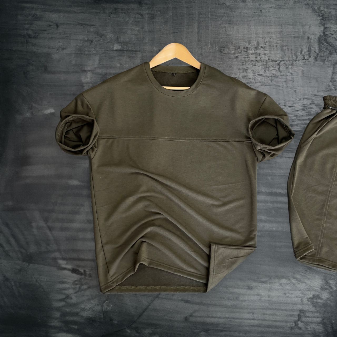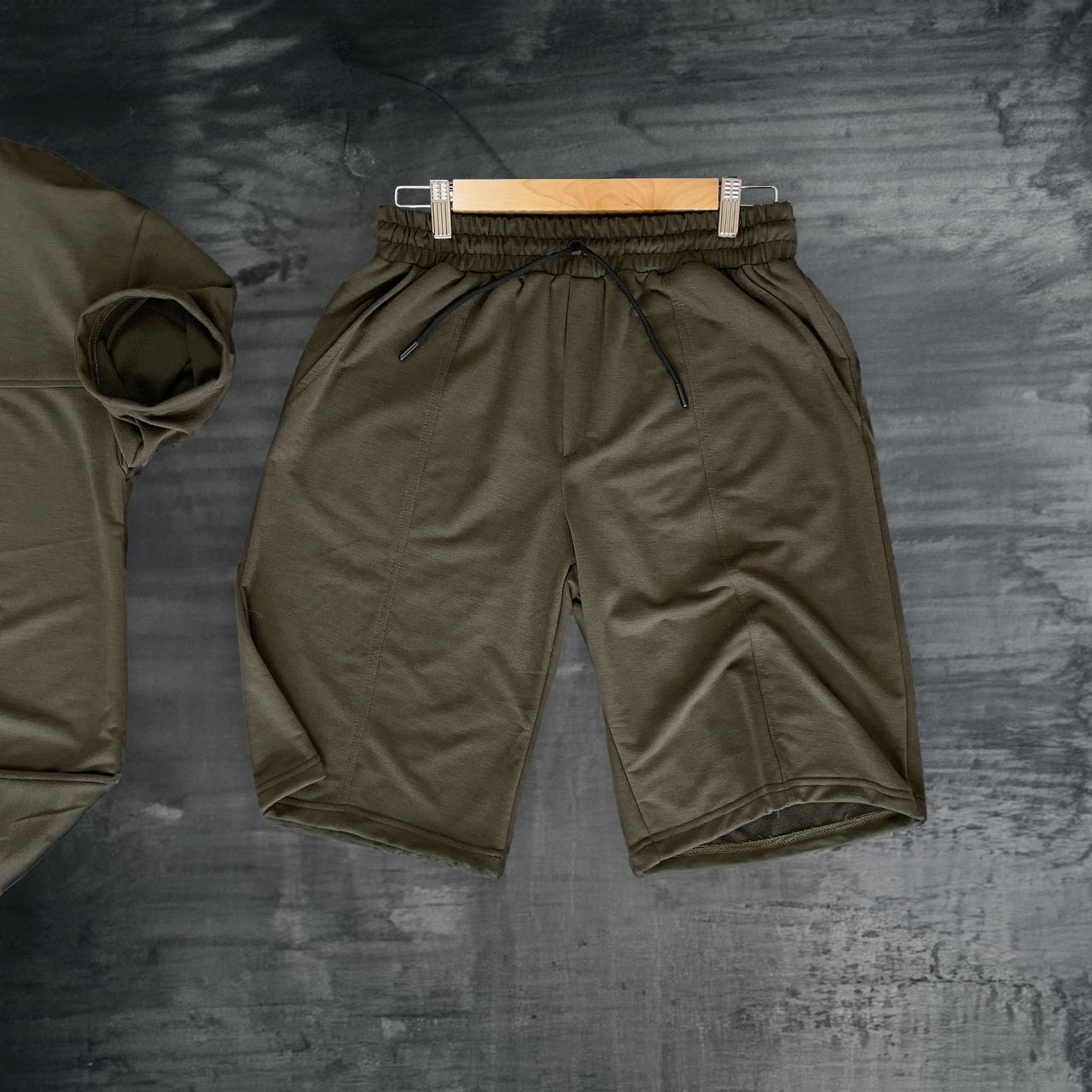 Мужской Летний Хаки Комплект Оверсайз – Зеленый Трикотажный Однотонный (Футболка + Шорты)