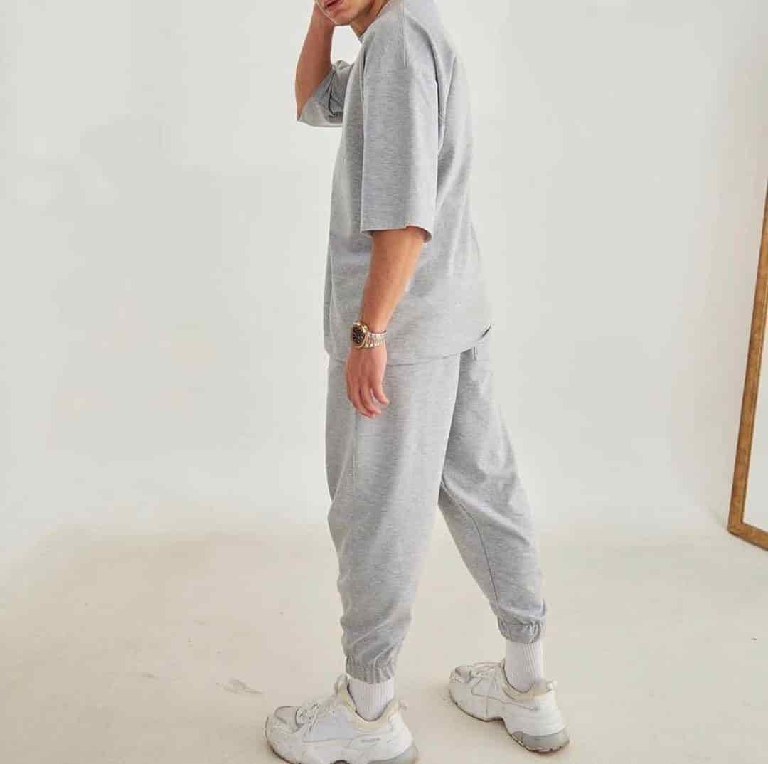 Мужской Серый Комплект Двойка Меланж из Коттона Оверсайз – Объемная Футболка + Штаны Джоггеры