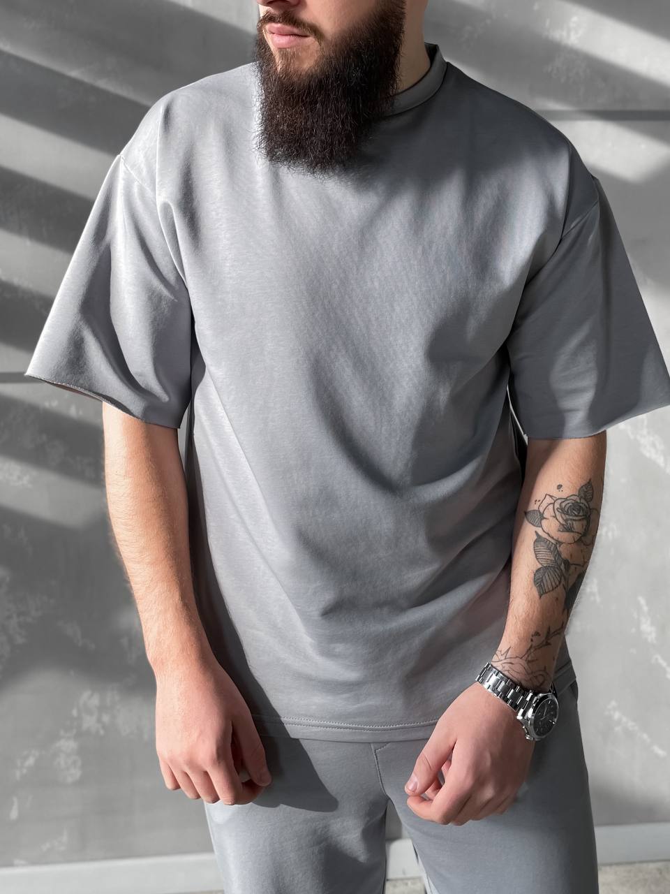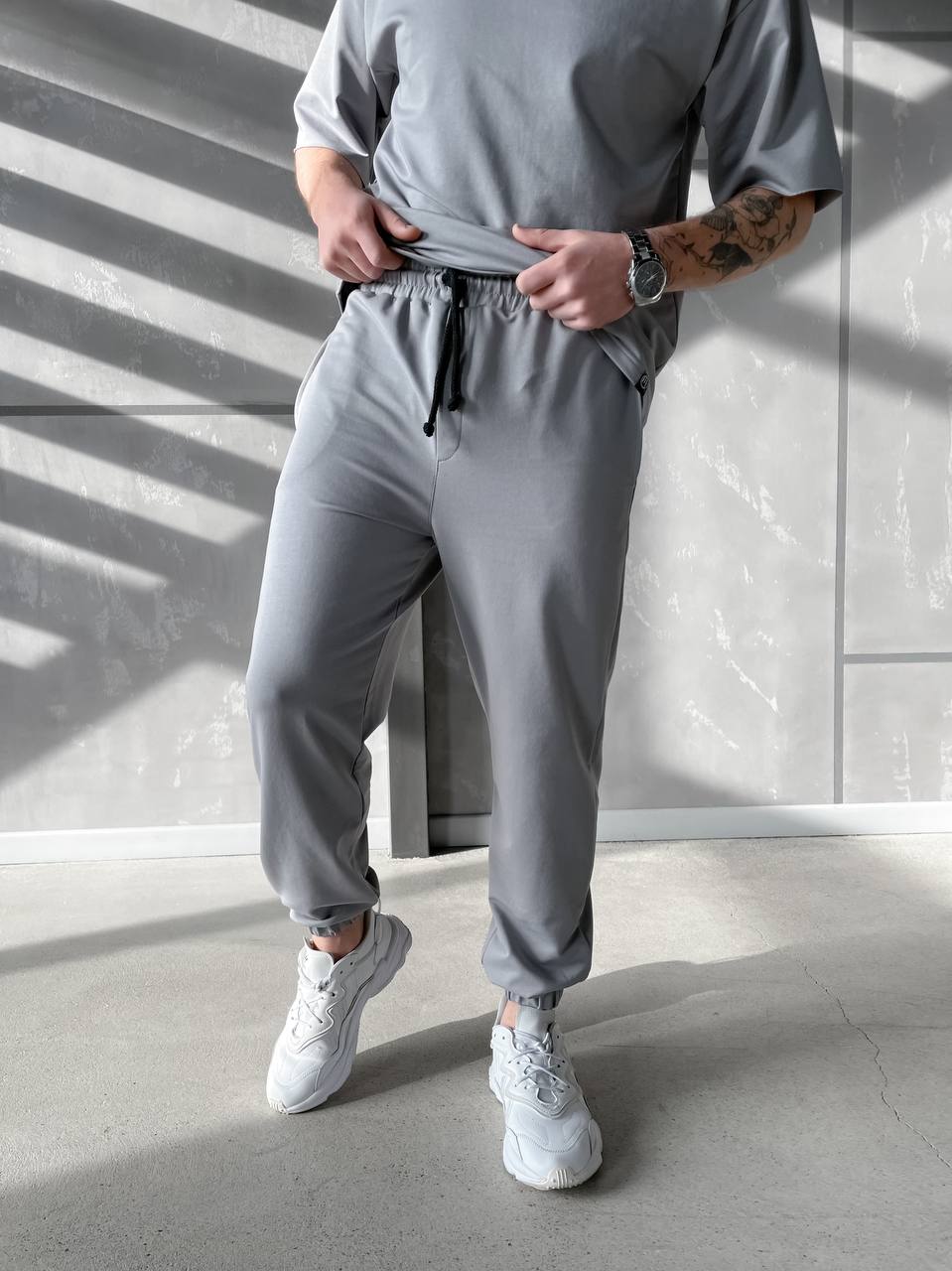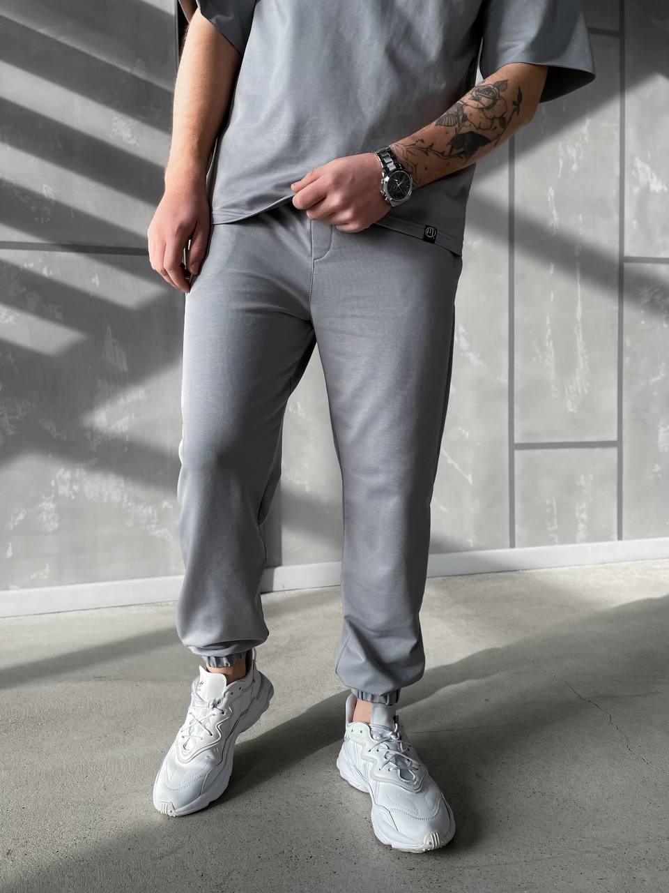 Мужской Свободный Базовый Комплект Серого Цвета – Футболка Оверсайз + Штаны Джоггеры с Манжетами