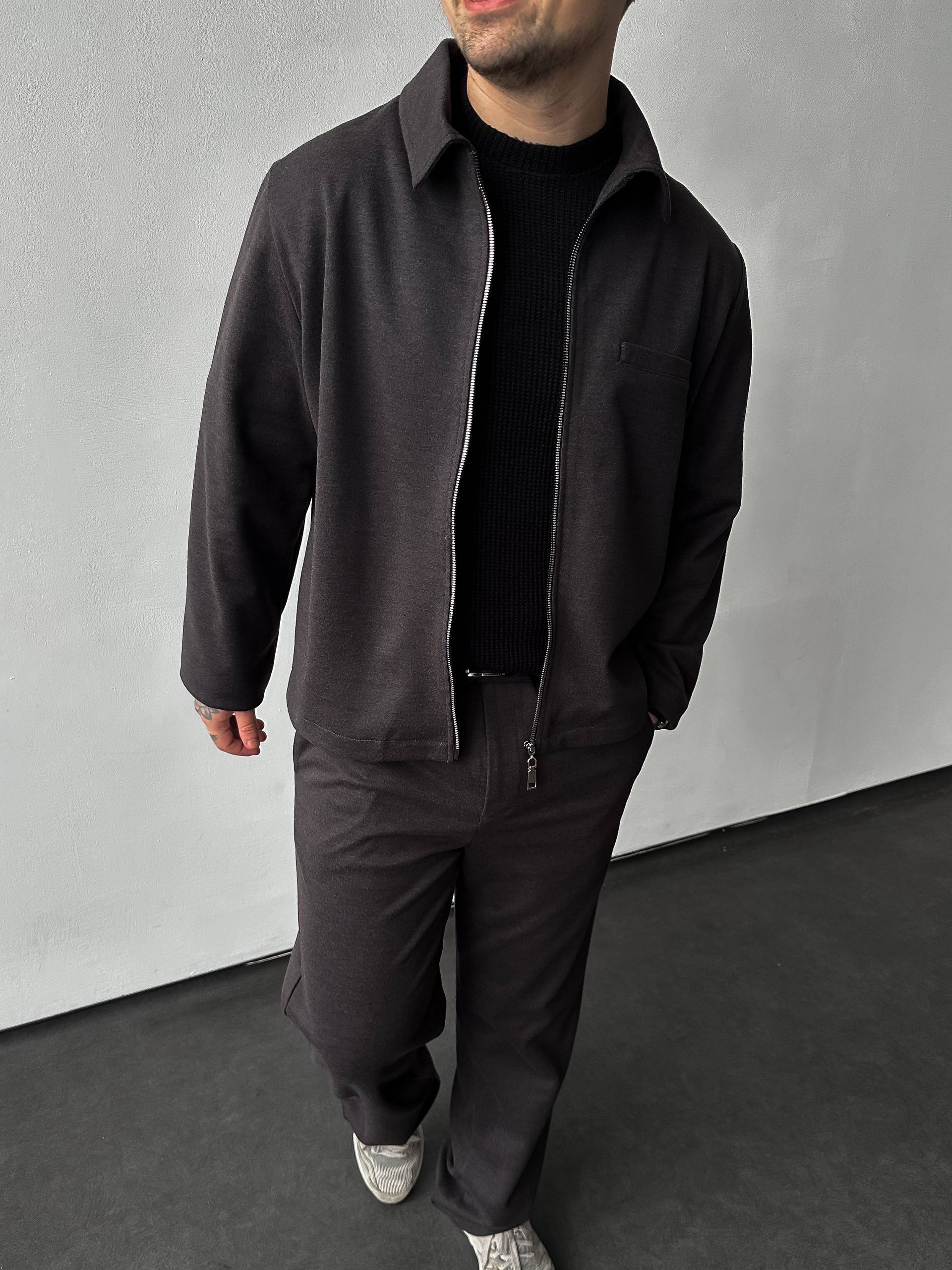 Мужской Свободный Графитовый Костюм – Бомбер на Молнии + Штаны Прямого Кроя