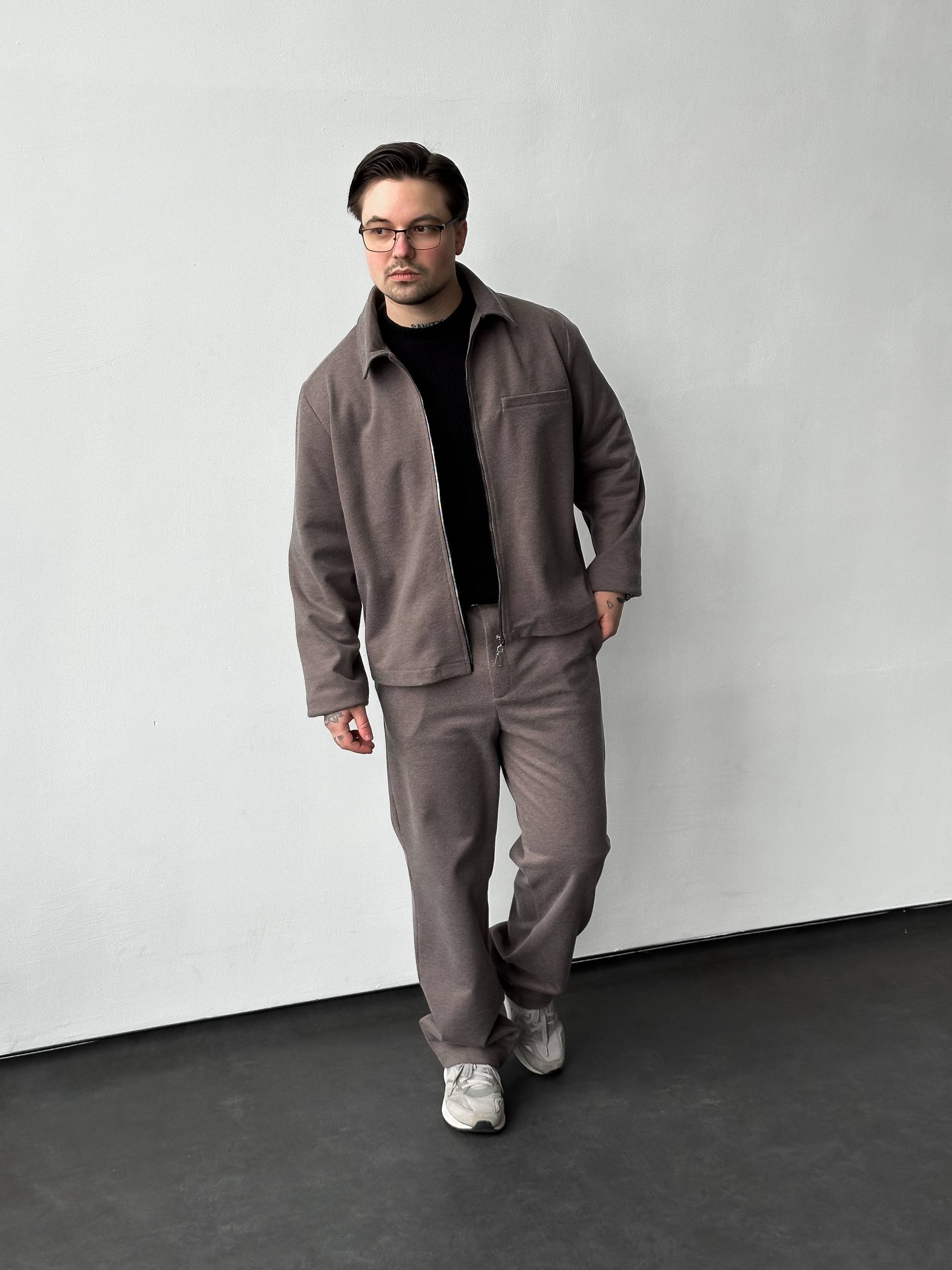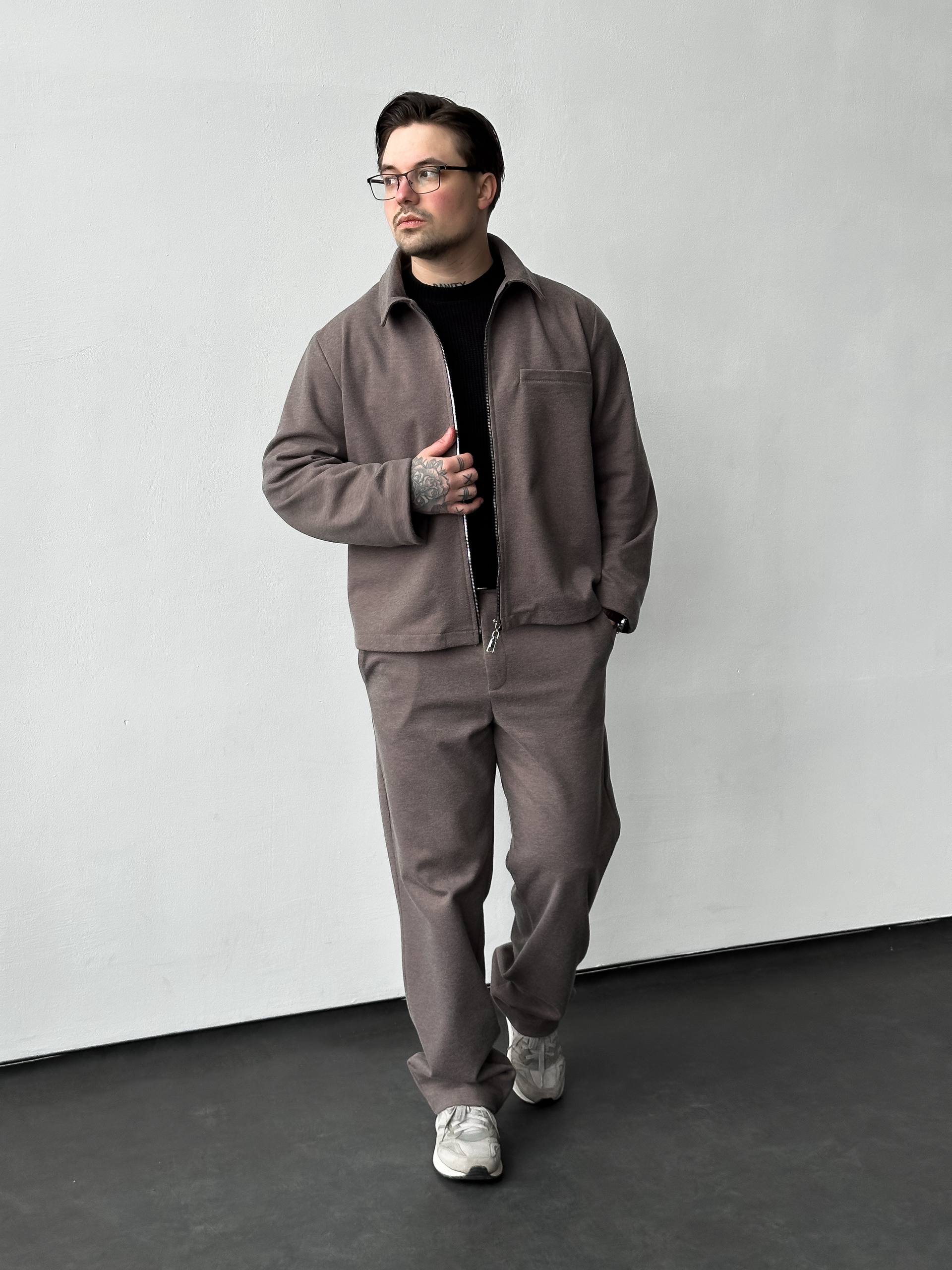 Мужской Свободный Костюм Мокко – Бомбер на Молнии + Штаны Прямого Кроя