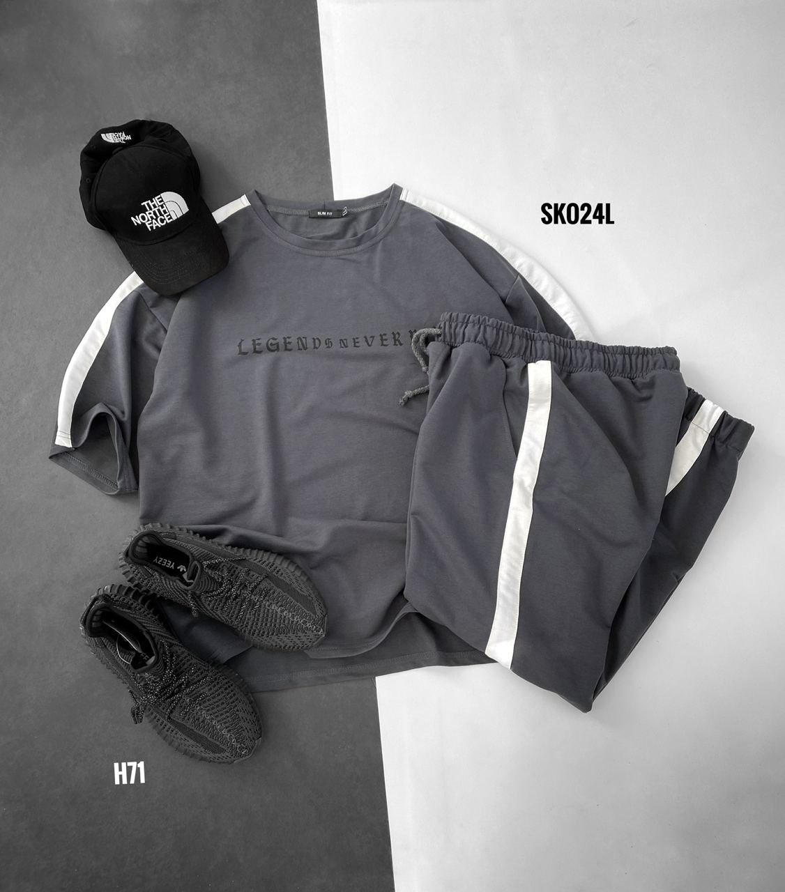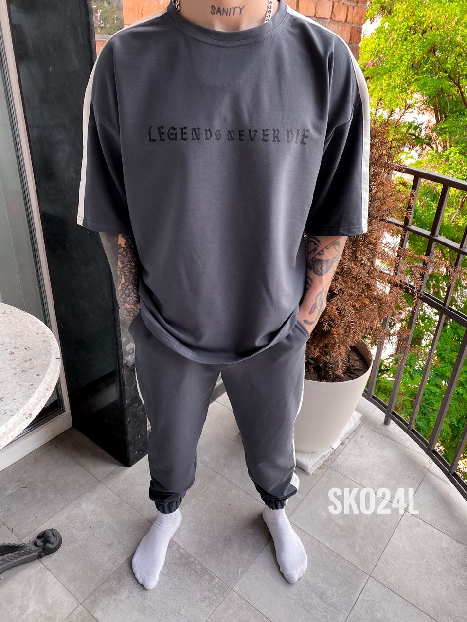 Мужской Темно-Серый Костюм Свободный с Надписью и Лампасами – Футболка + Штаны Джоггеры