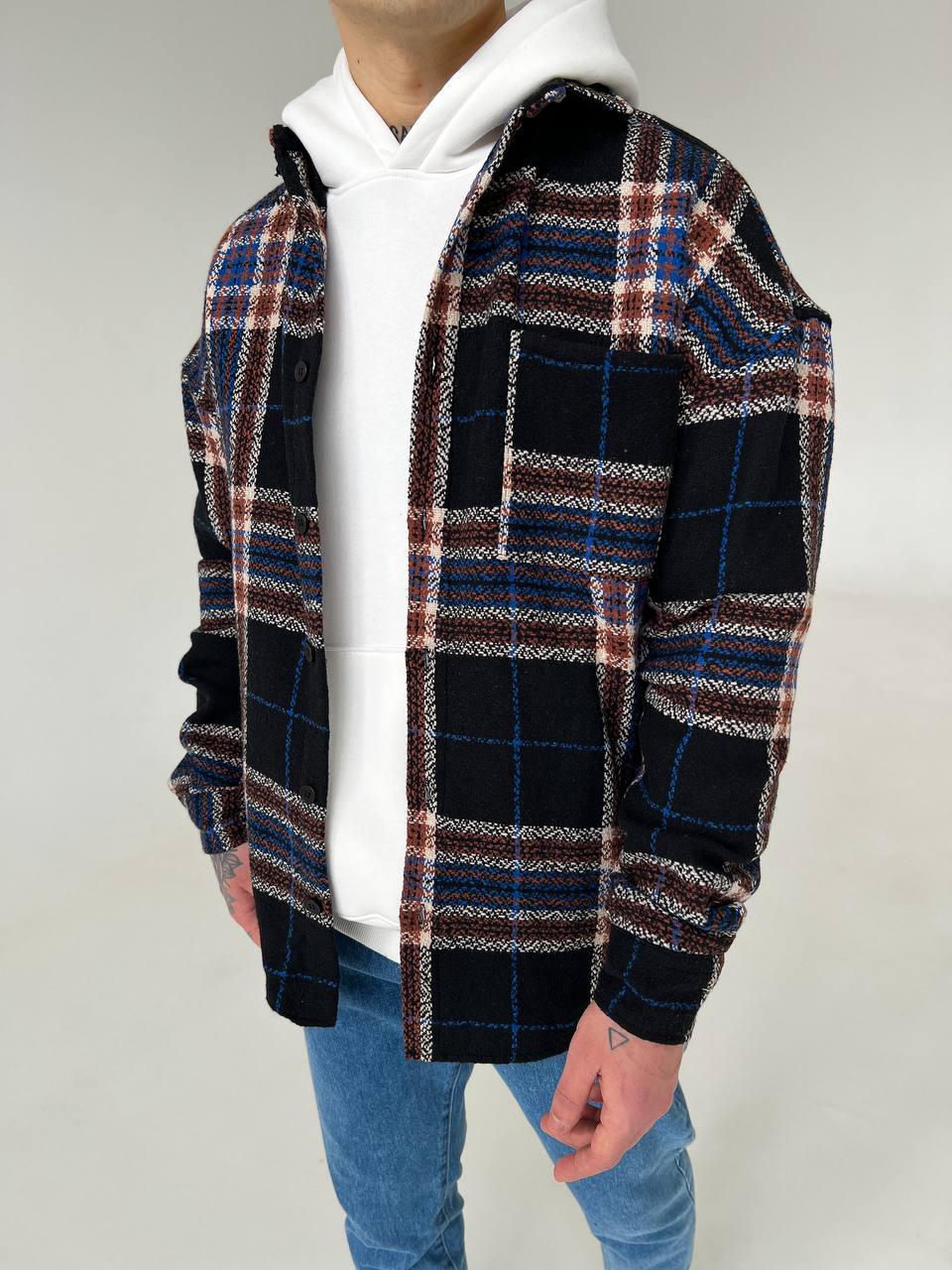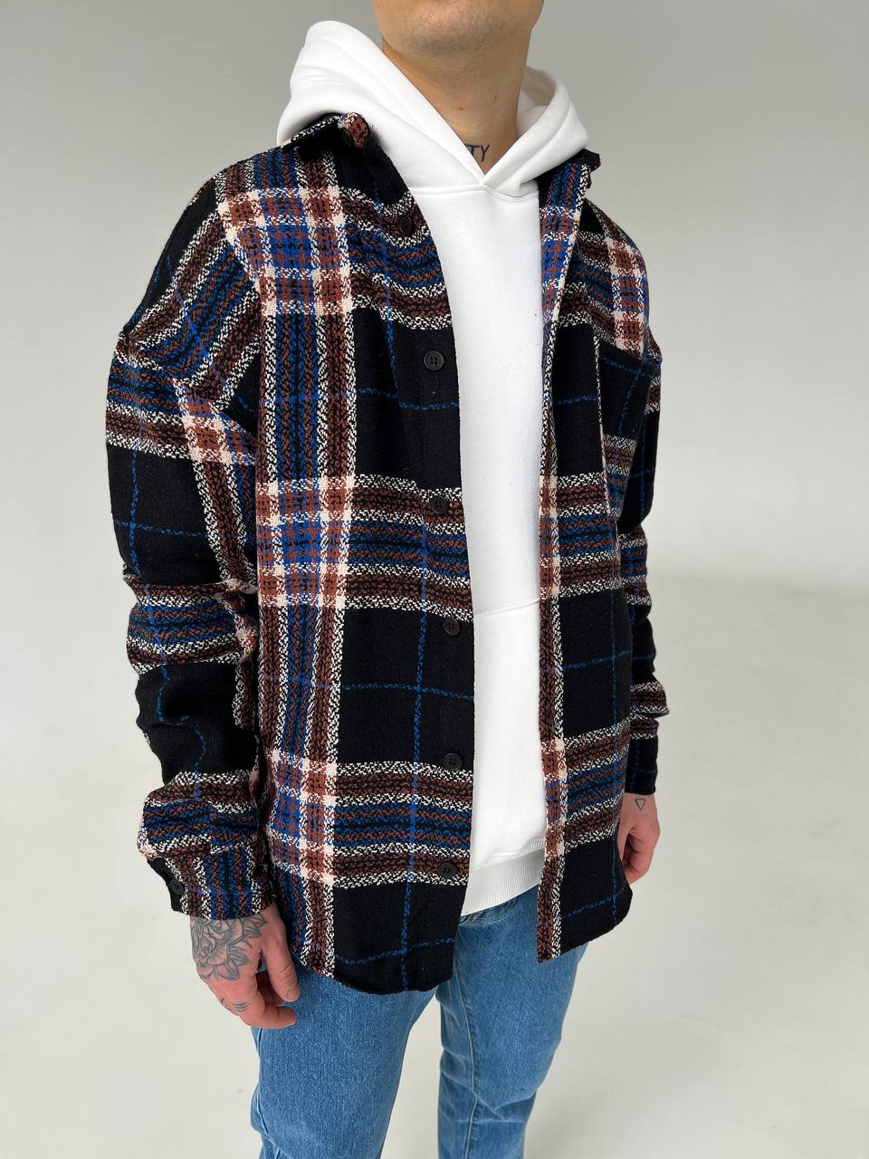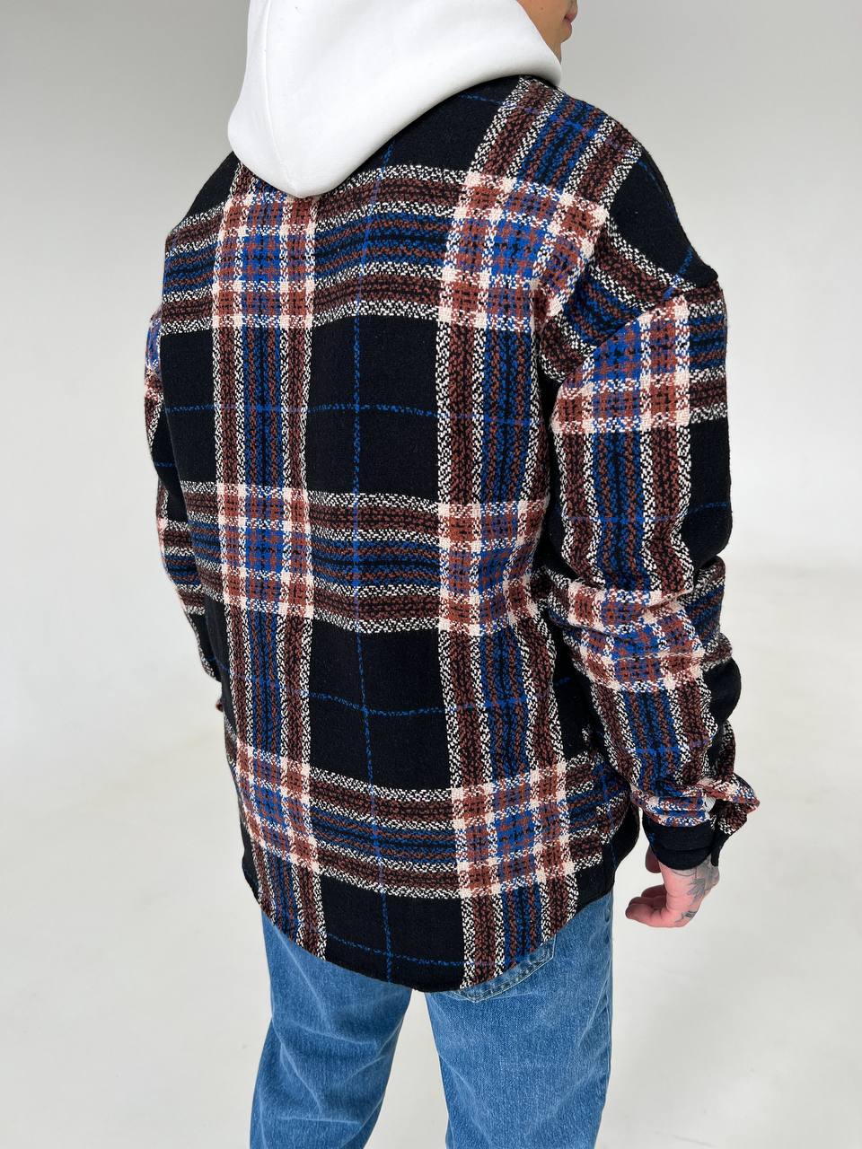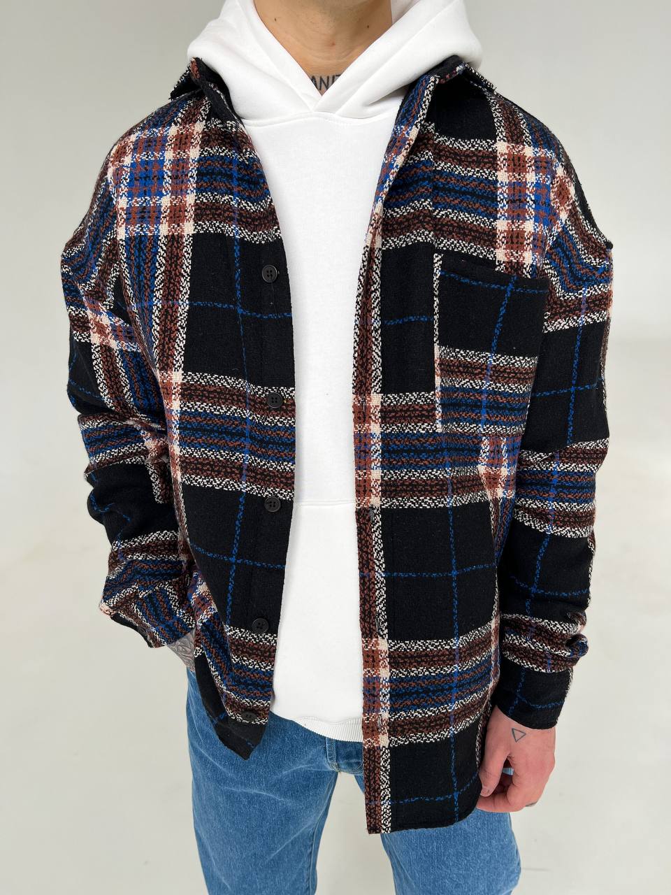 Мужская Байковая Черная Рубашка Оверсайз в Большую Клетку