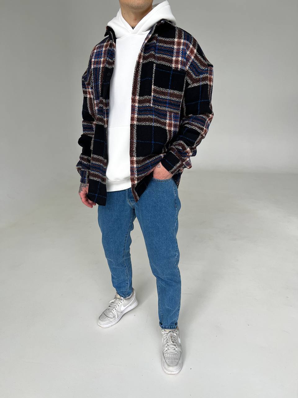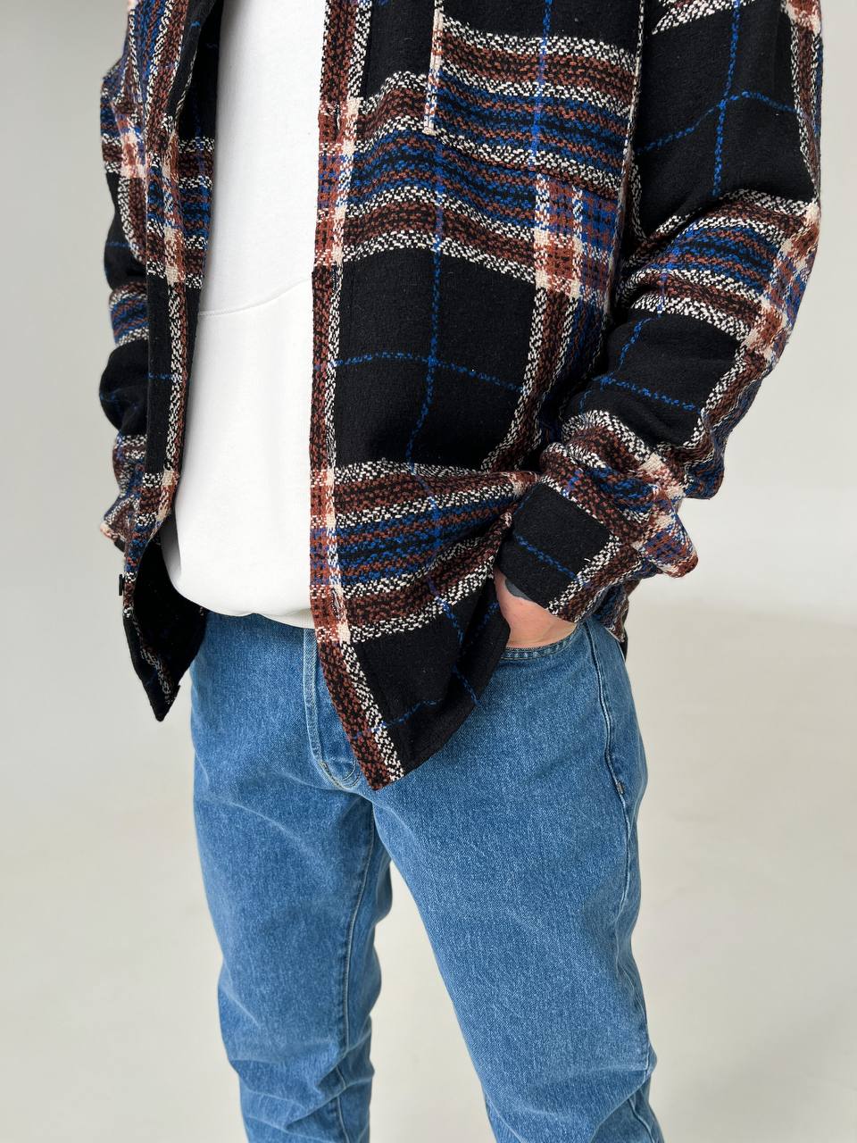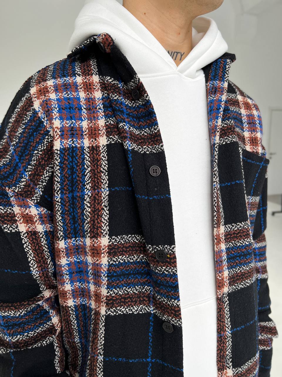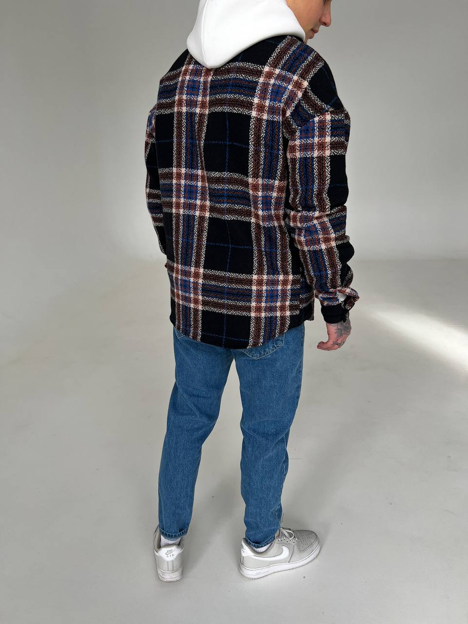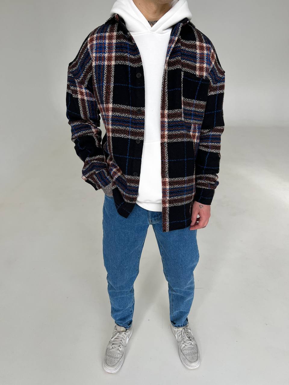 Мужская Байковая Черная Рубашка Оверсайз в Большую Клетку