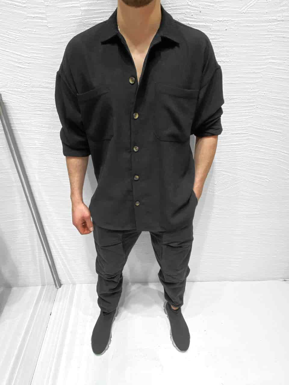 Мужская Черная Рубашка Свободная Оверсайз на Пуговицах