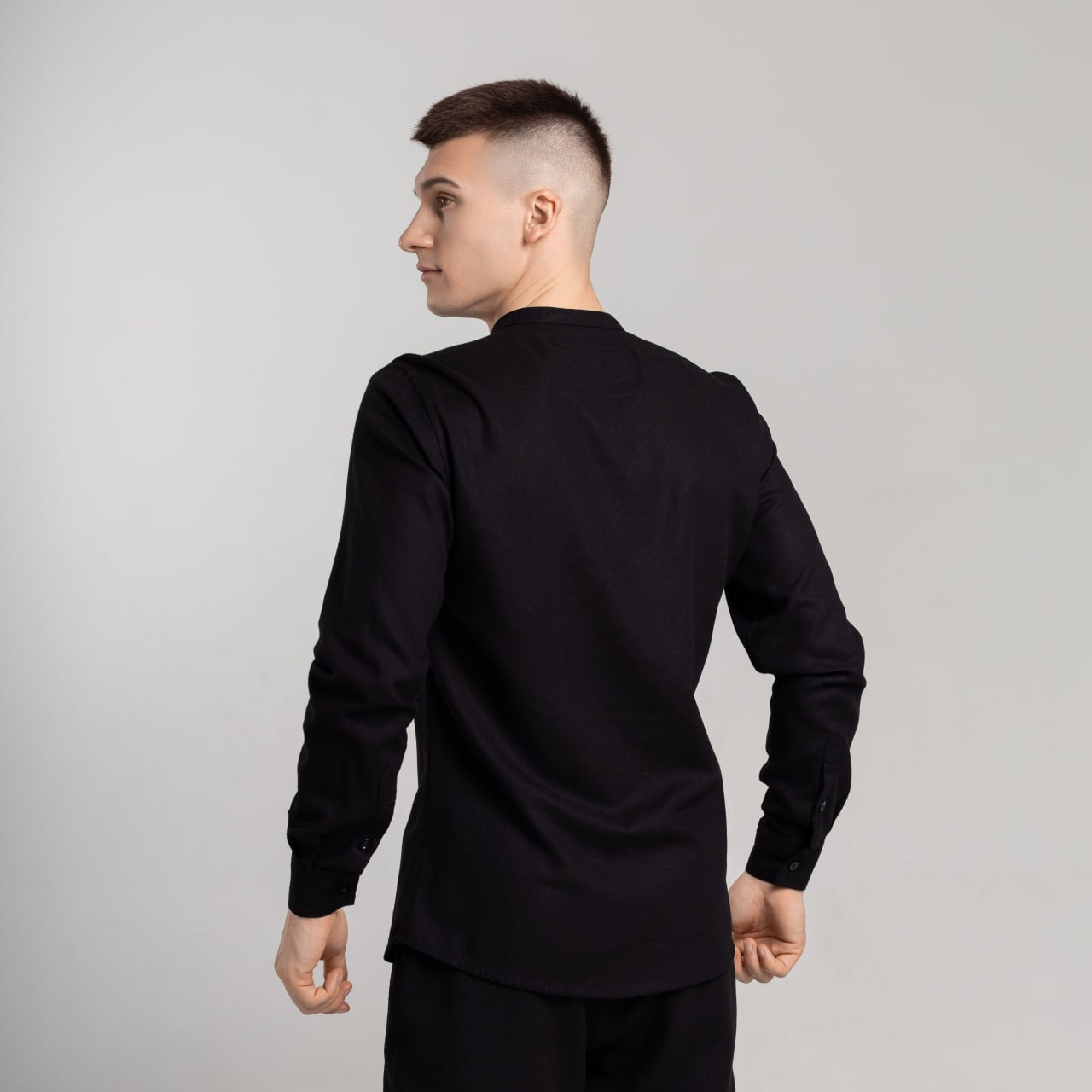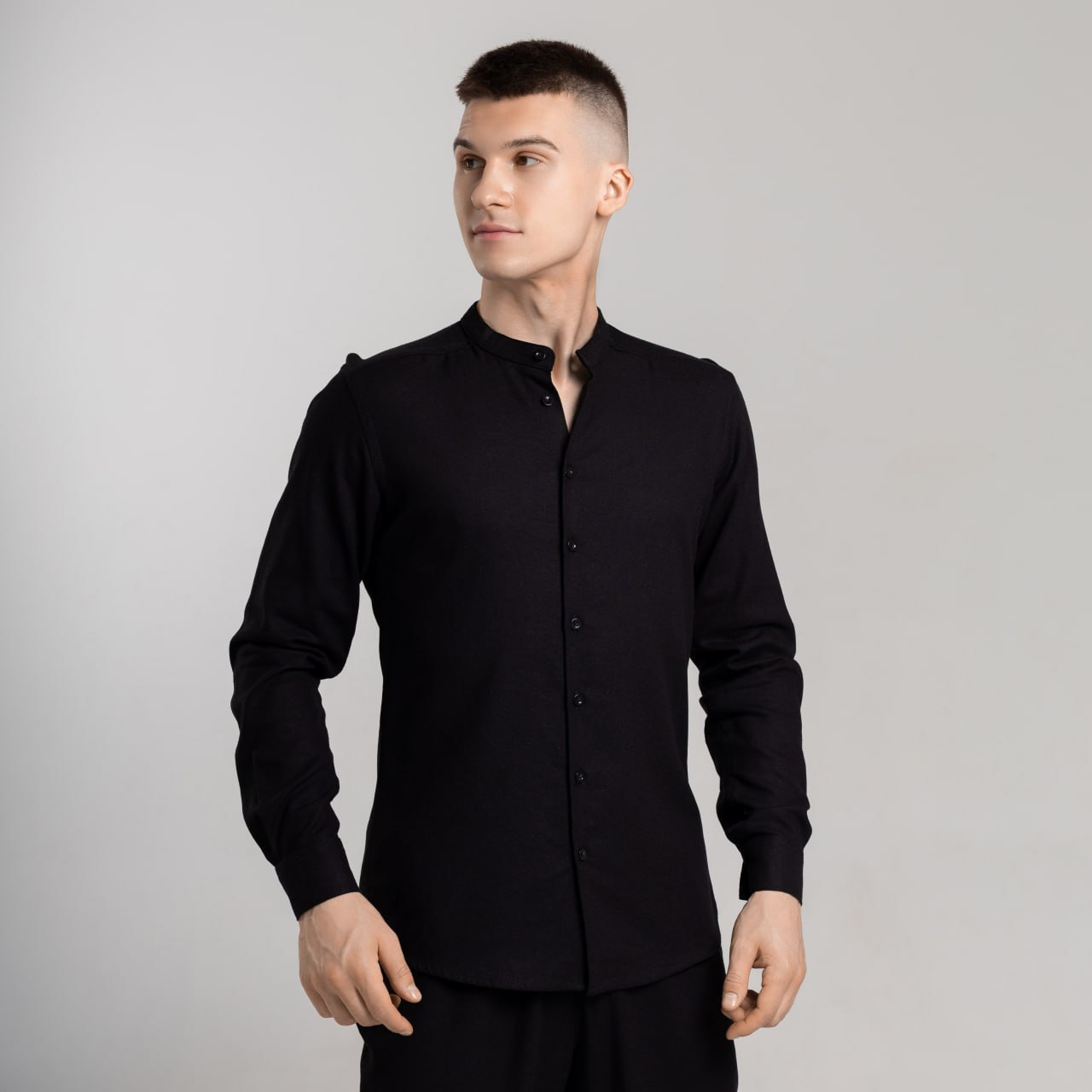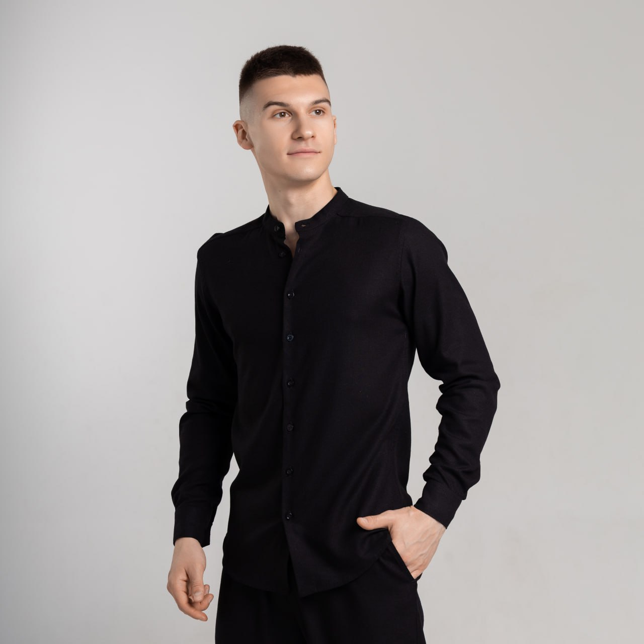Мужская Классическая Черная Рубашка Лен Прямого Кроя