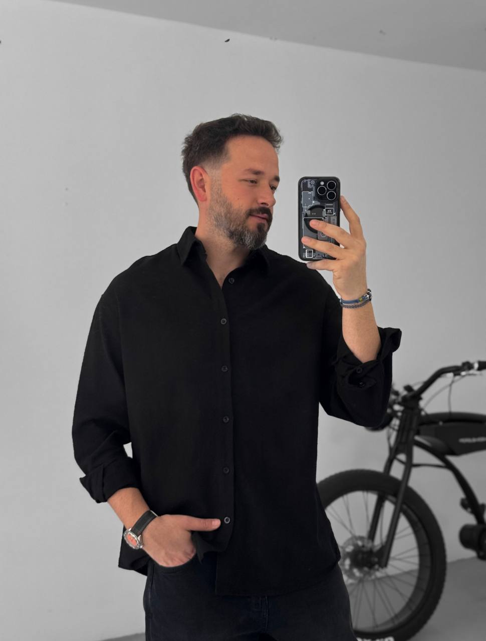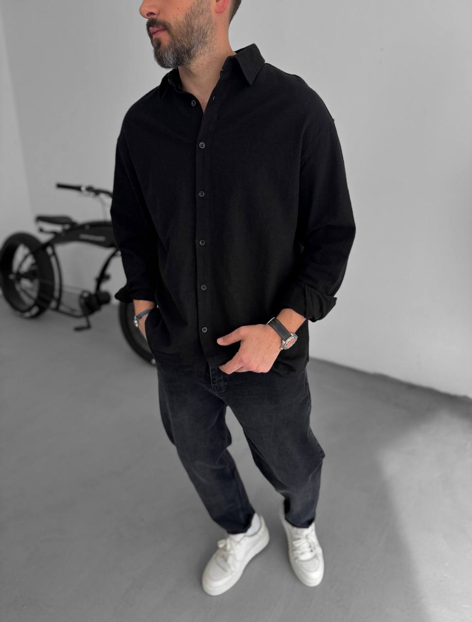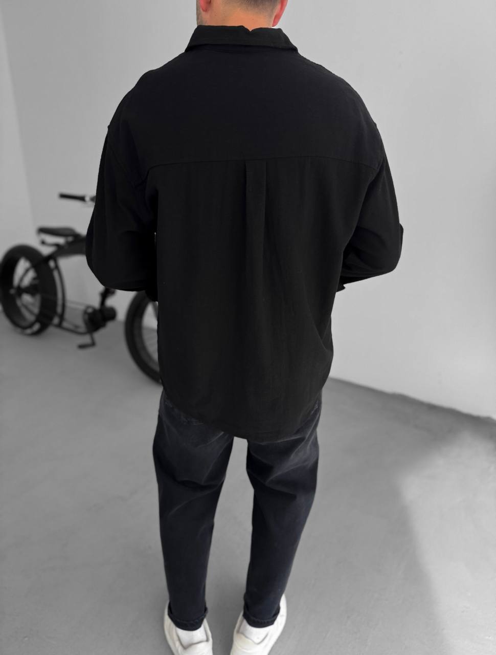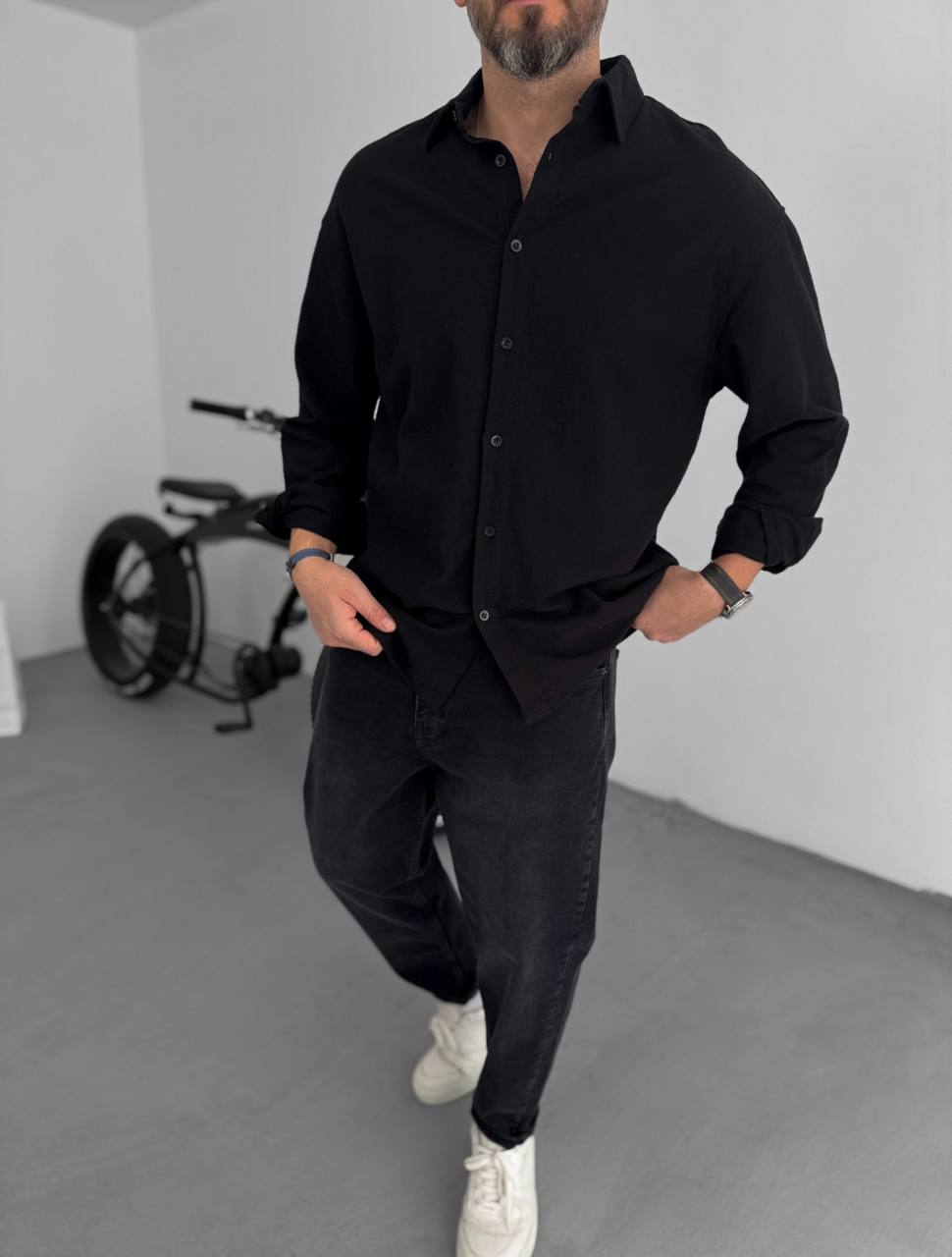 Мужская Классическая Хлопковая Черная Рубашка Оверсайз