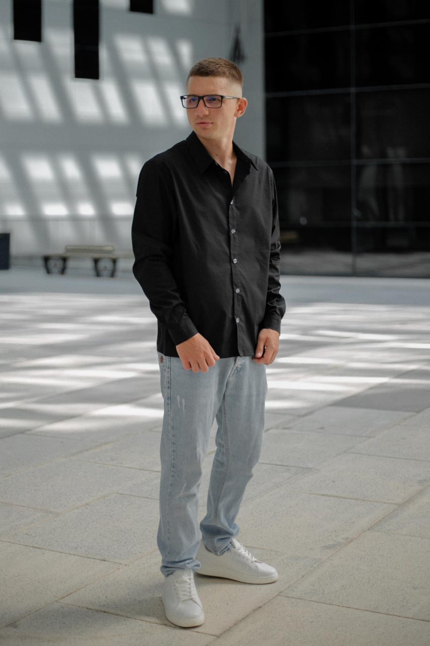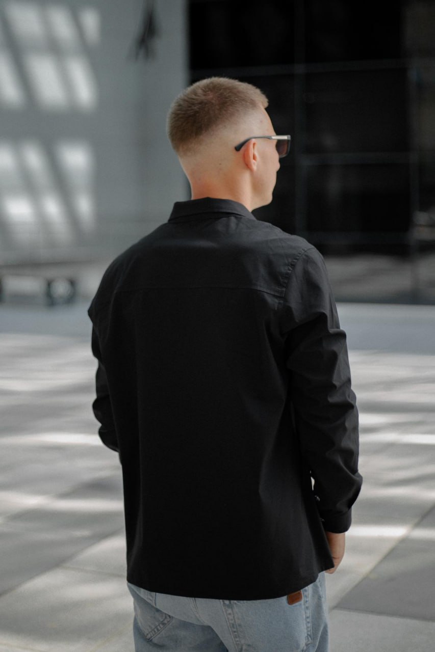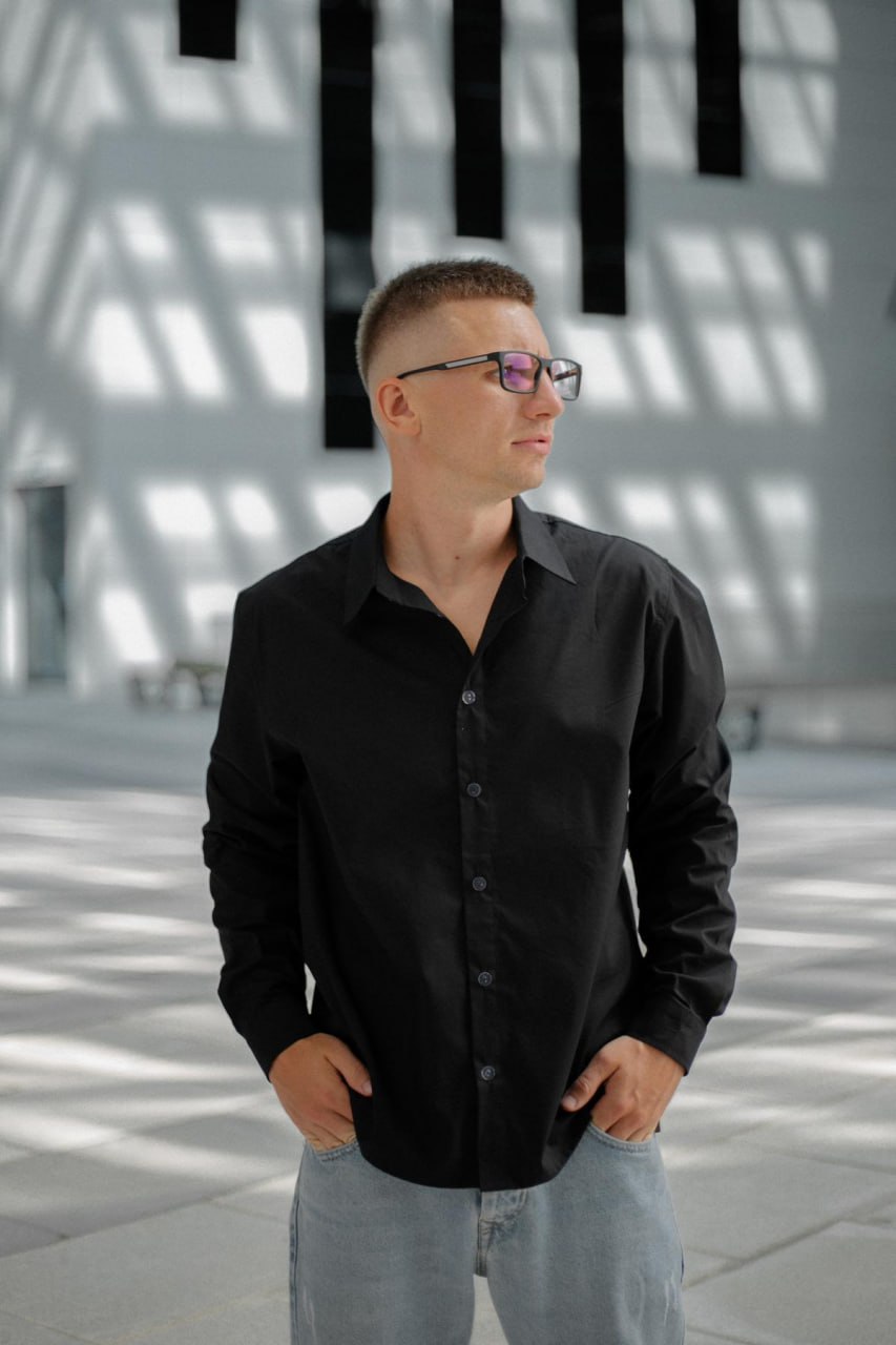 Мужская Классическая Хлопковая Черная Рубашка Свободного Прямого Кроя