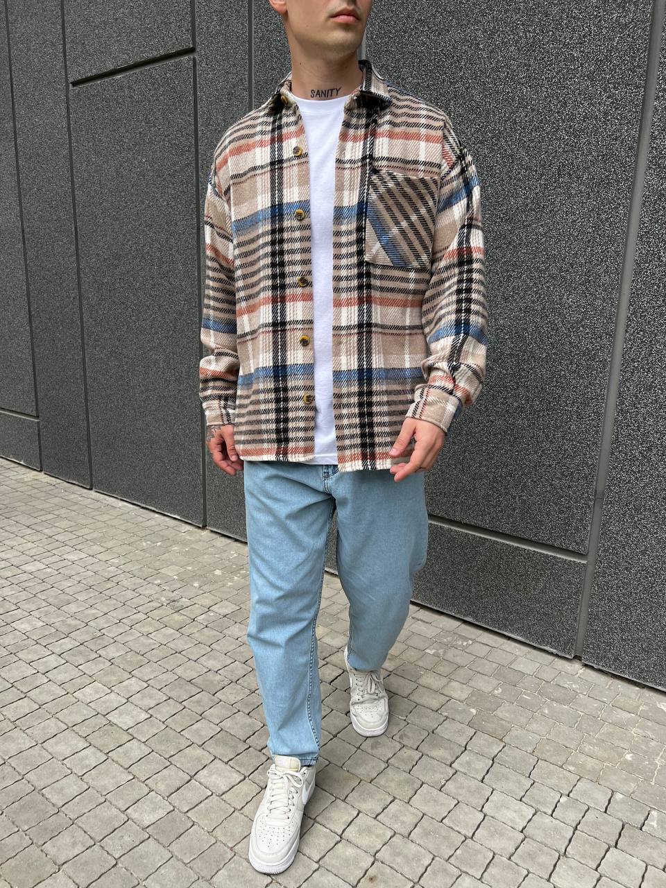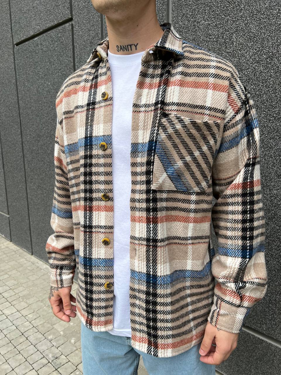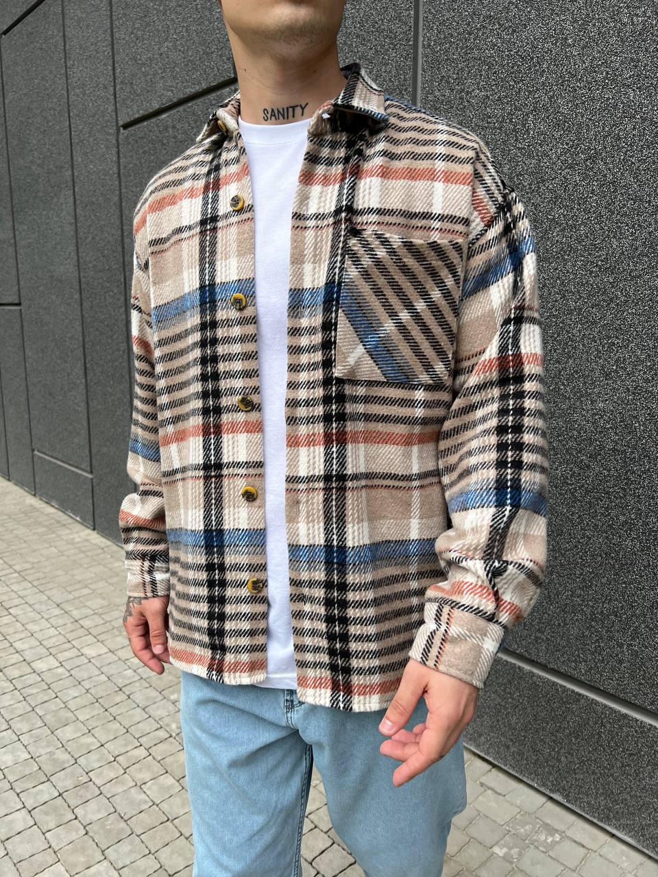 Мужская Клетчатая Рубашка Цвета Мокко Оверсайз из Байки