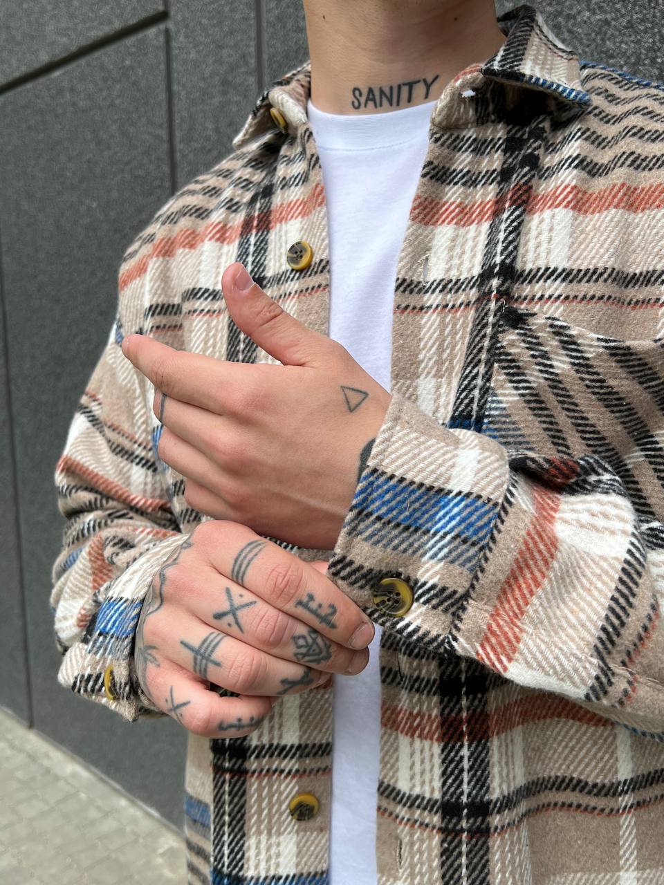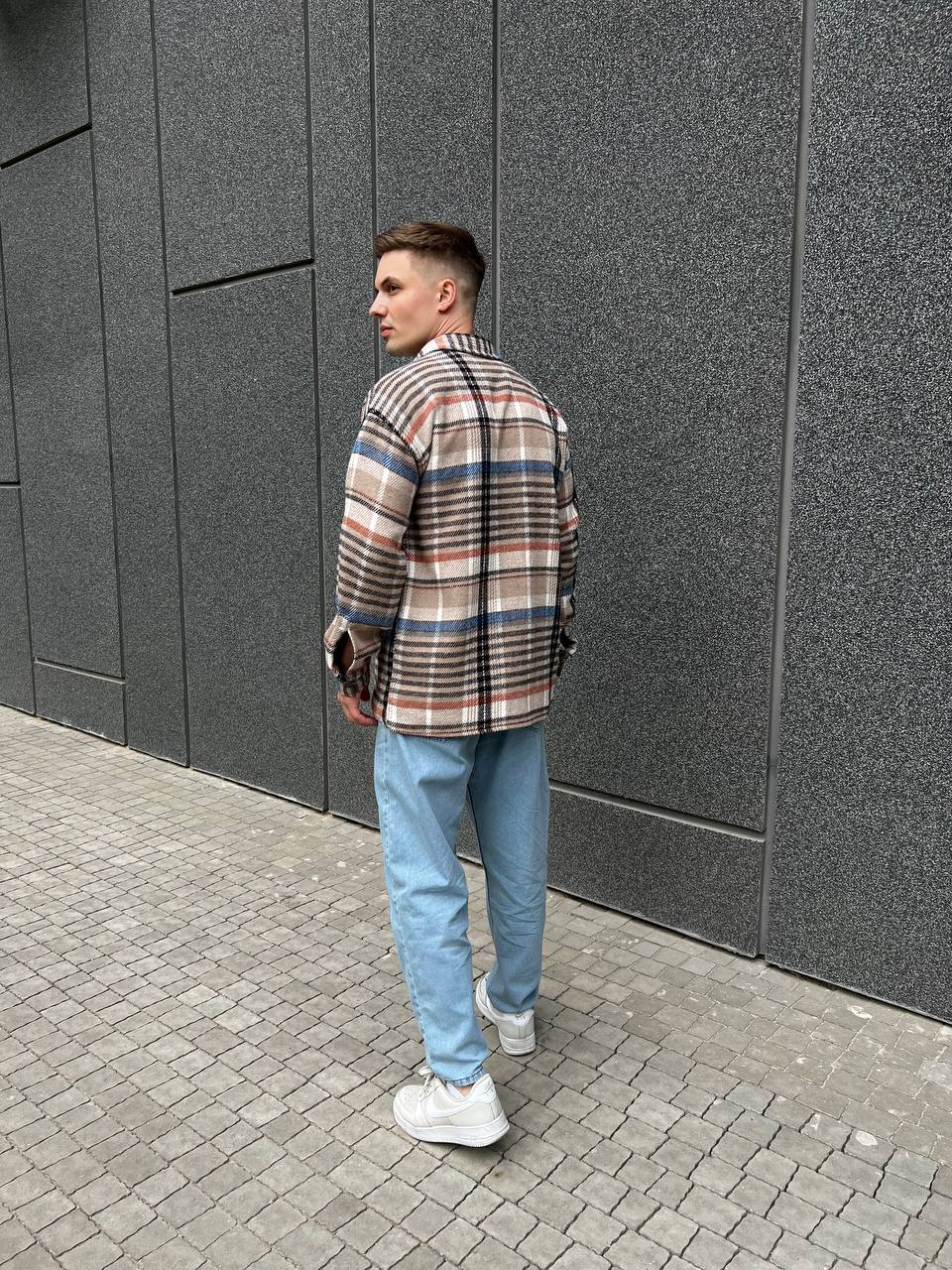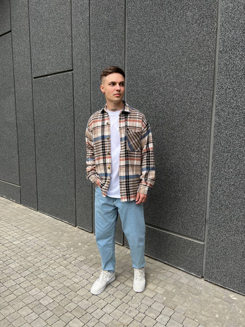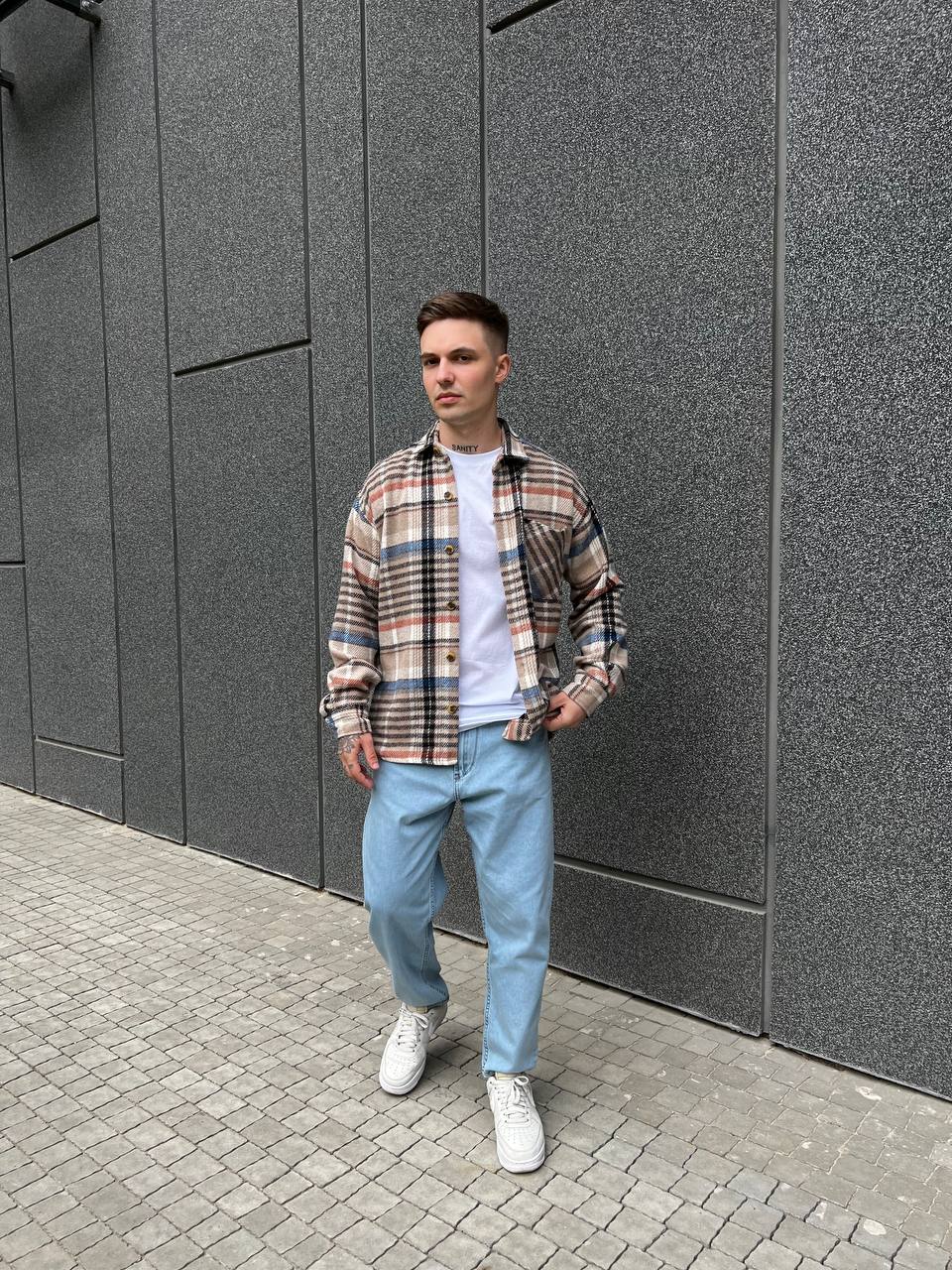 Мужская Клетчатая Рубашка Цвета Мокко Оверсайз из Байки