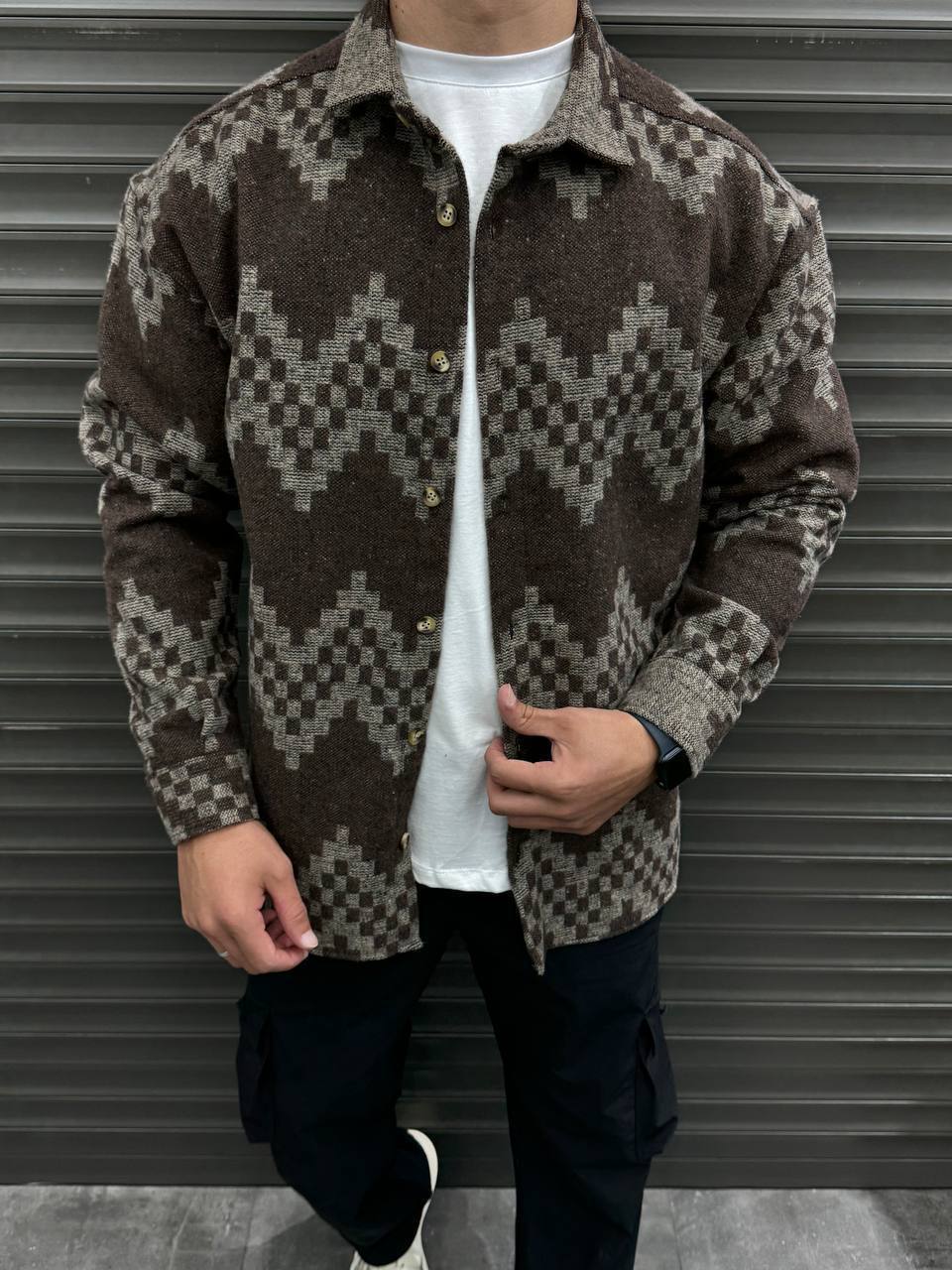 Мужская Коричневая Байковая Рубашка – Свободного Кроя в Узор