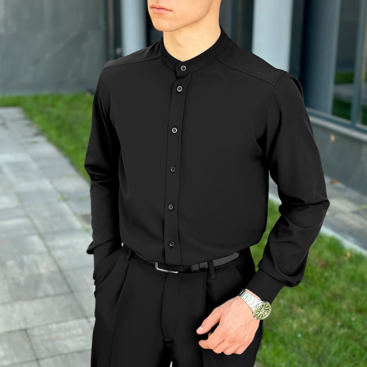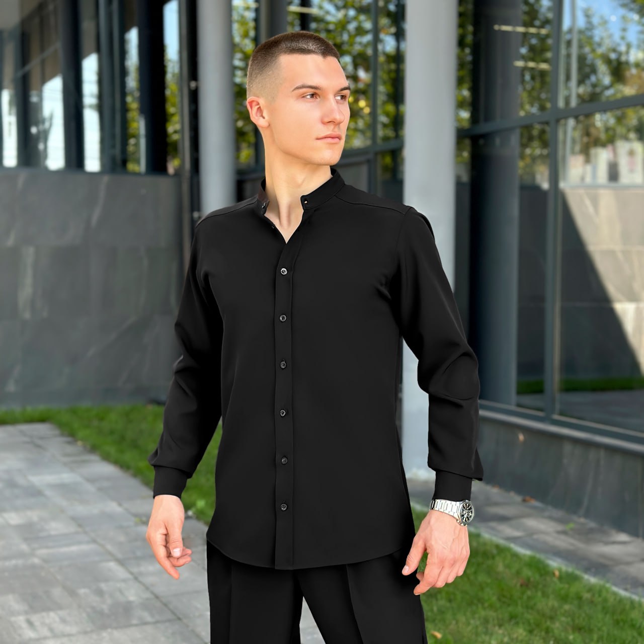 Мужская Легкая Классическая Черная Рубашка – Базовая на Пуговицах