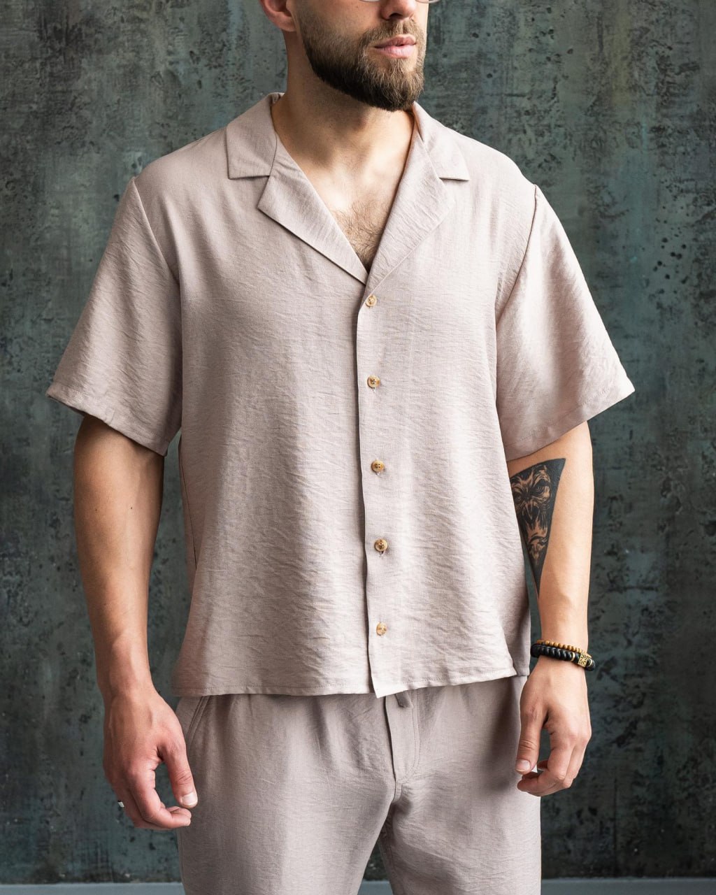 Мужская Летняя Рубашка Мокко Свободного Кроя – Легкая Льняная Жатая