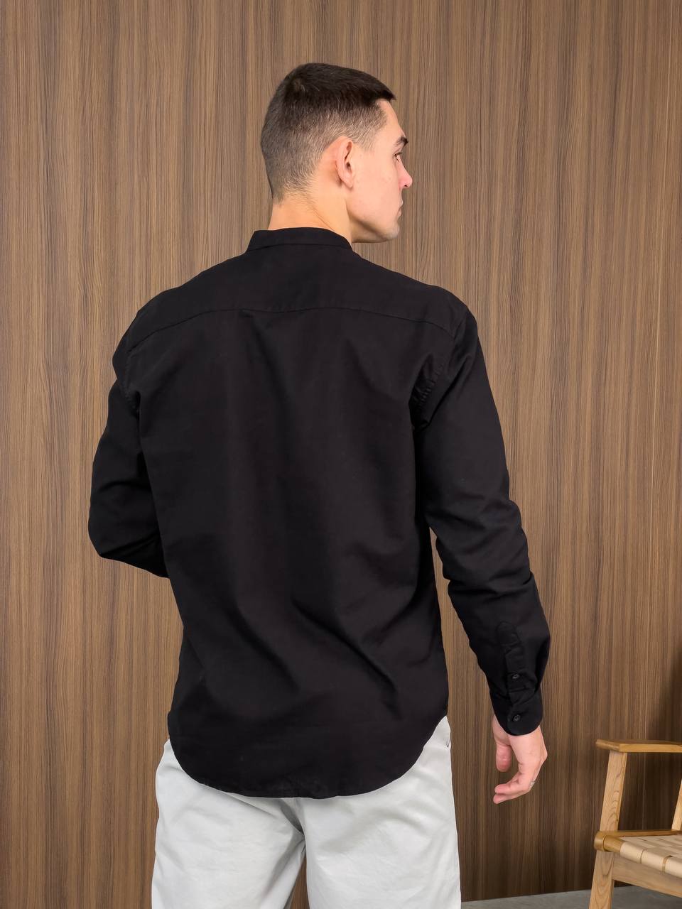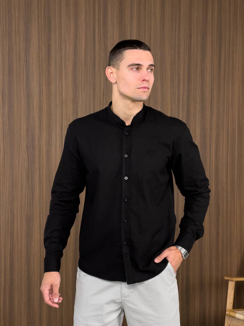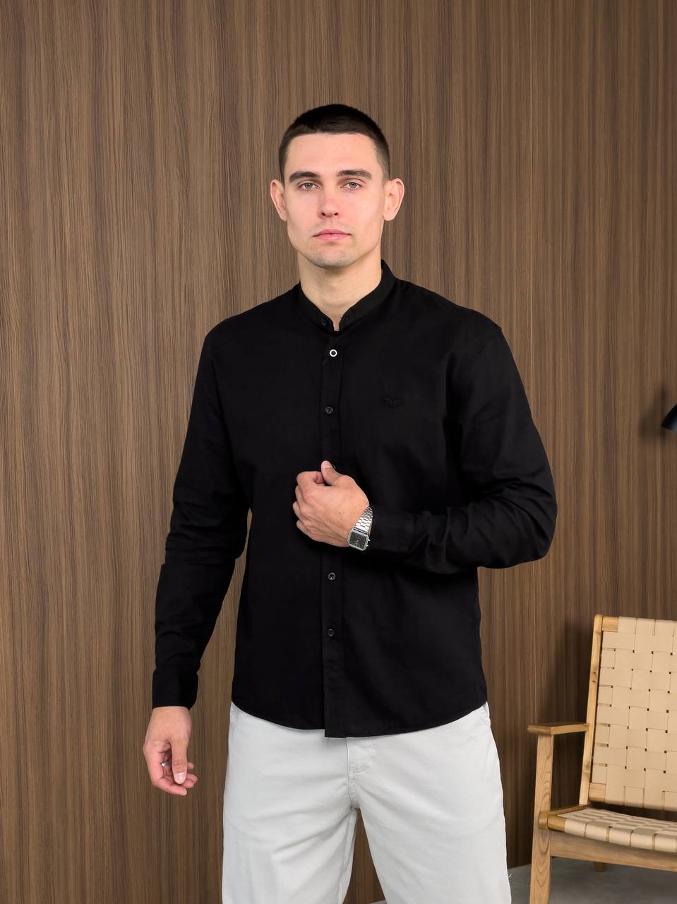Мужская Льняная Черная Рубашка – Базовая Свободного Кроя