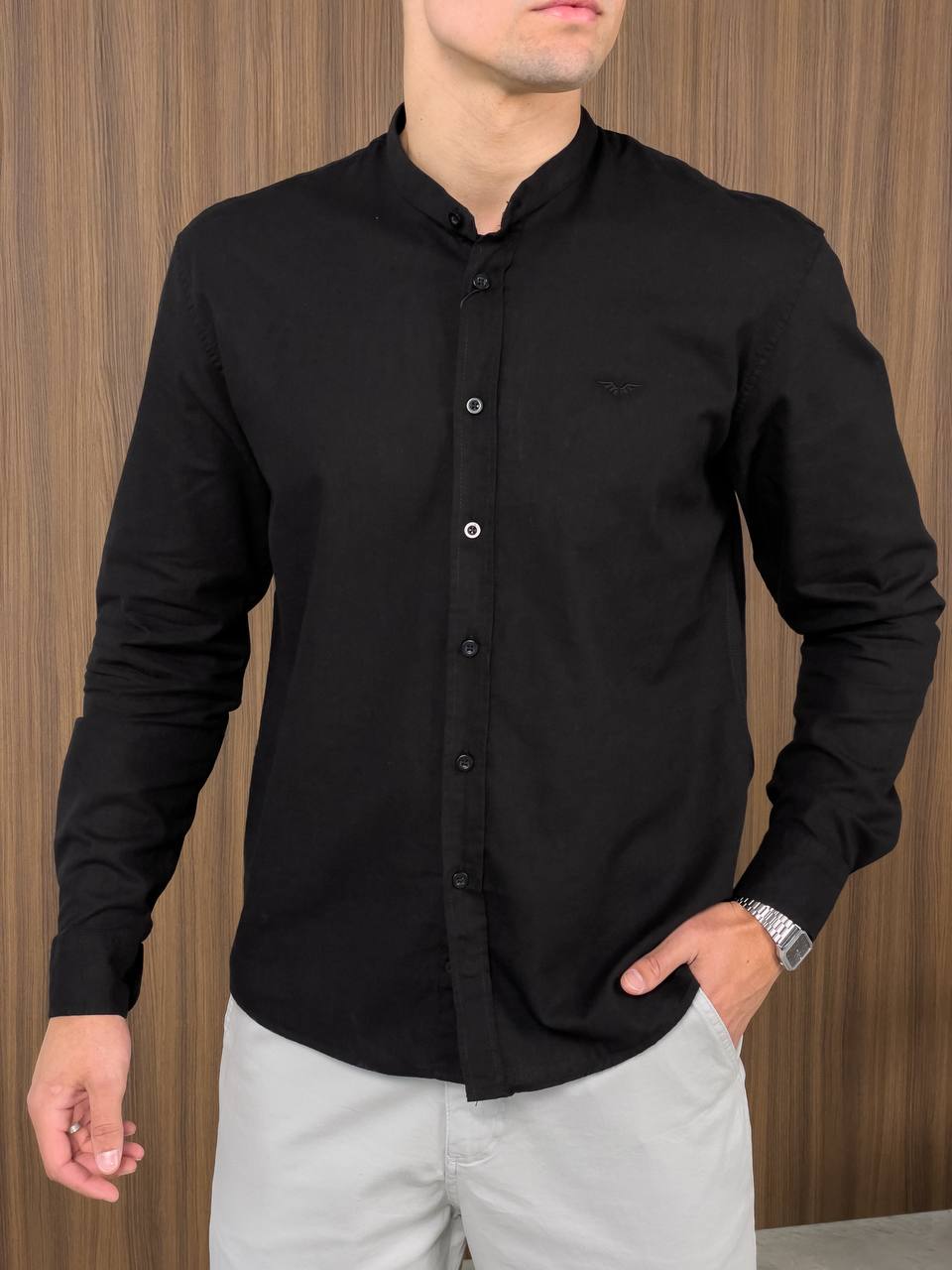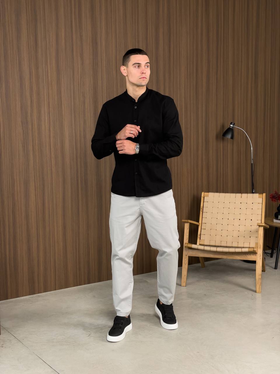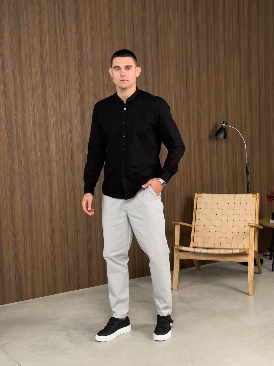 Мужская Льняная Черная Рубашка – Базовая Свободного Кроя
