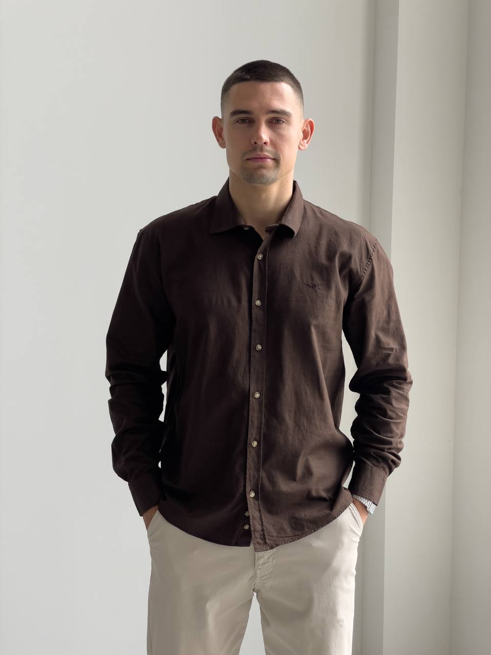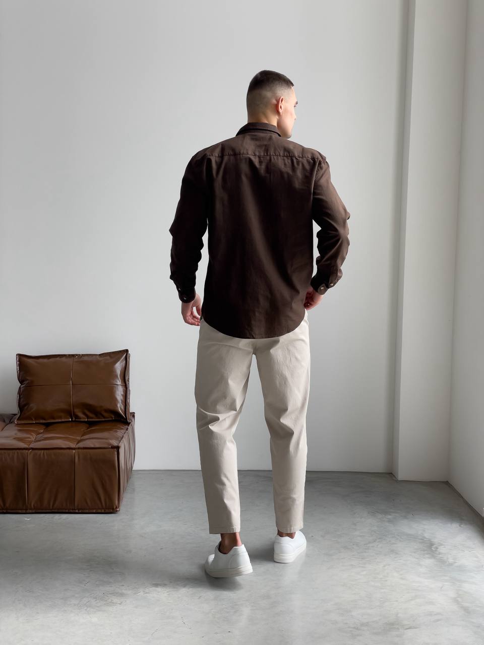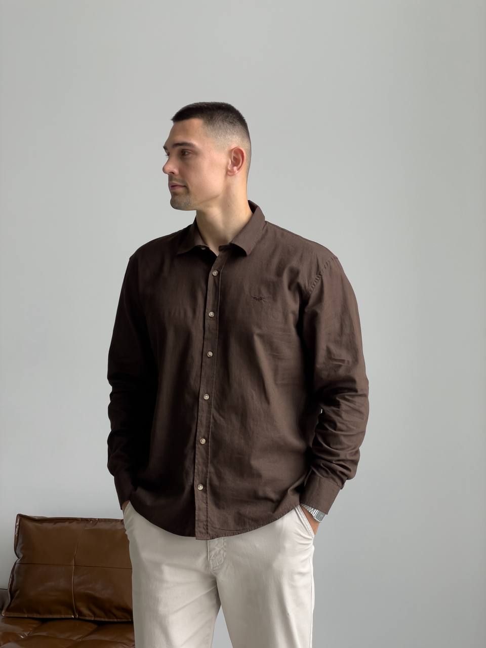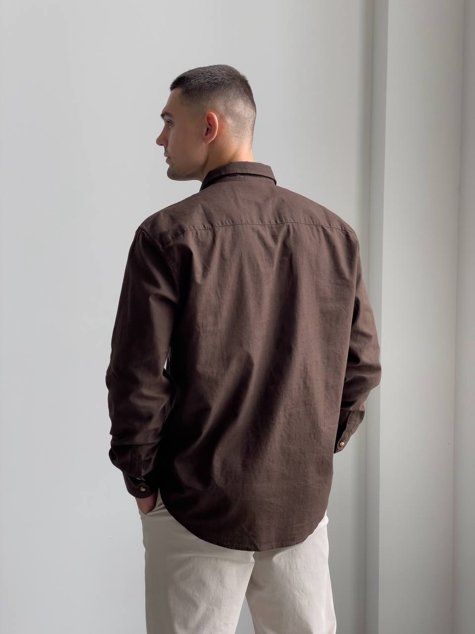 Мужская Льняная Коричневая Рубашка – Базовая Свободного Кроя