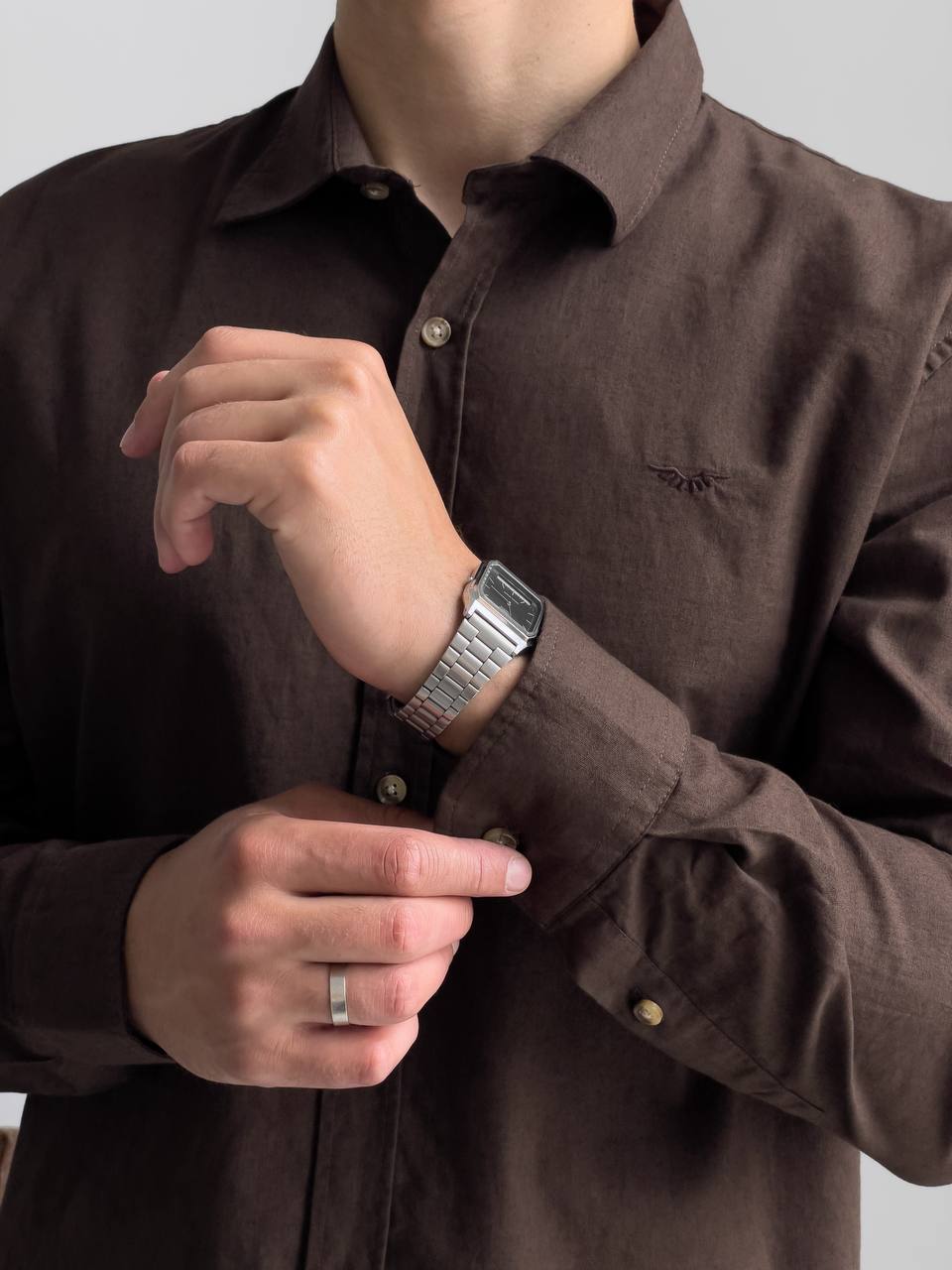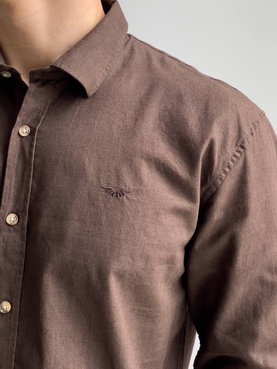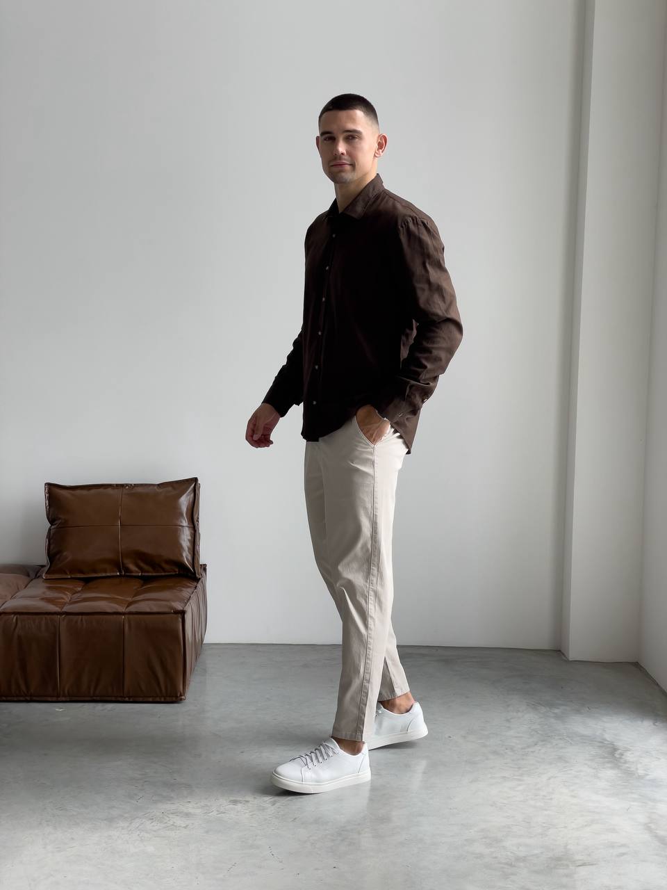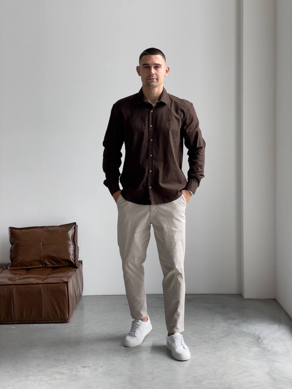 Мужская Льняная Коричневая Рубашка – Базовая Свободного Кроя