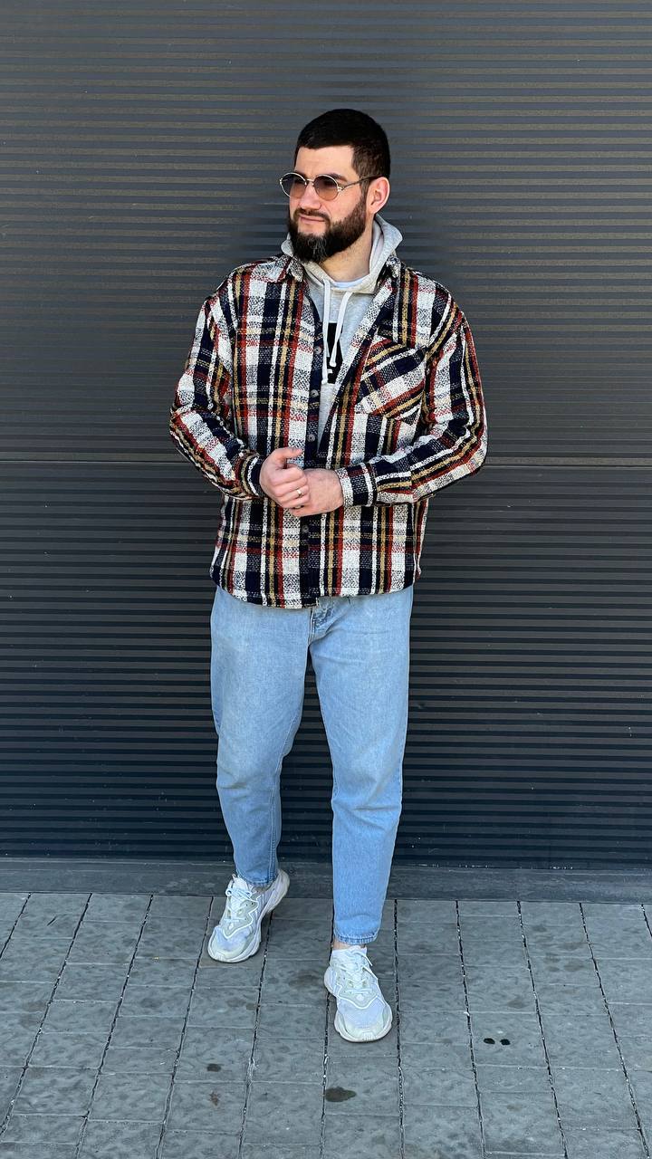 Мужская Свободная Клетчатая Разноцветная Рубашка – Теплая Плотная Байковая