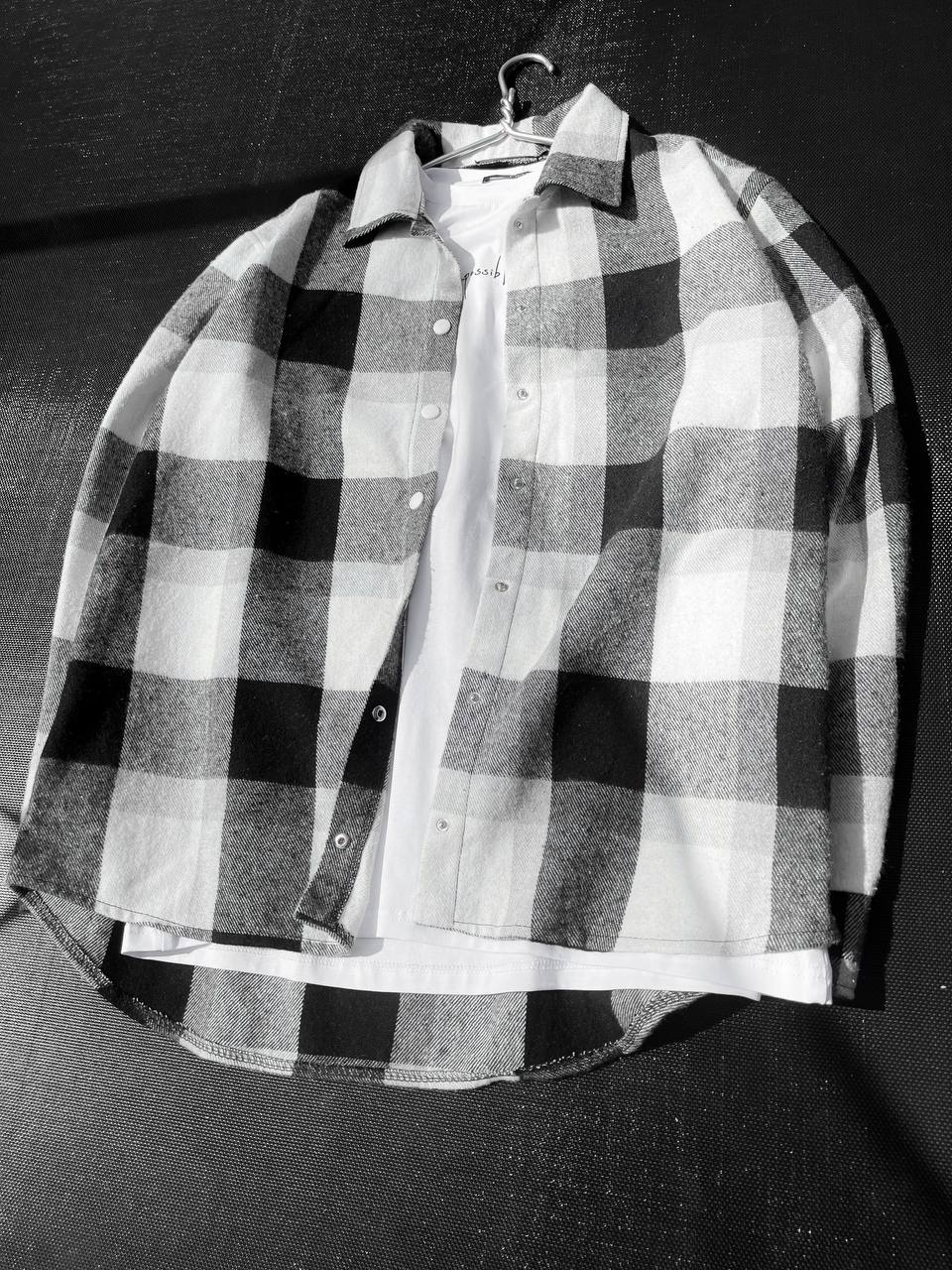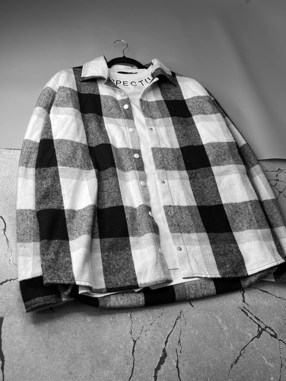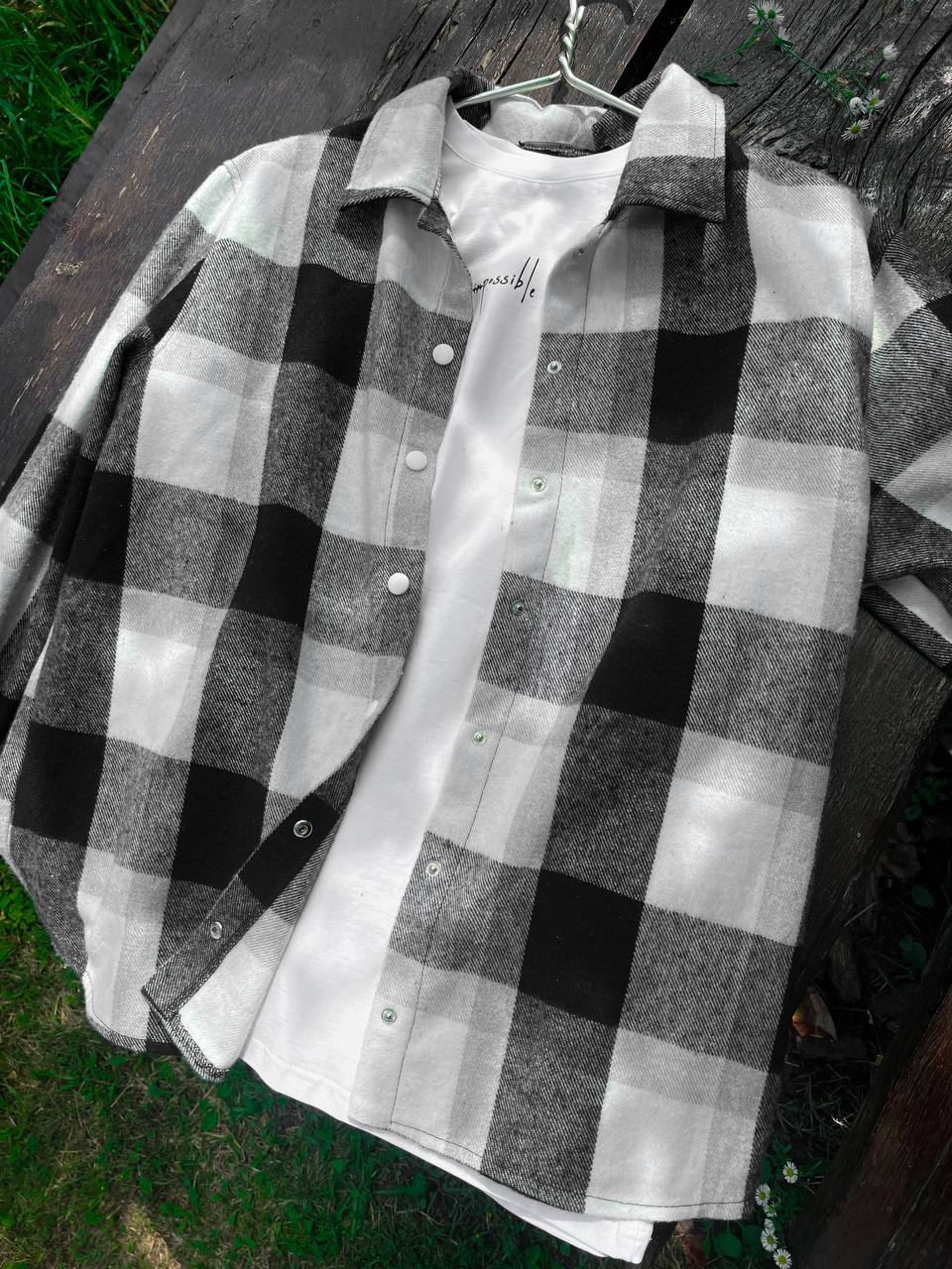 Мужская Байковая Черно-Белая Рубашка Свободного Фасона на Кнопках