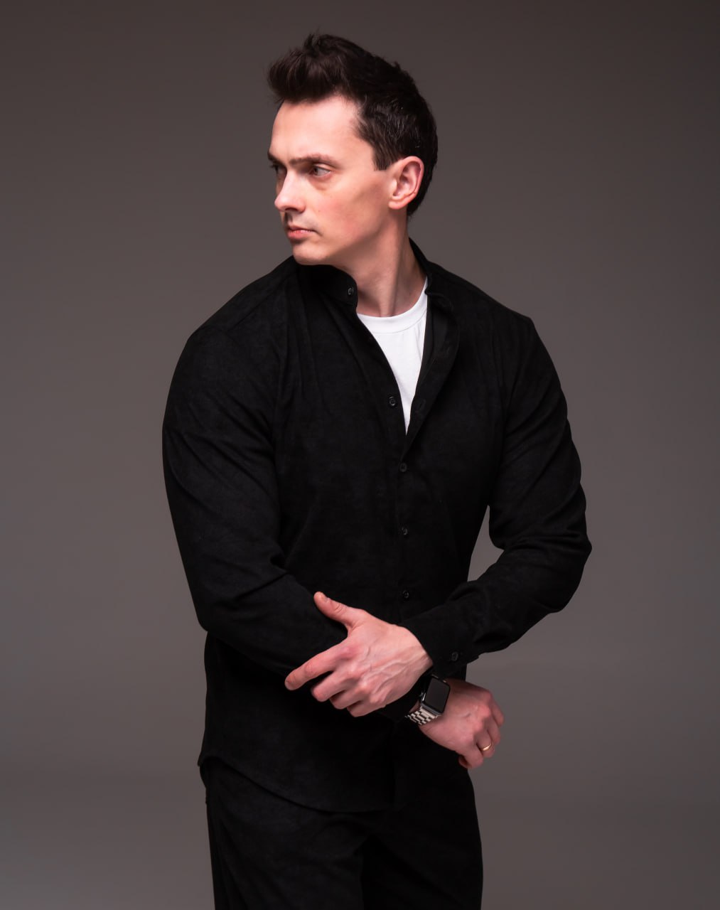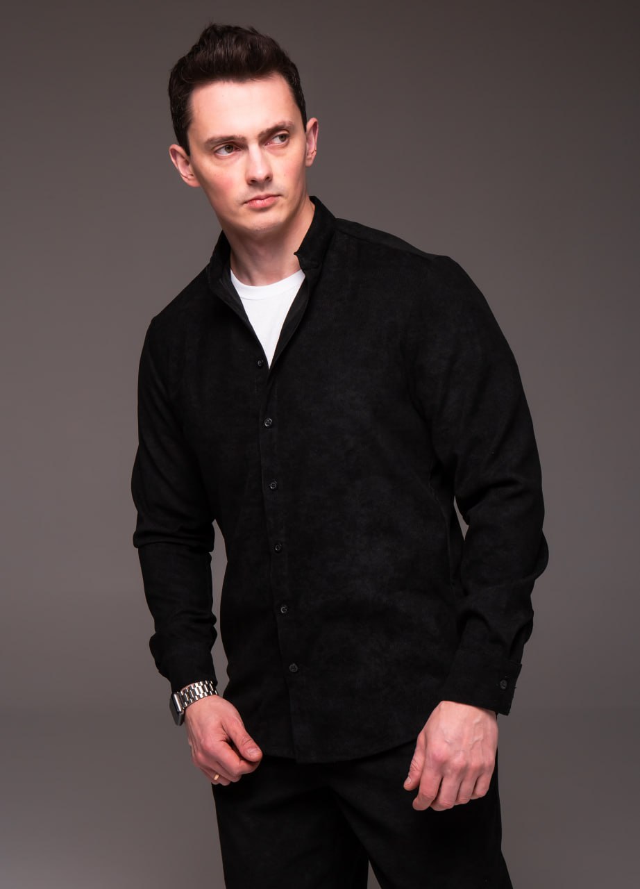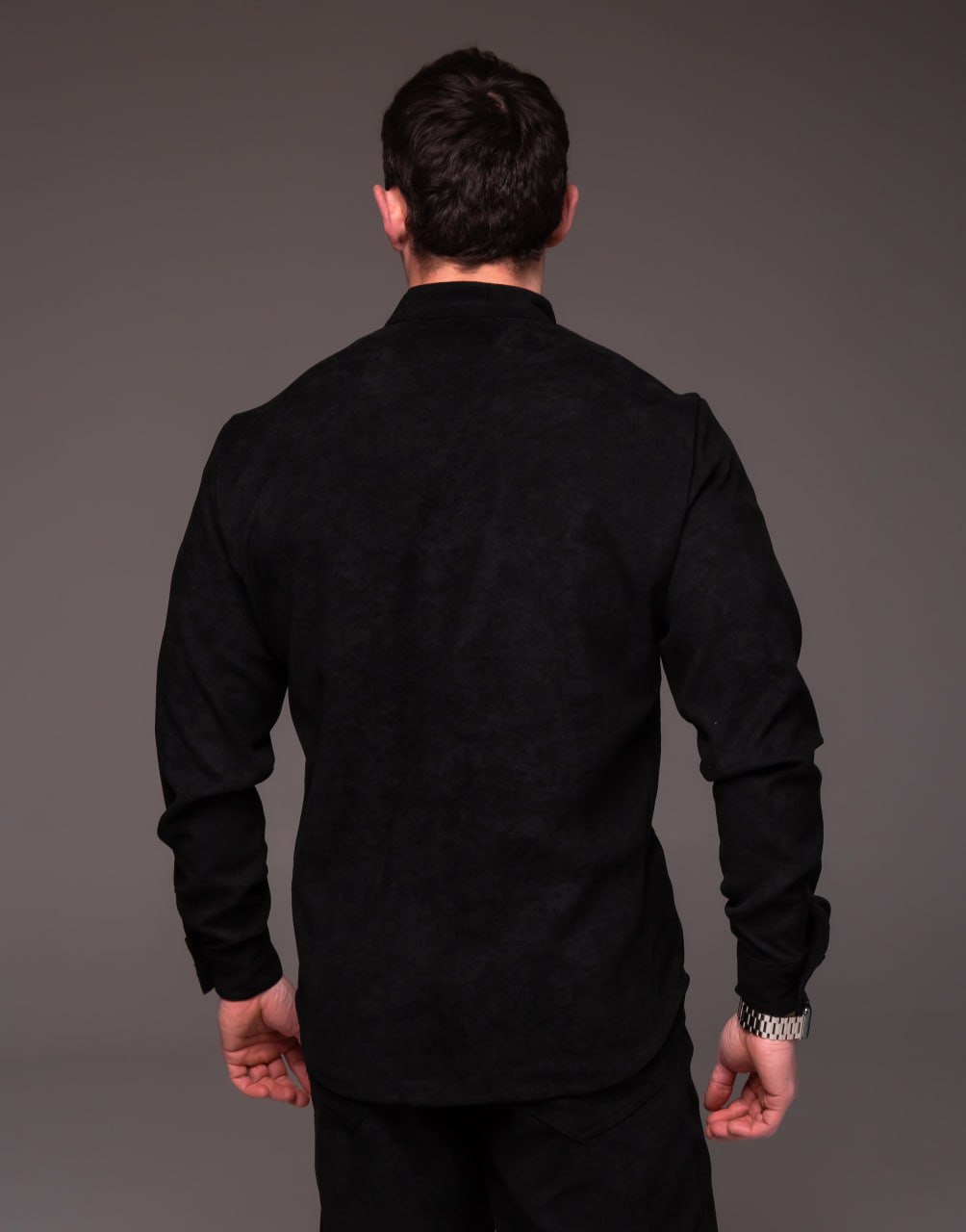 Мужская Базовая Черная Рубашка Вельвет на Пуговицах
