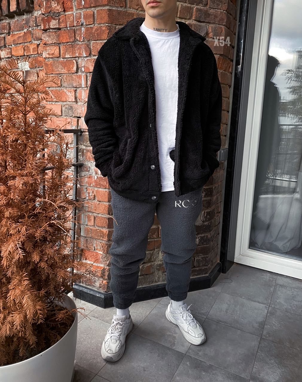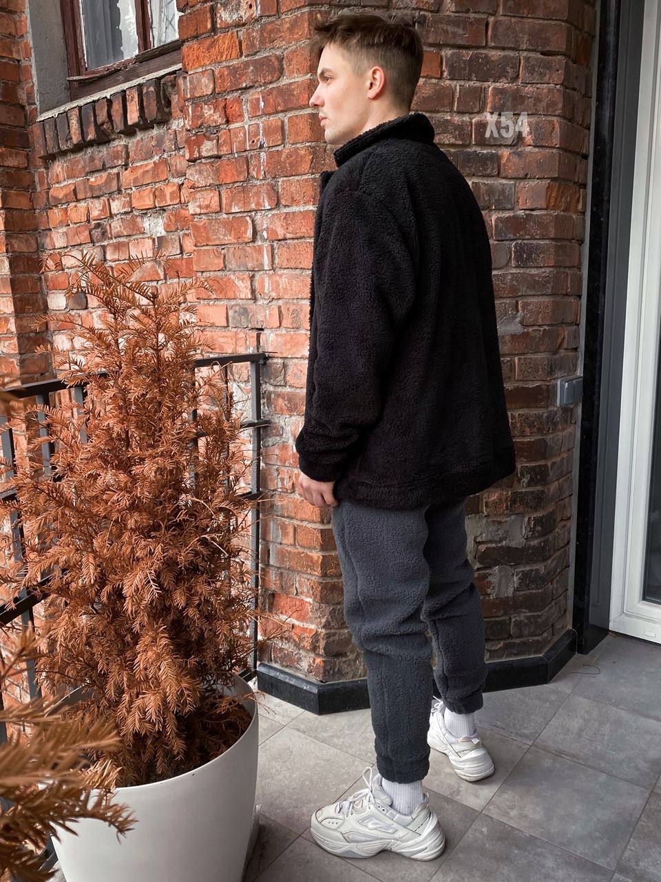 Мужская Черная Плюшевая Махровая Рубашка Оверсайз на Пуговицах