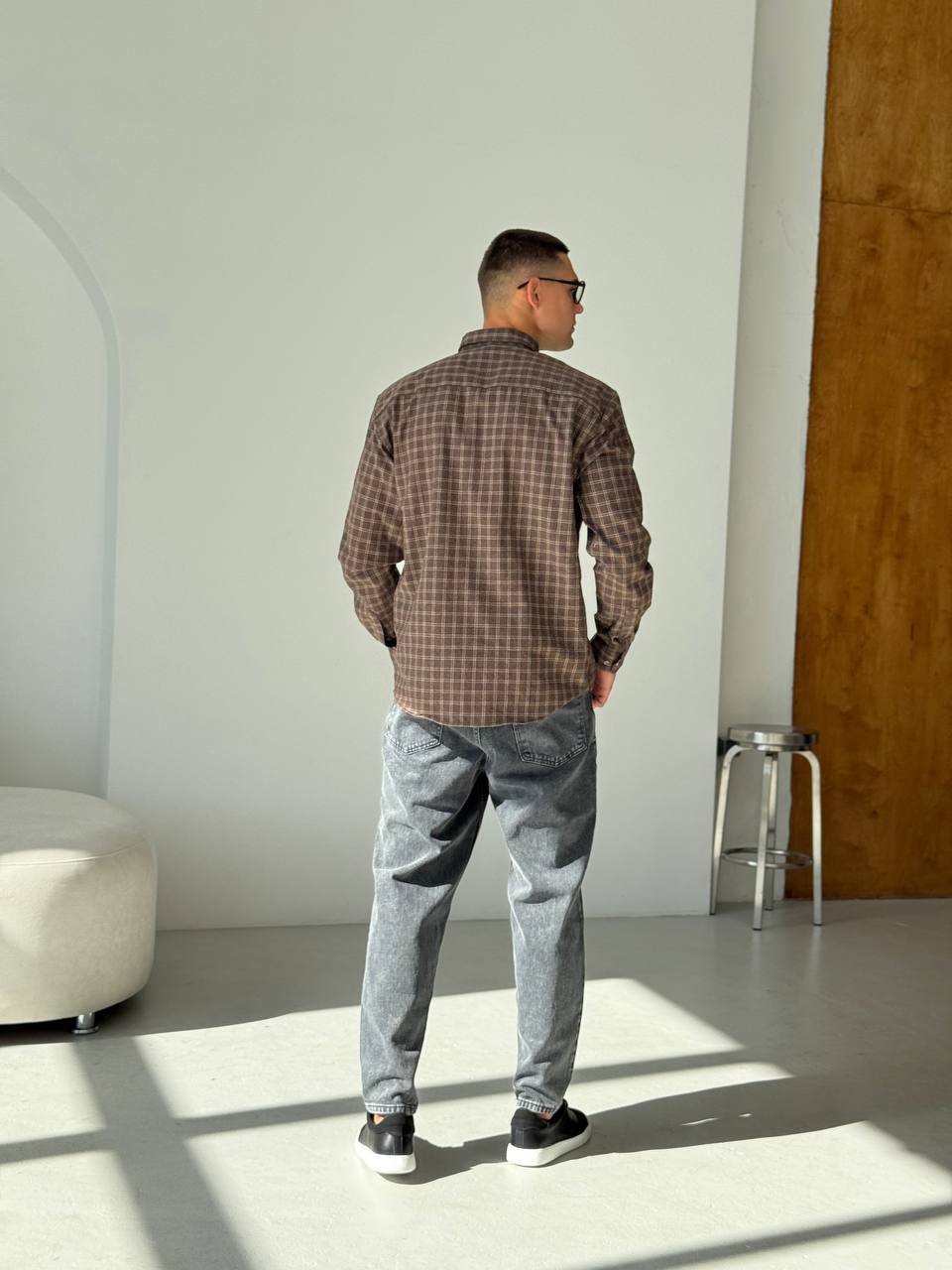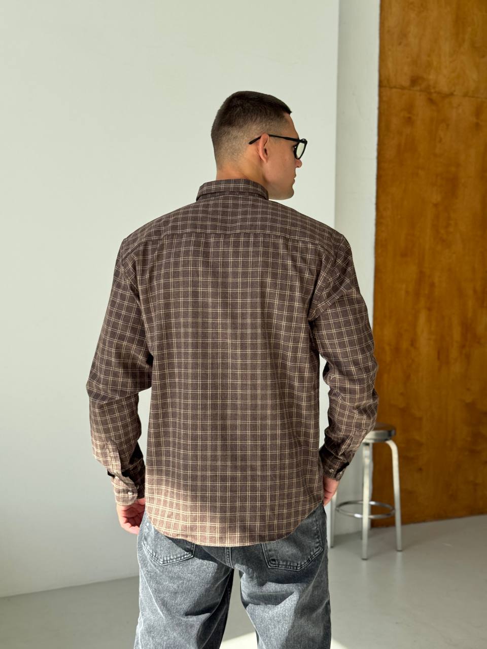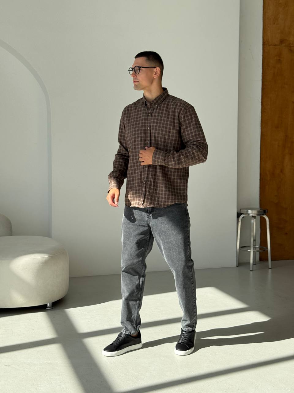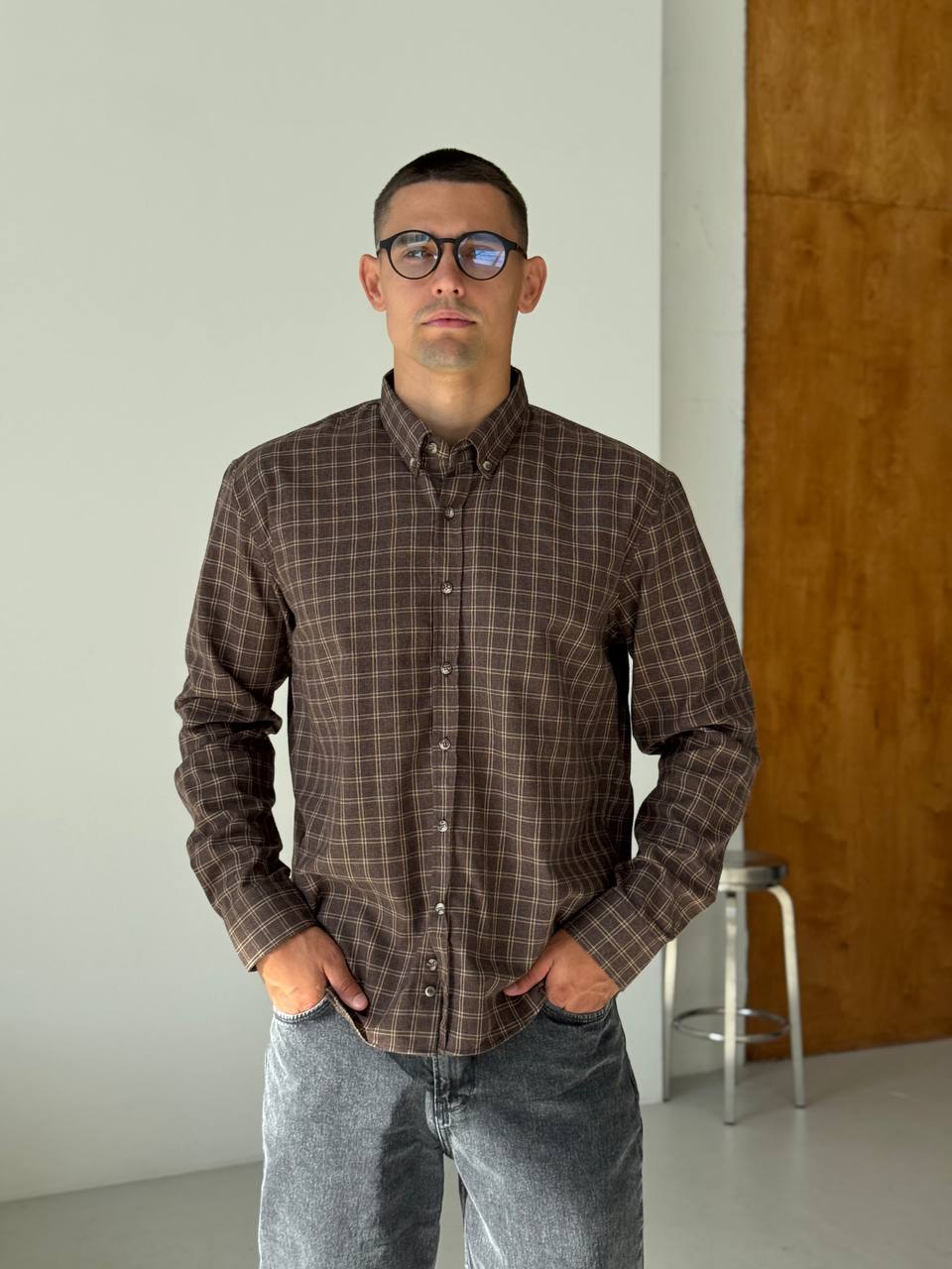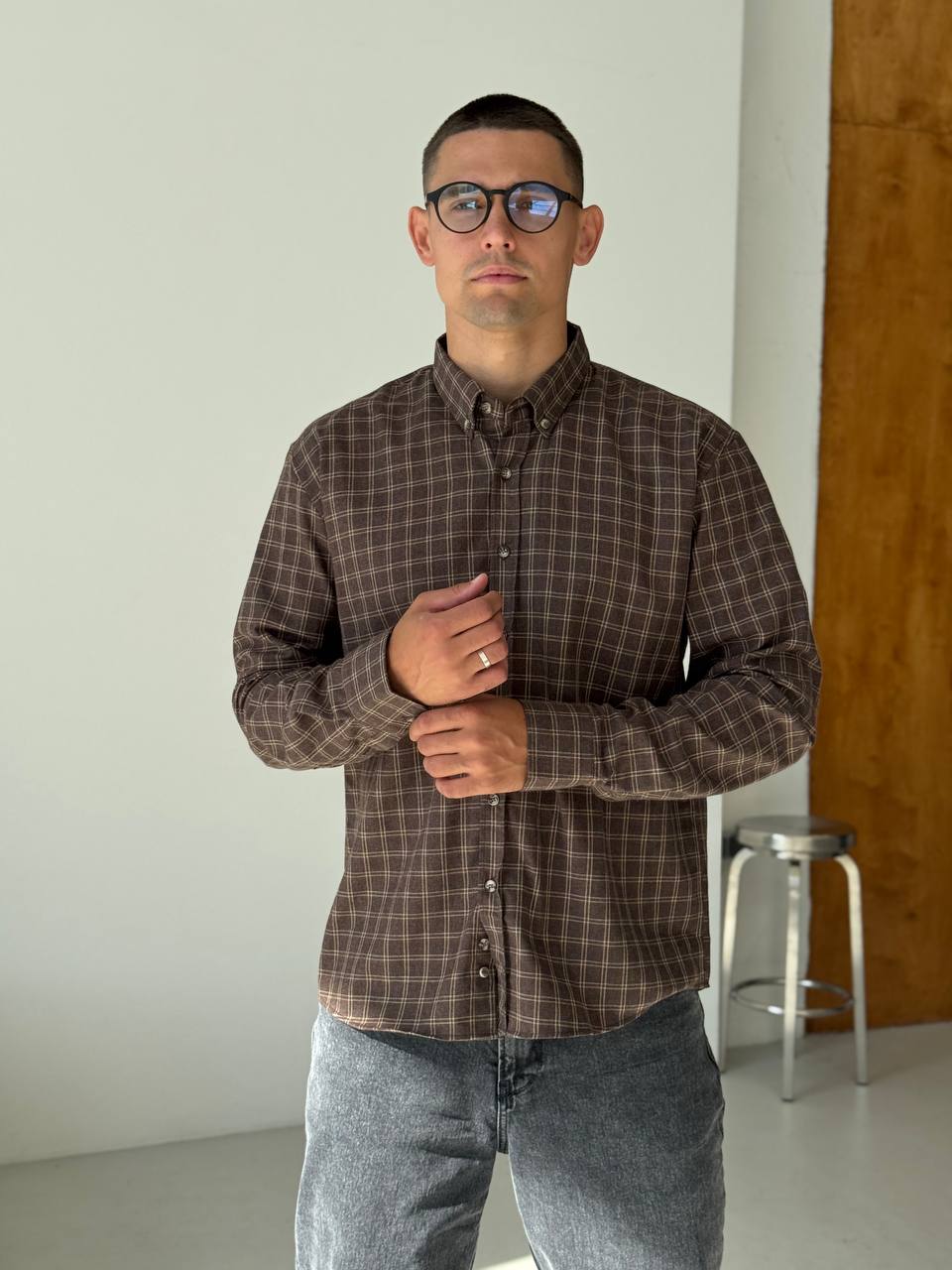 Мужская Хлопковая Клетчатая Коричневая Рубашка База