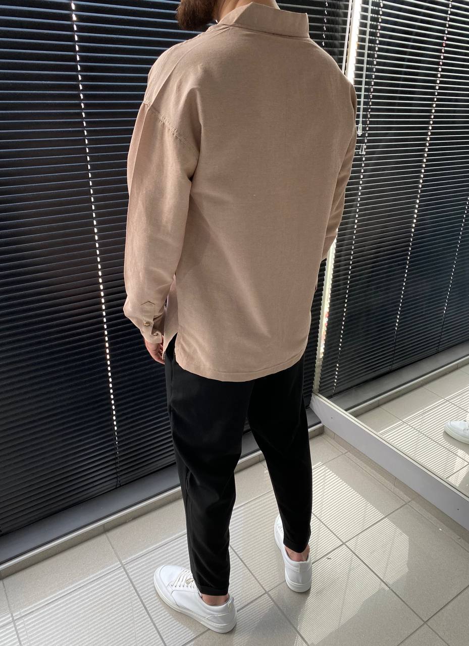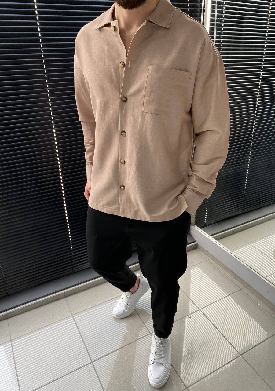 Мужская Хлопковая Коричневая Рубашка – Базовая Классическая Легкая Свободного Кроя