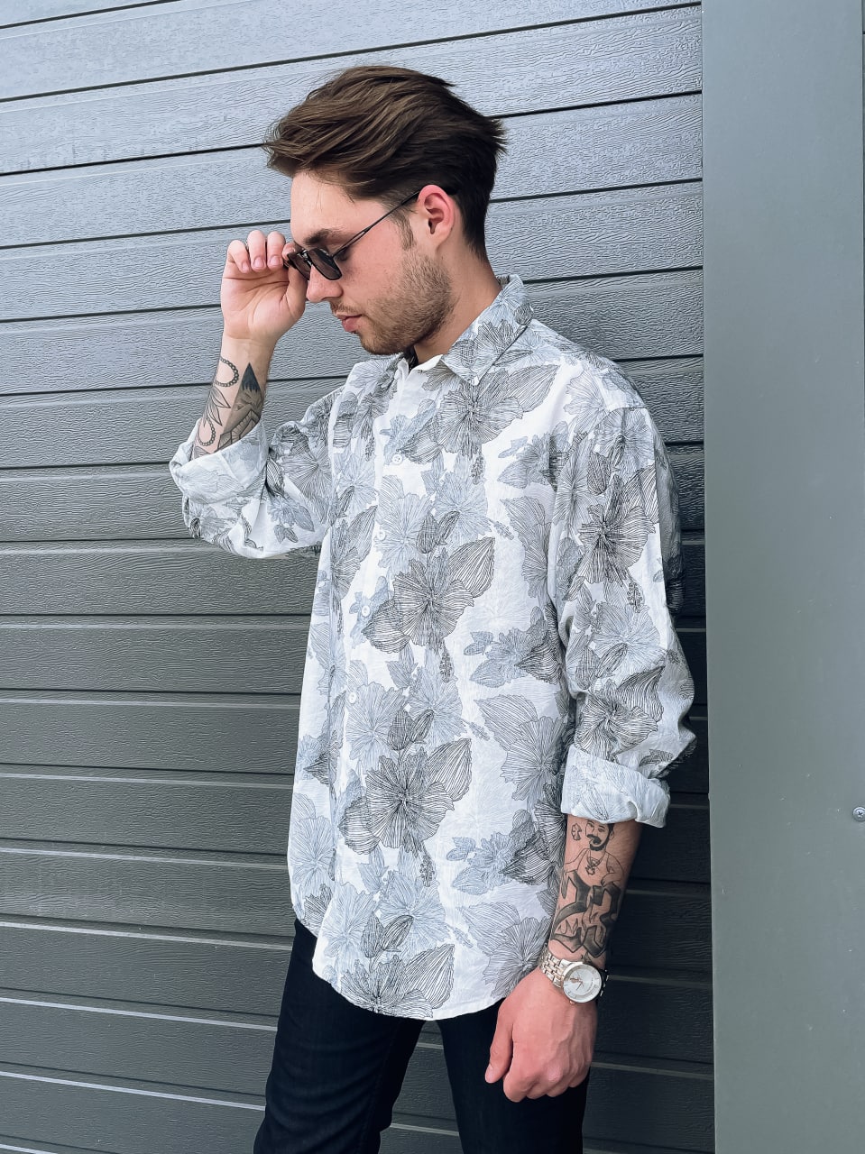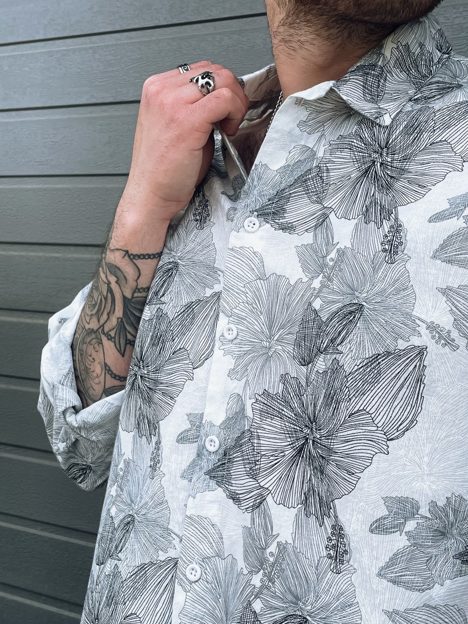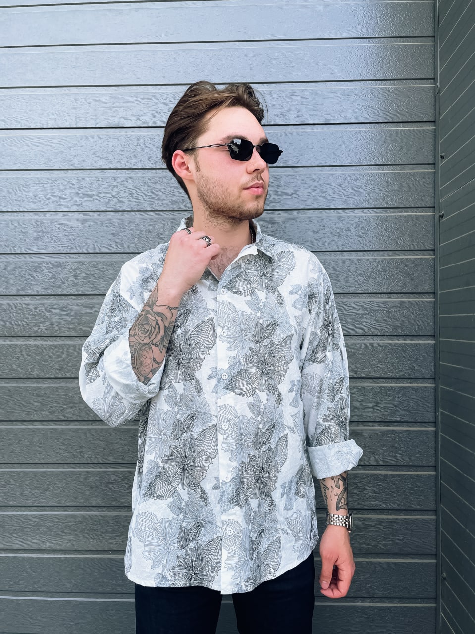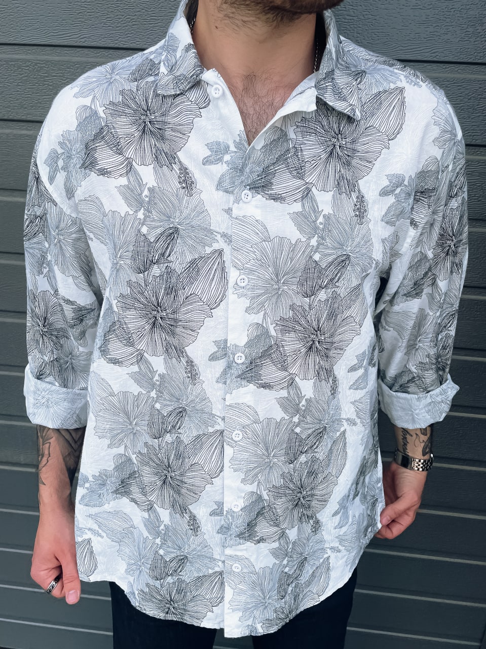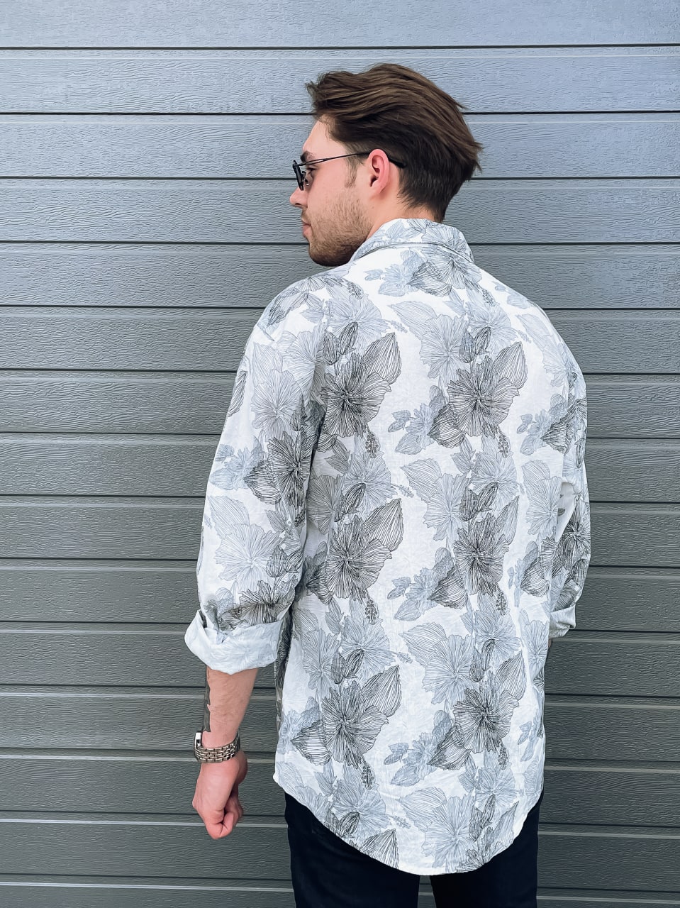 Мужская Хлопковая Рубашка в Белом Цвете – Легкая Оверсайз в Цветочный Принт
